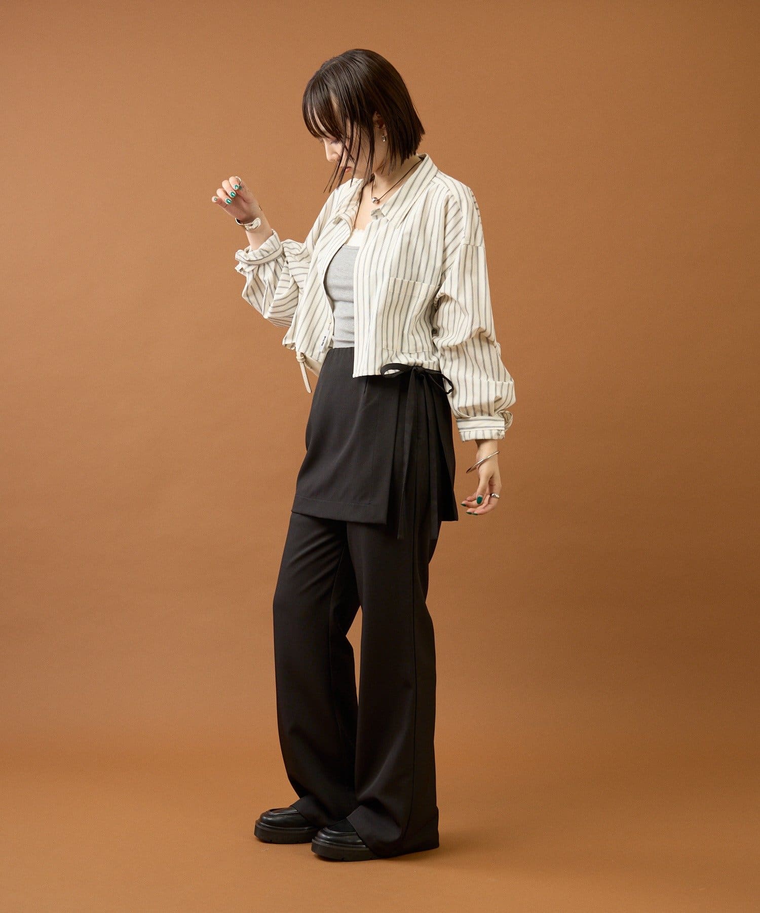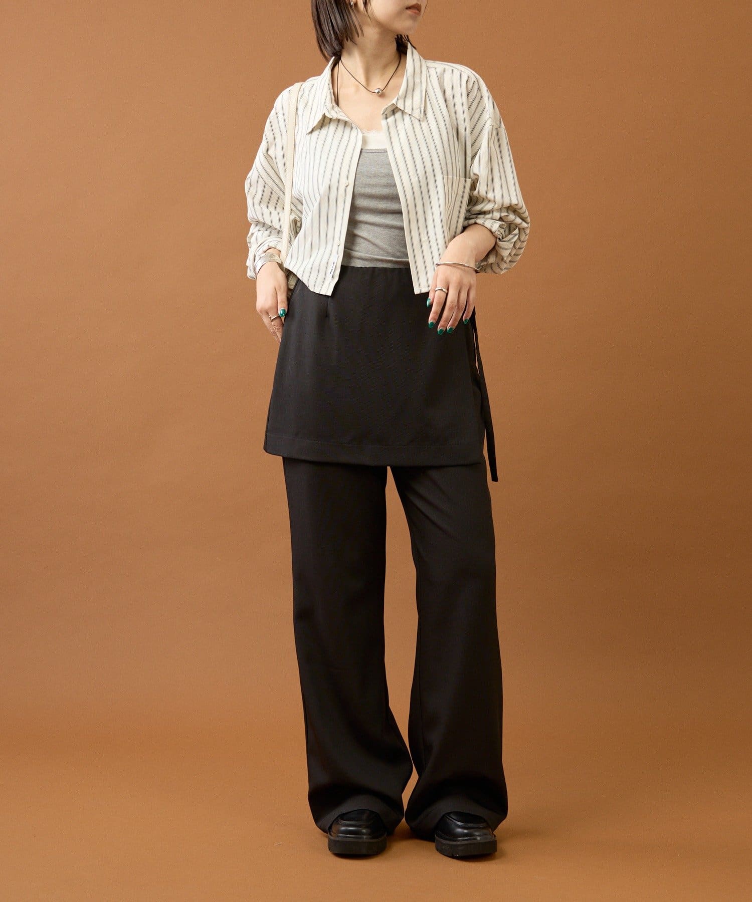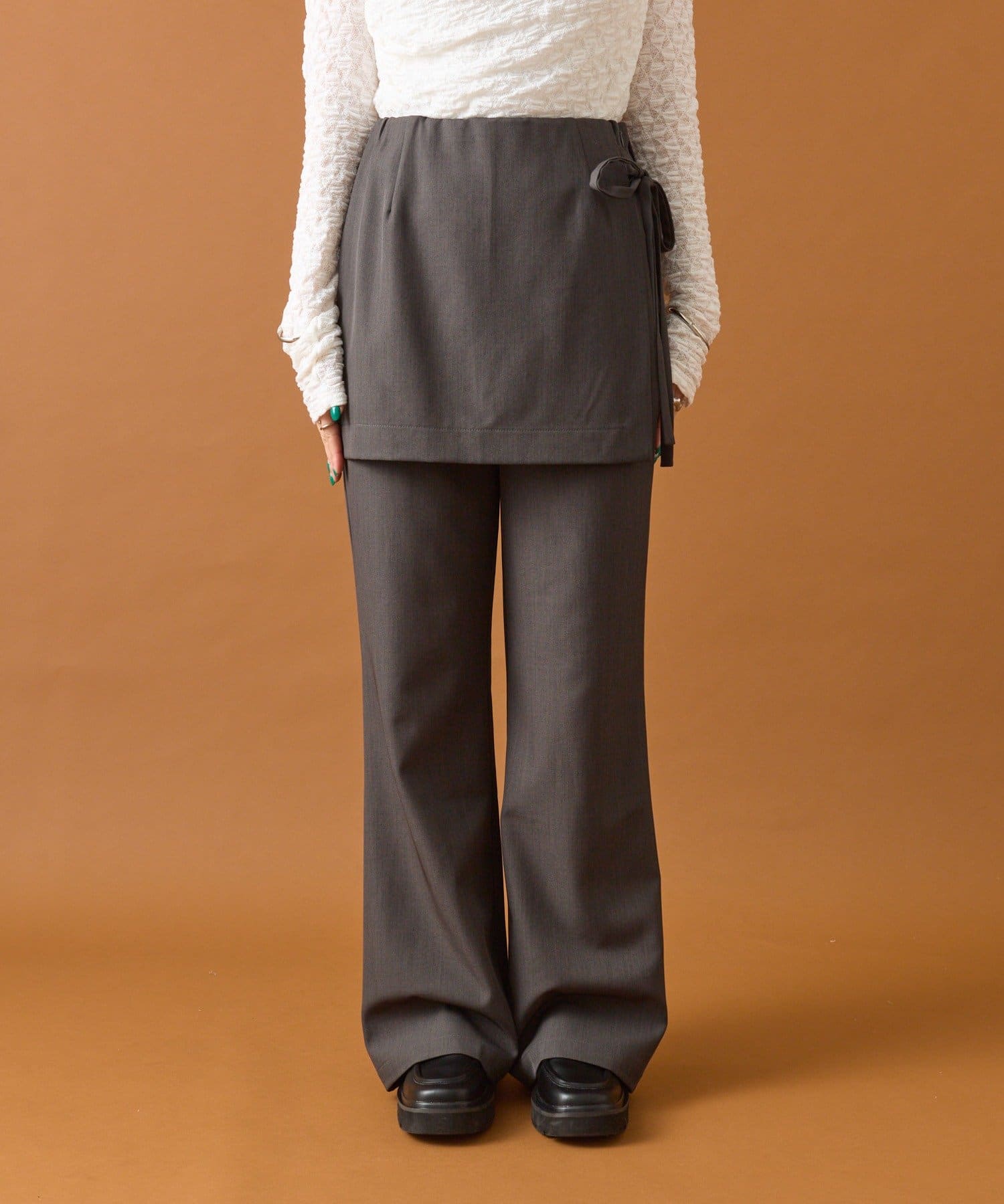 ・ミニスカート×スラックスのレイヤードデザインでトレンド感がアップしアイテム。