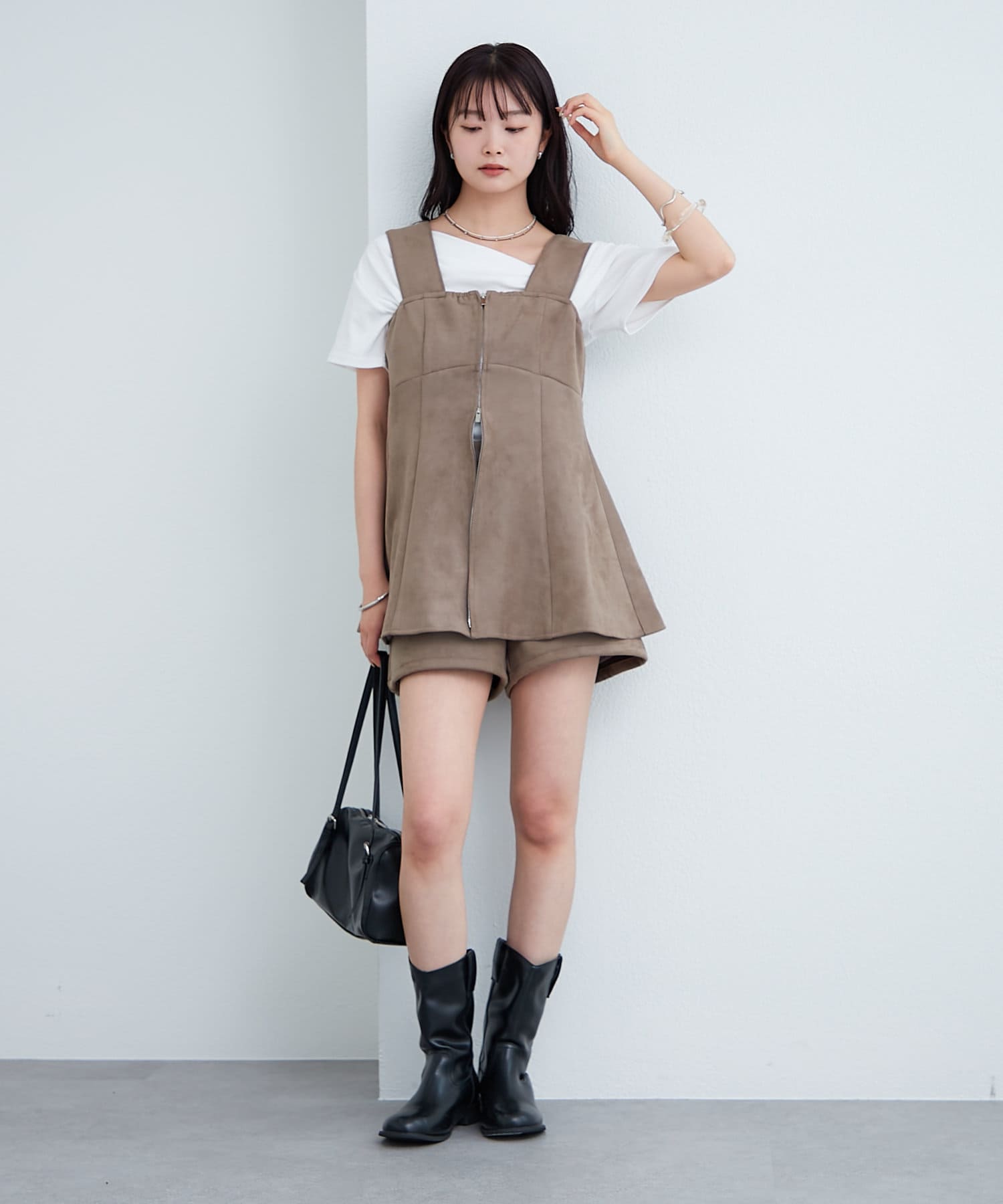 ・同素材のスウェードビスチェとセットアップで着ていただけます!