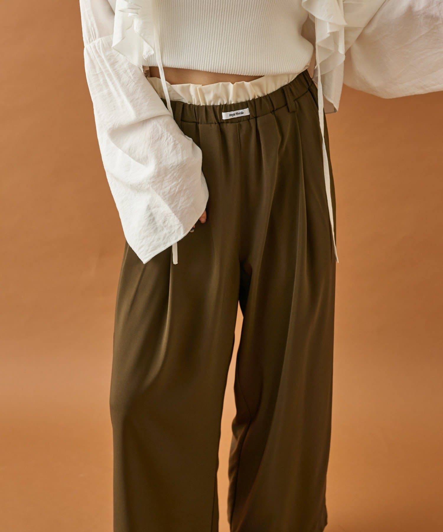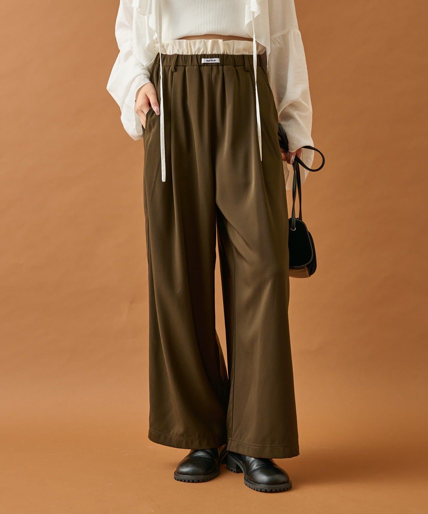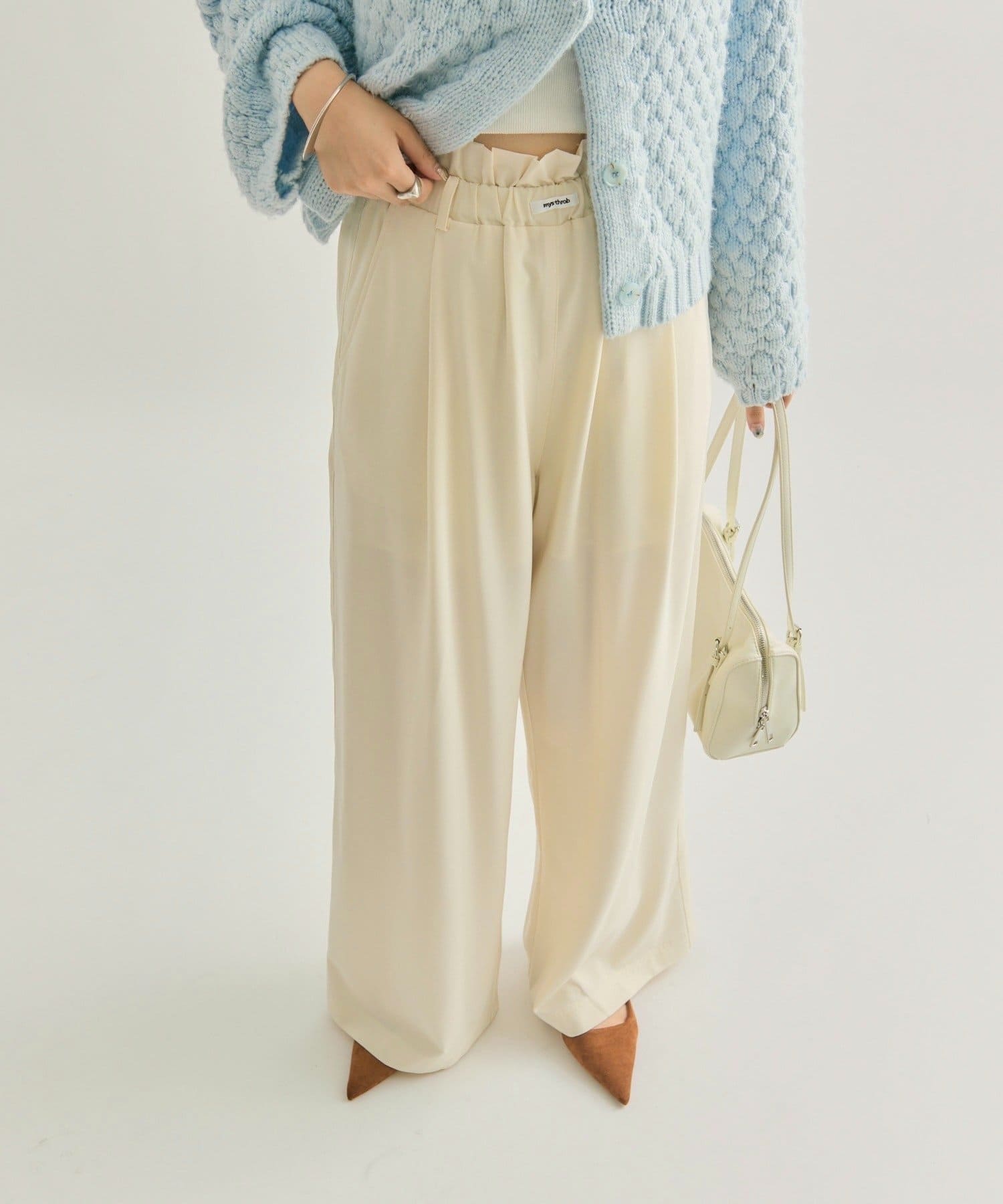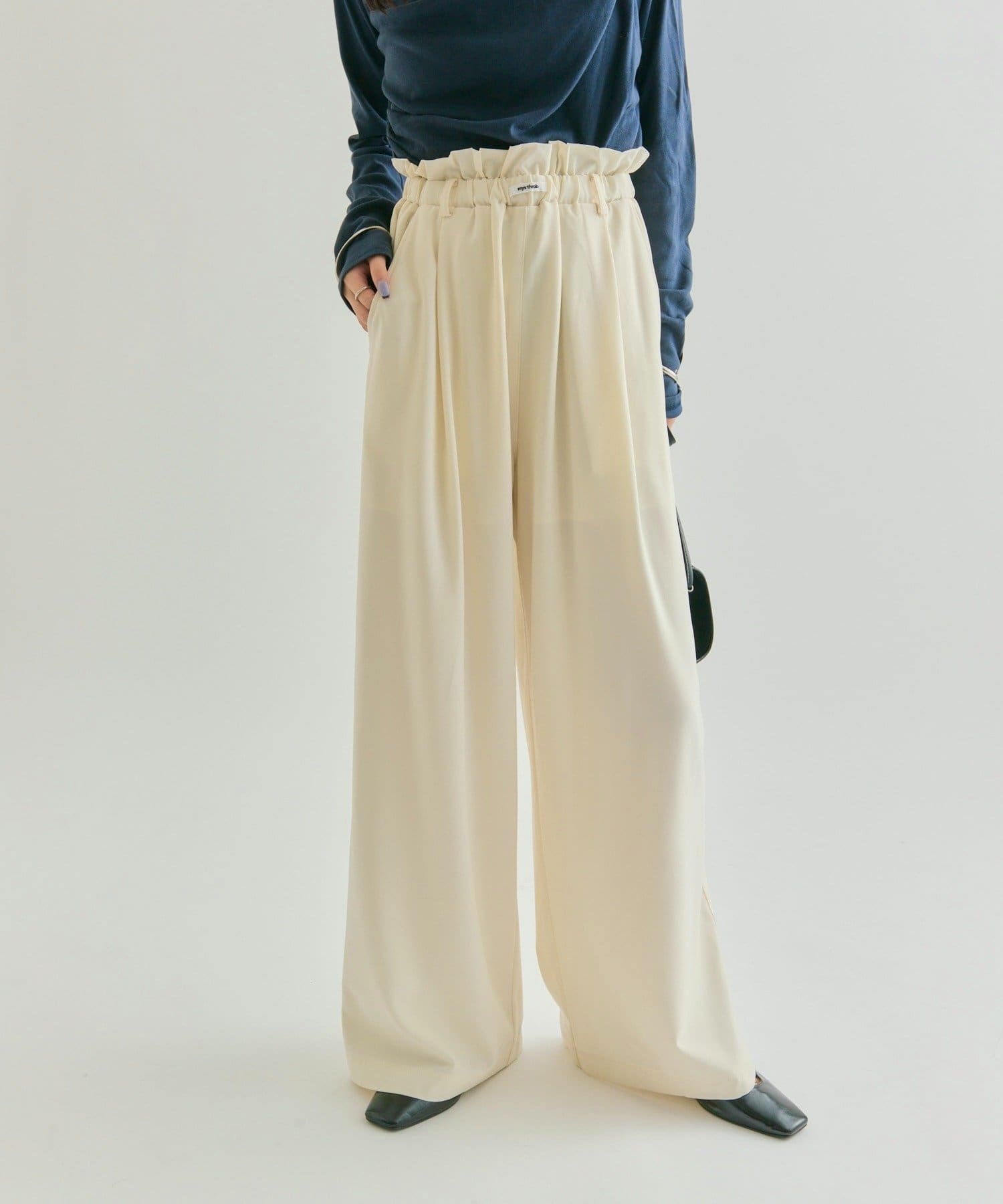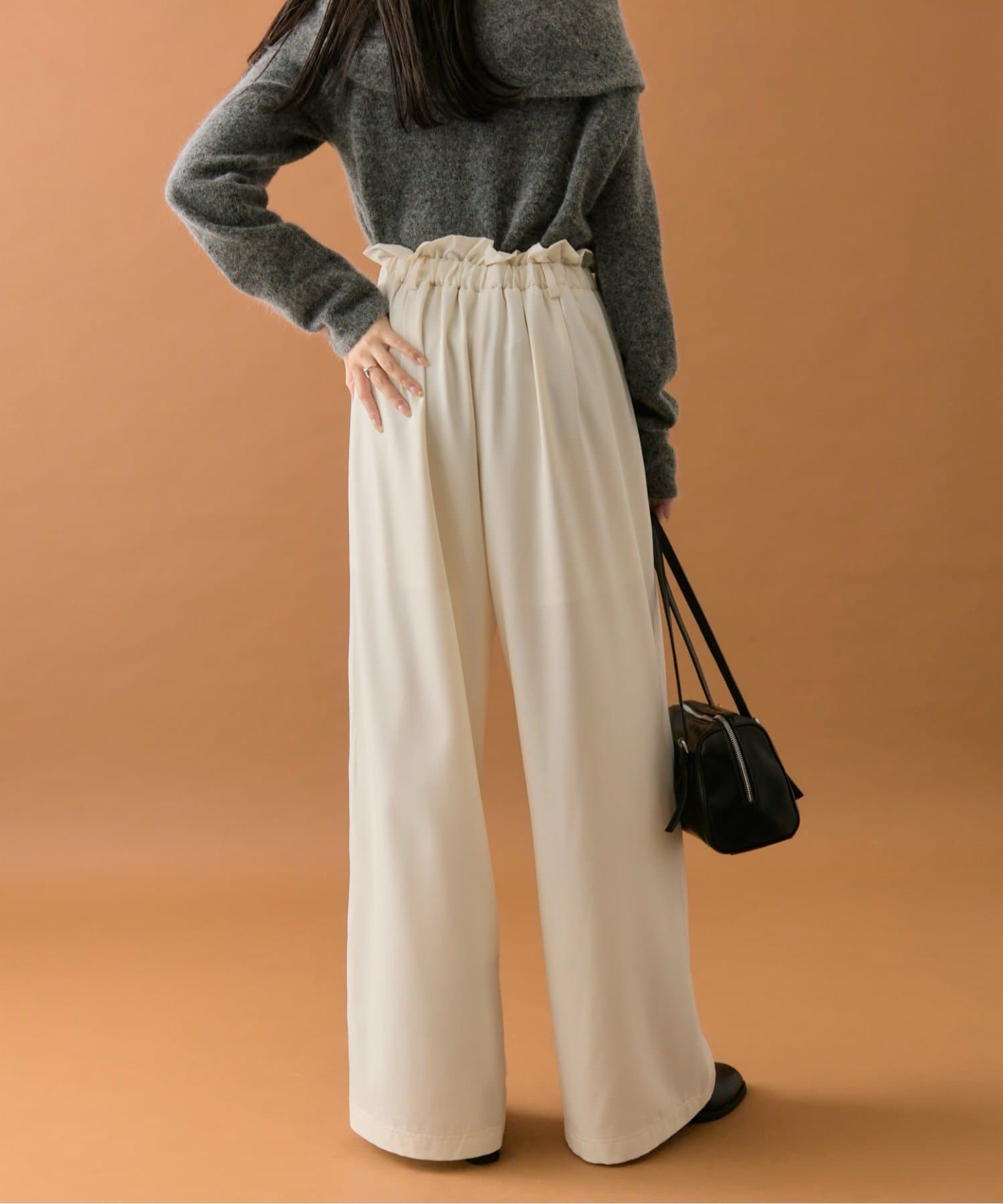・ウエストのフリルとネームタグがポイントのイージーパンツです!