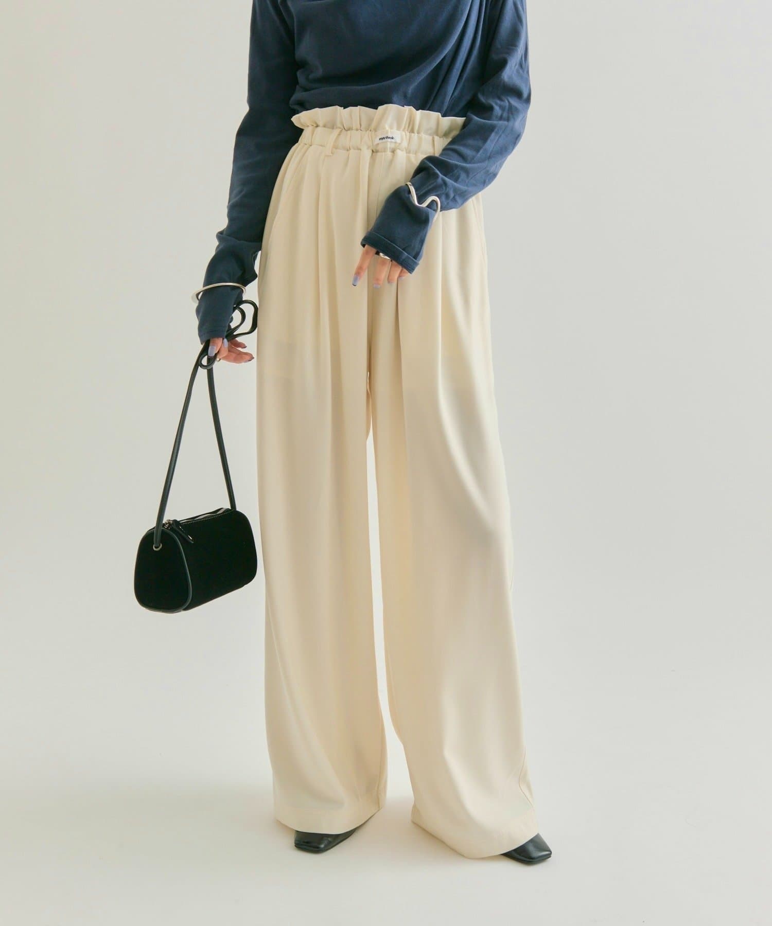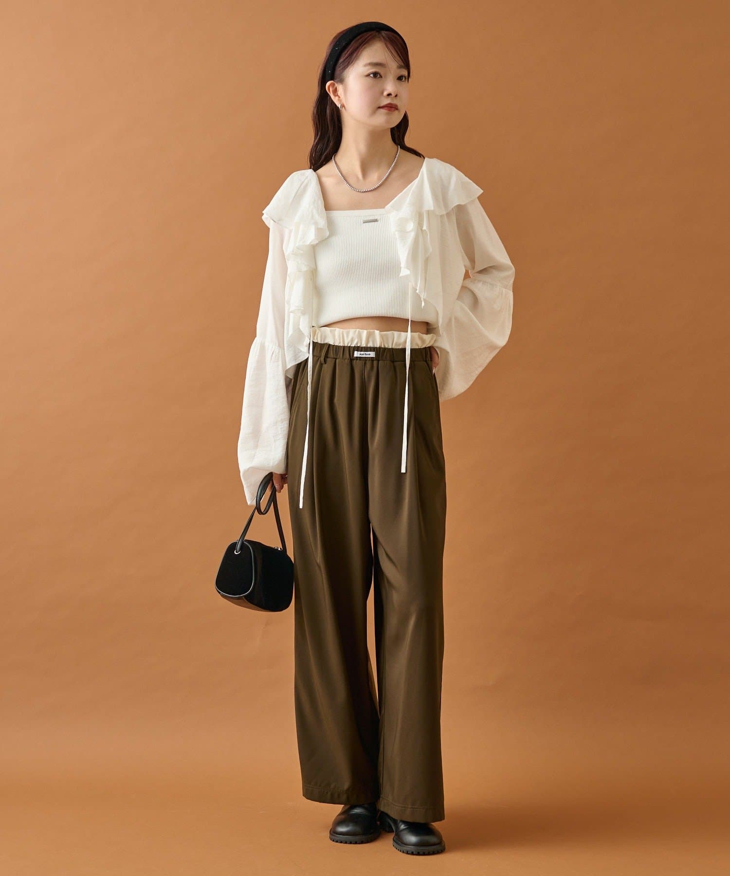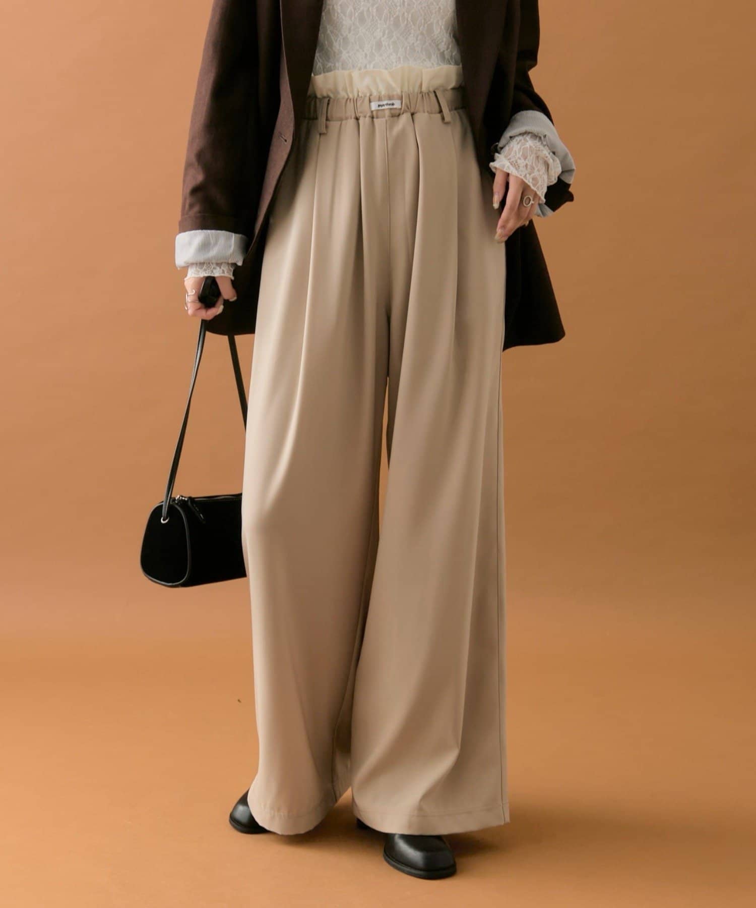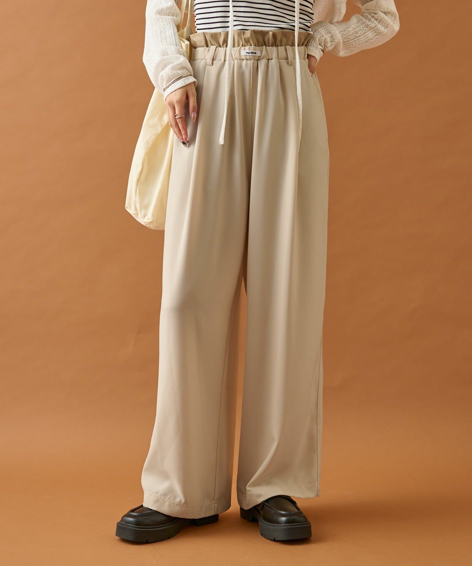 ・ウエストのフリルとネームタグがポイントのイージーパンツです!