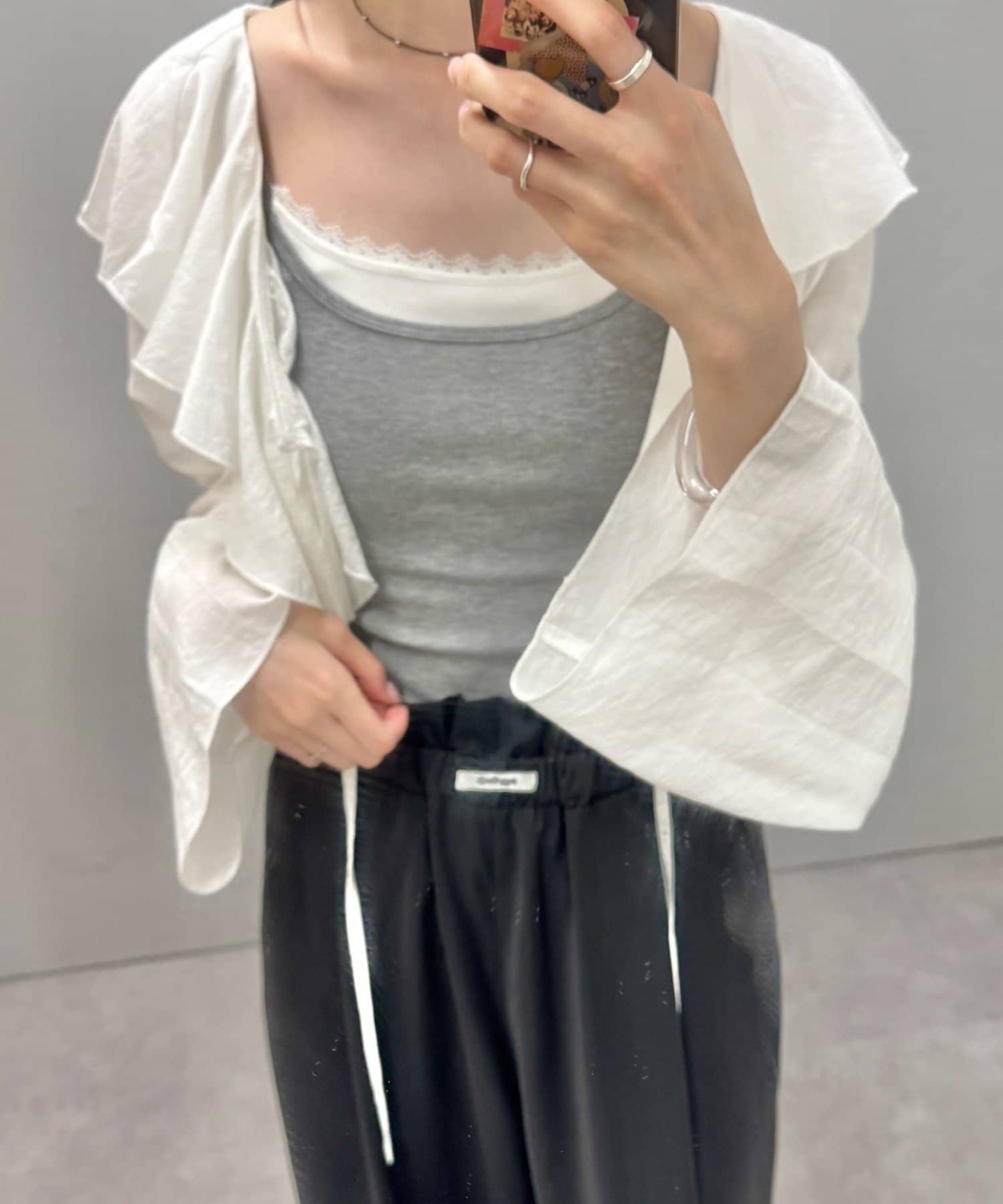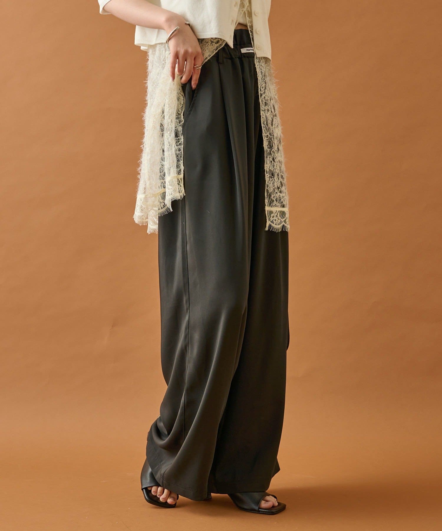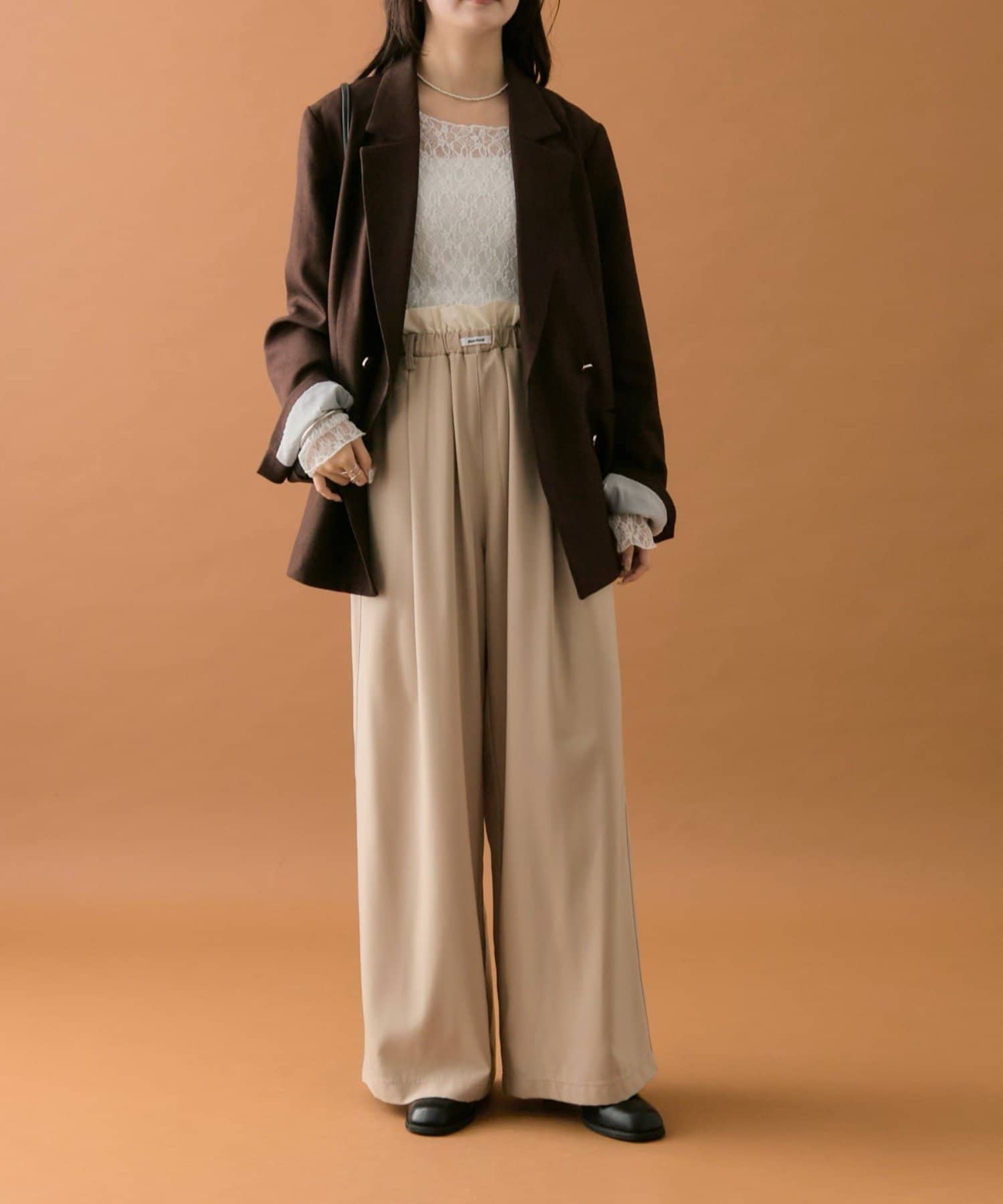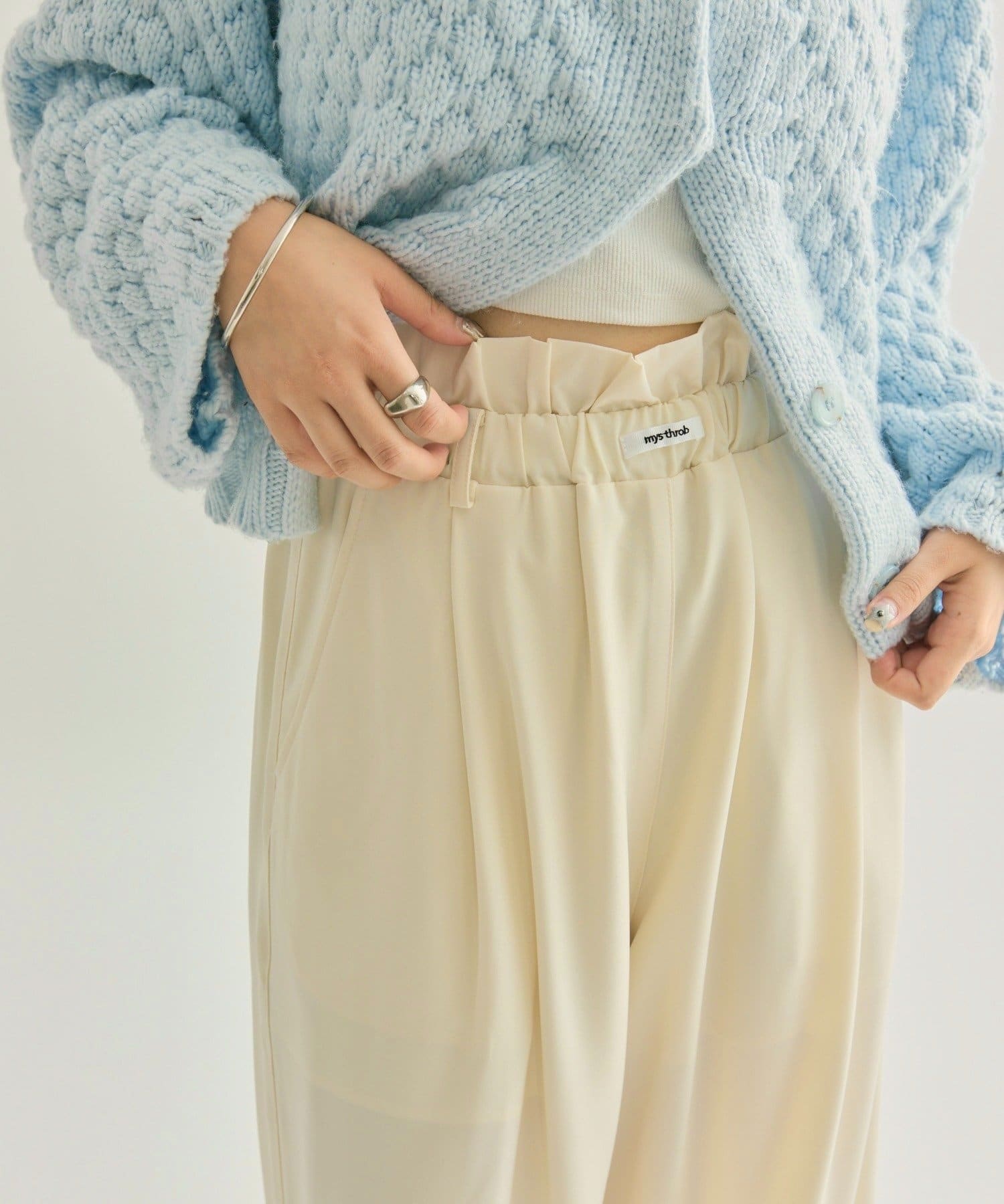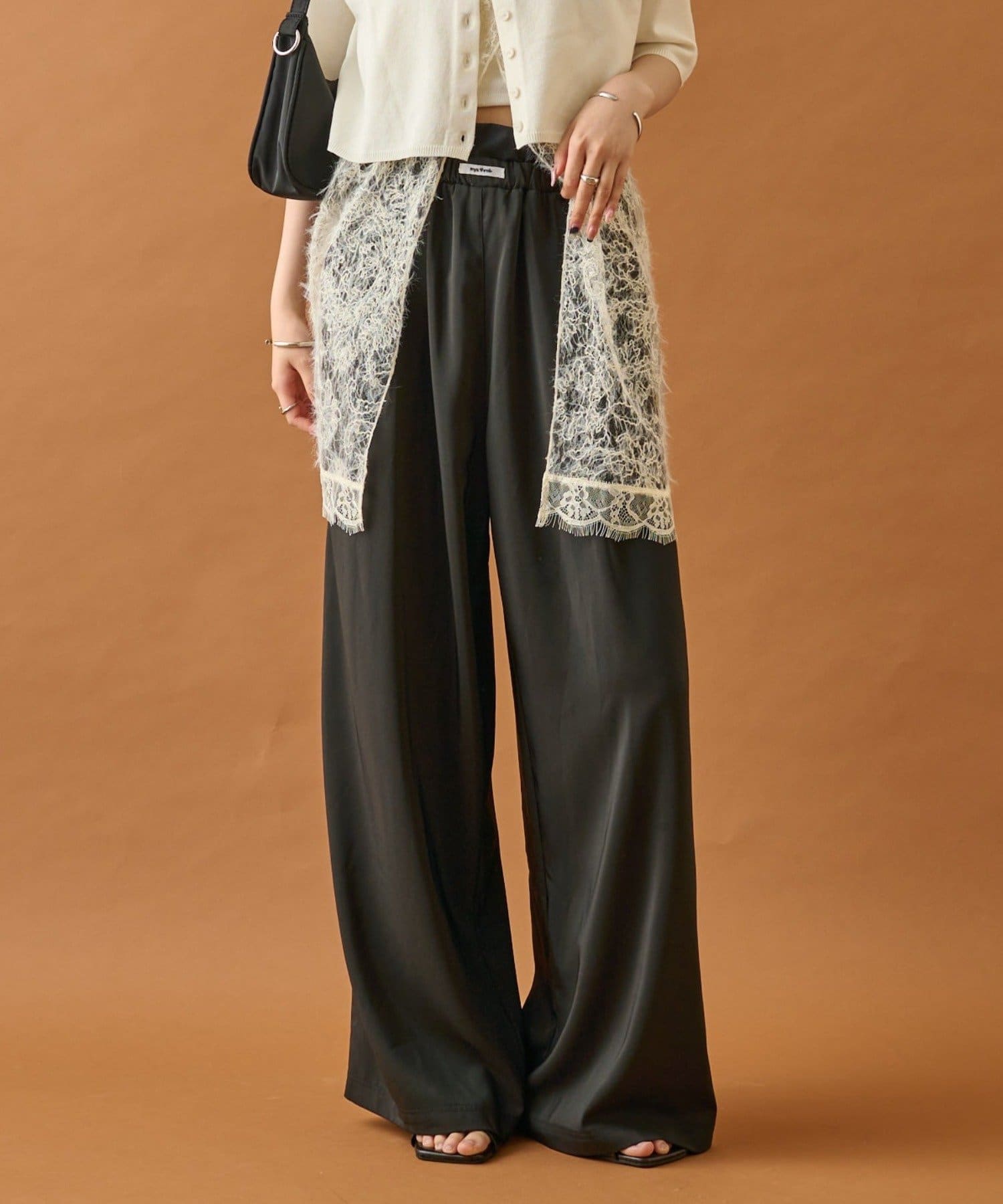 ・ウエストのフリルとネームタグがポイントのイージーパンツです!