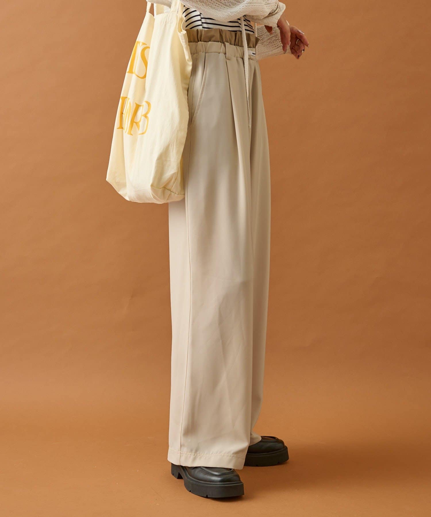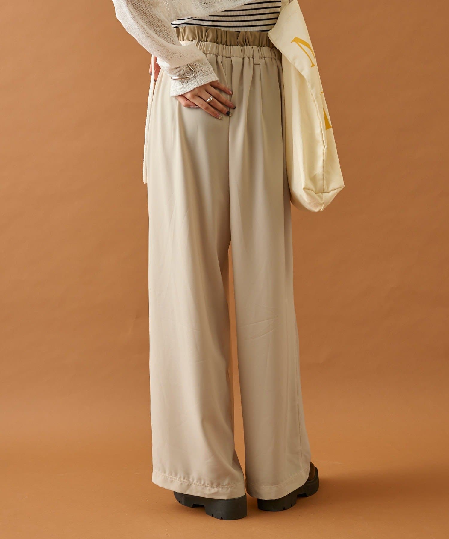・ウエスト周りはゴム仕様となっており、ストレスフリーな履き心地なのもうれしいポイント◎