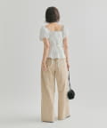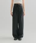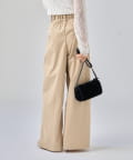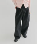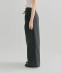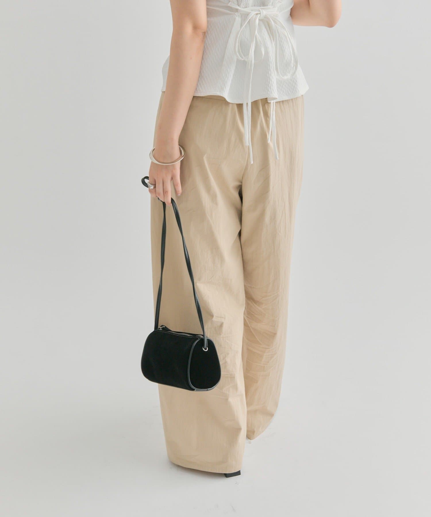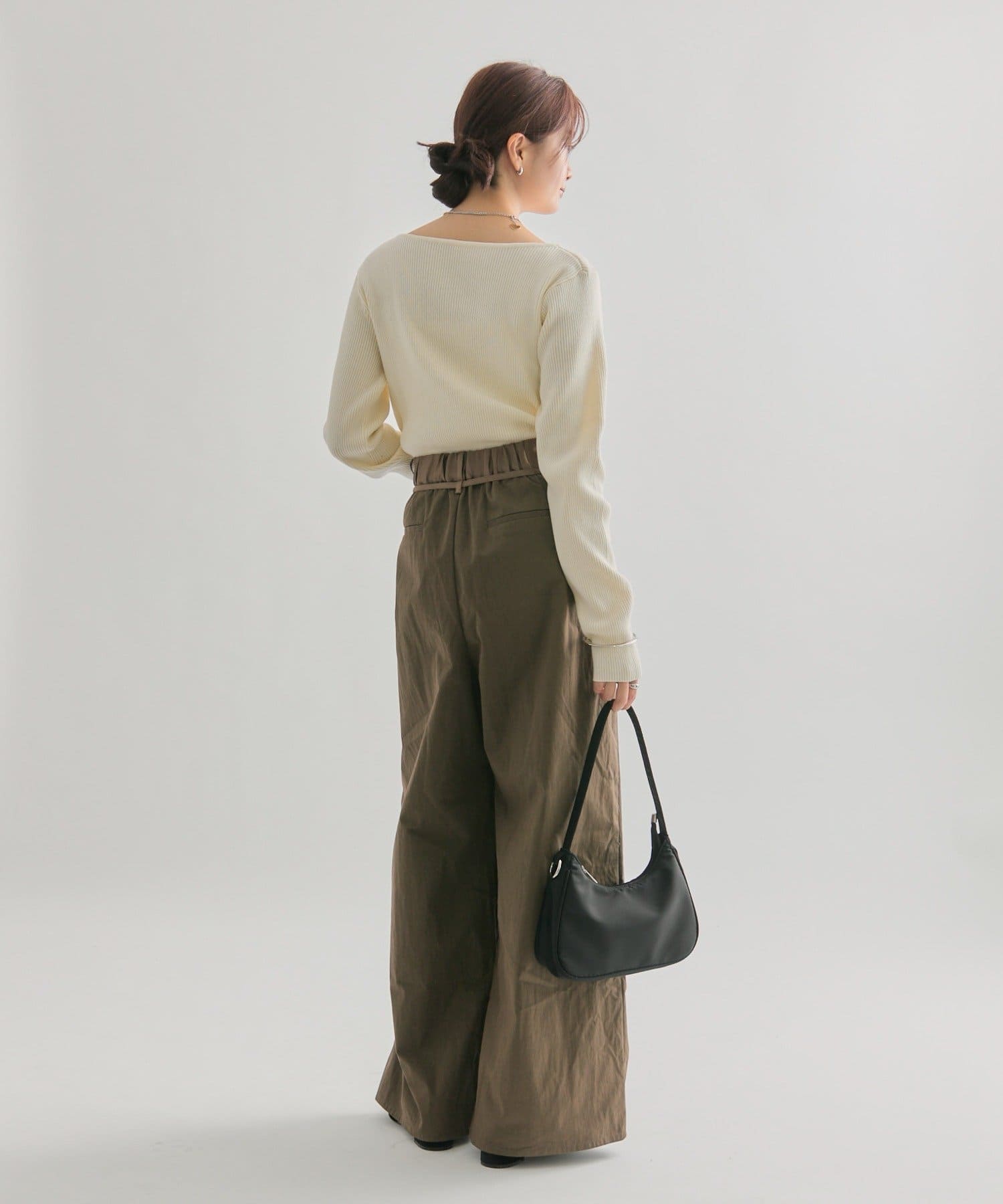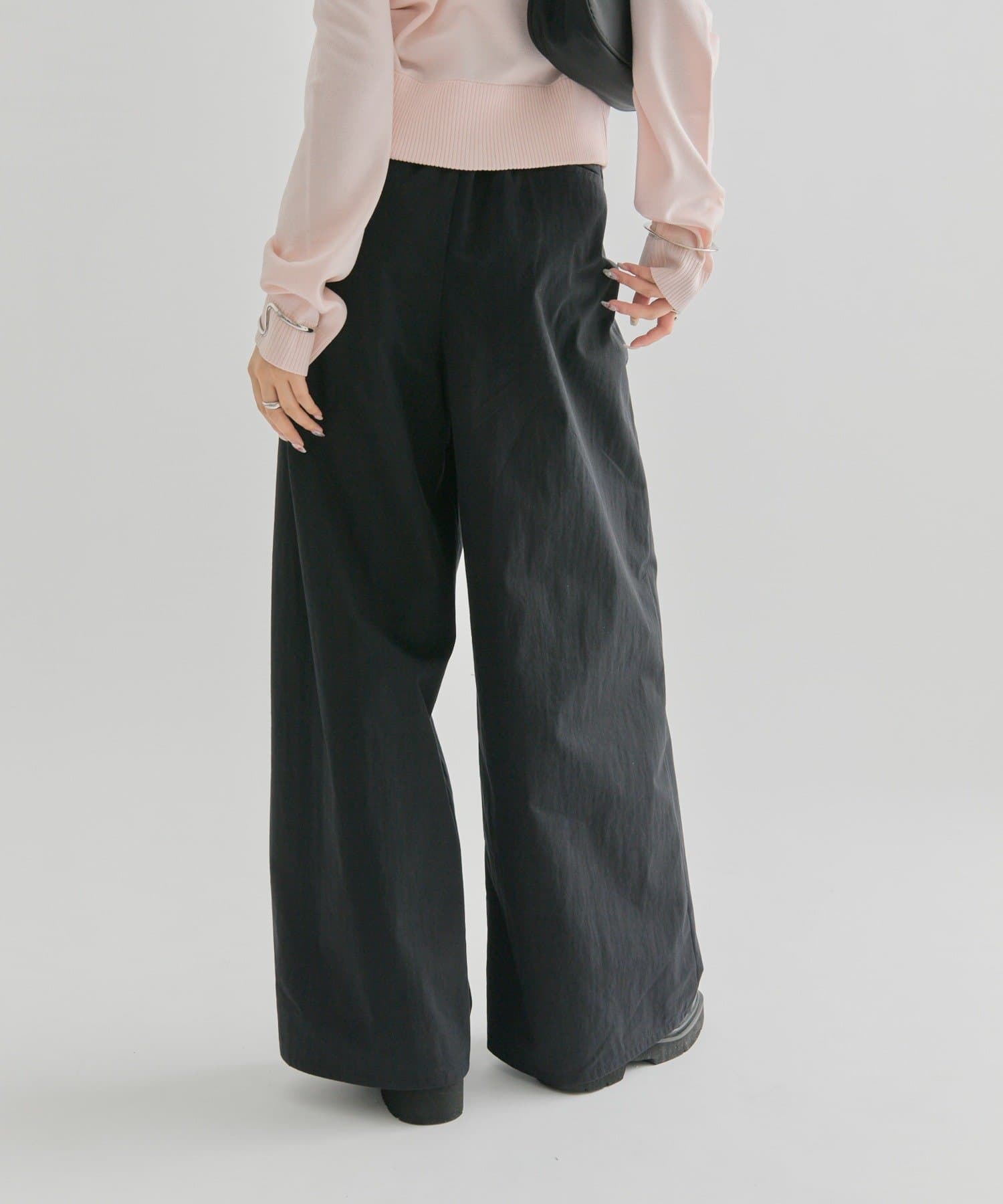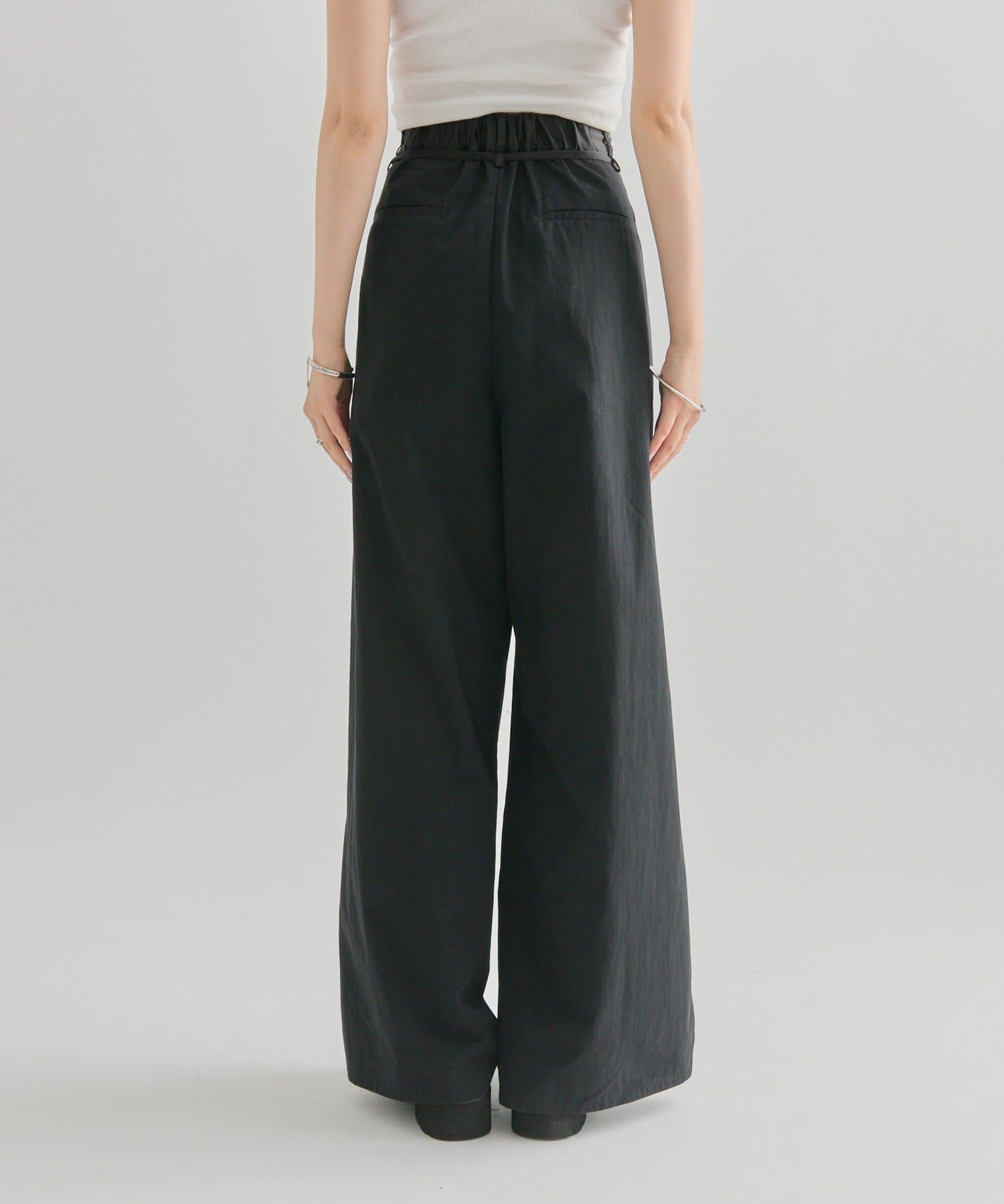 ・ウエスト周りがサテン生地のベルトデザイン仕様になっており、シンプルながらもインパクトを与えてくれるアイテム。さらっとしていて履きやすく、程よいワイド感で落ち感があり気になる脚のラインを拾わずカバーしてくれるのもポイントです♩