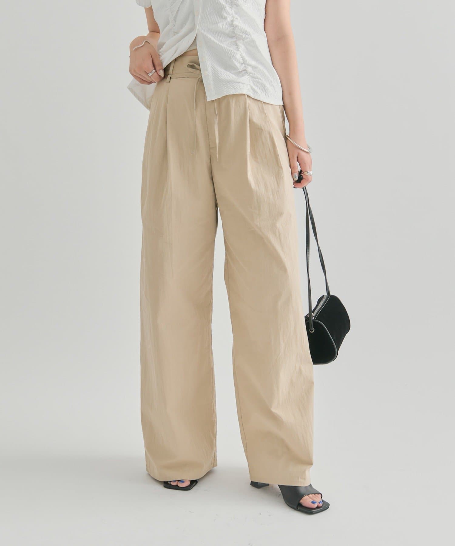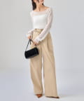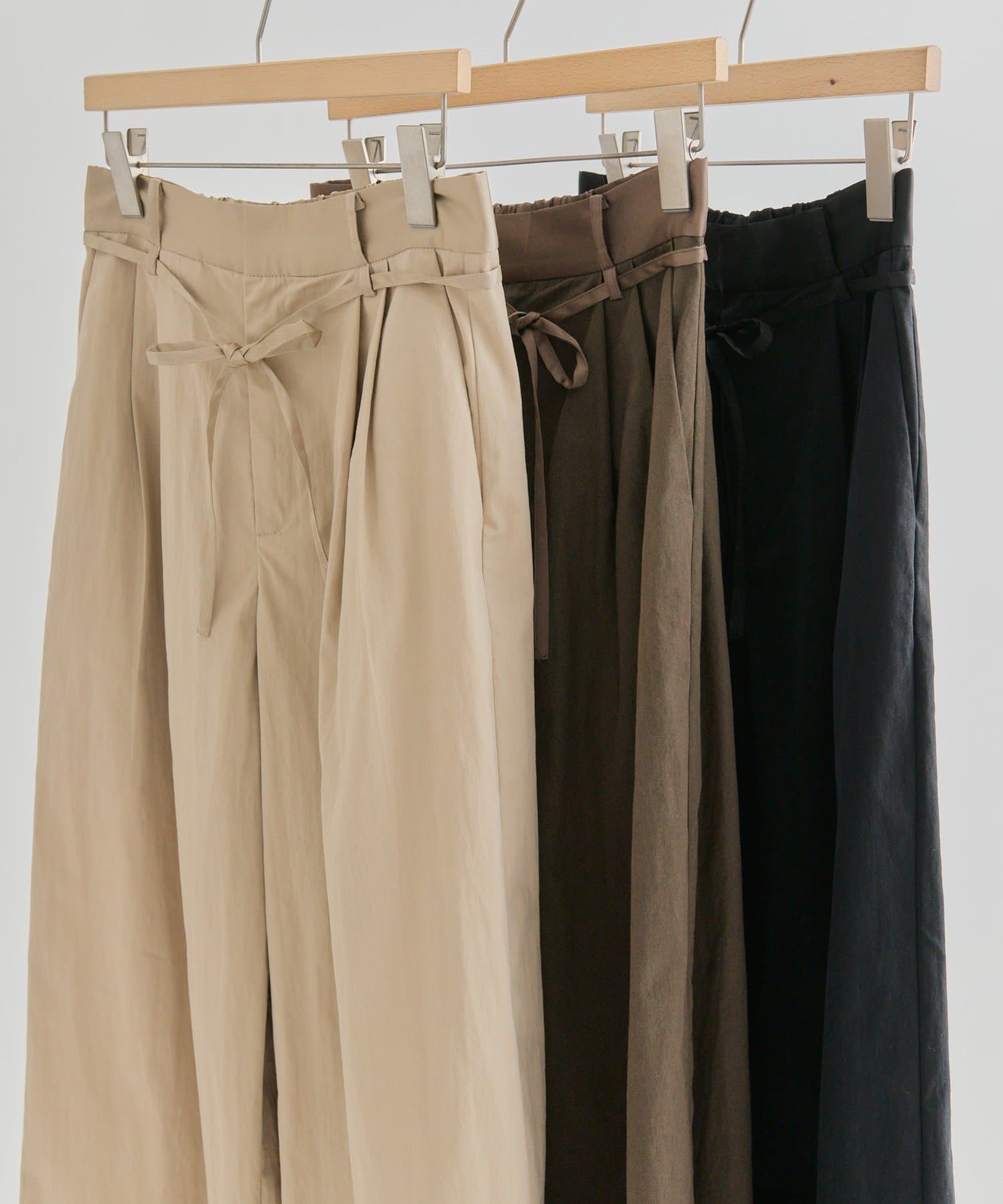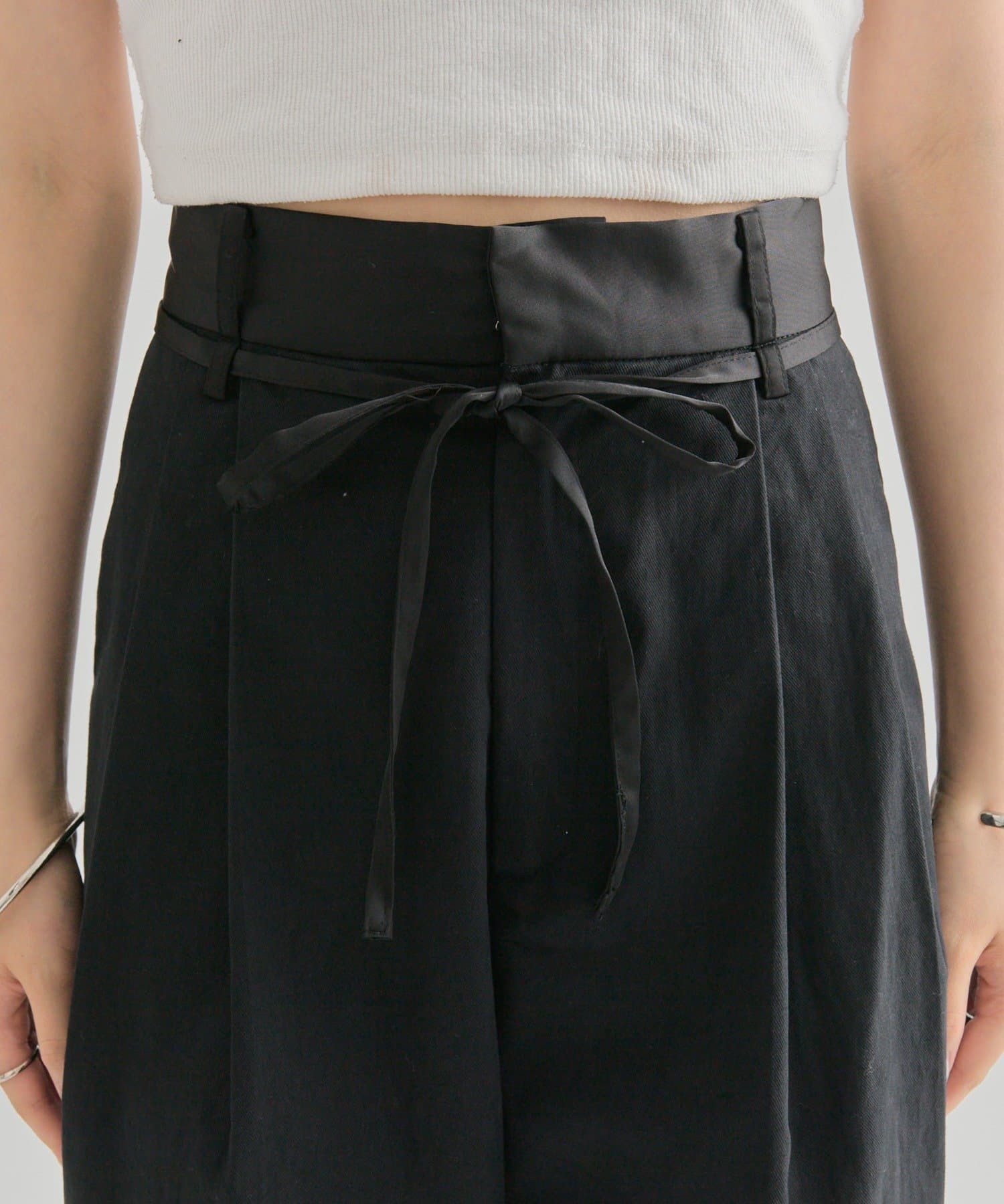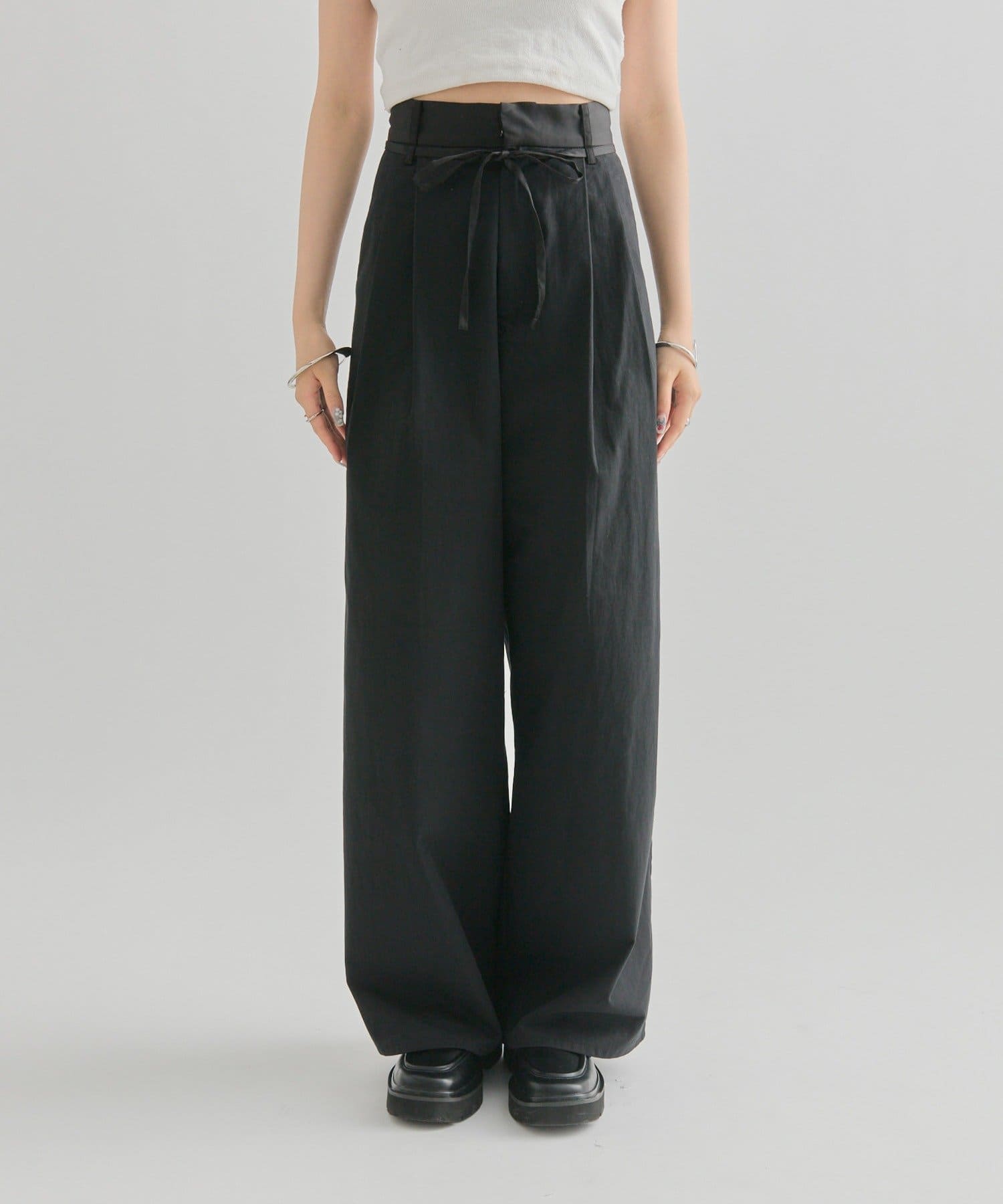 【2サイズ展開/幅広いアイテムとの相性◎】サテンベルトパンツ