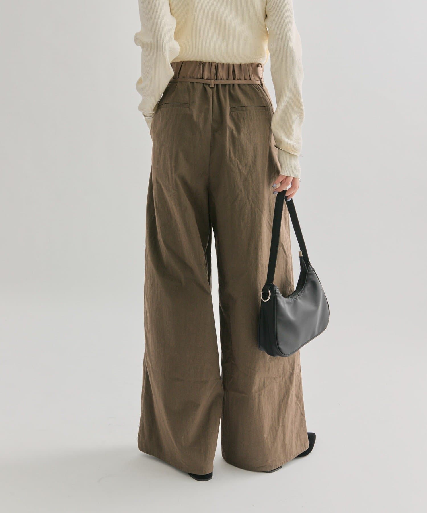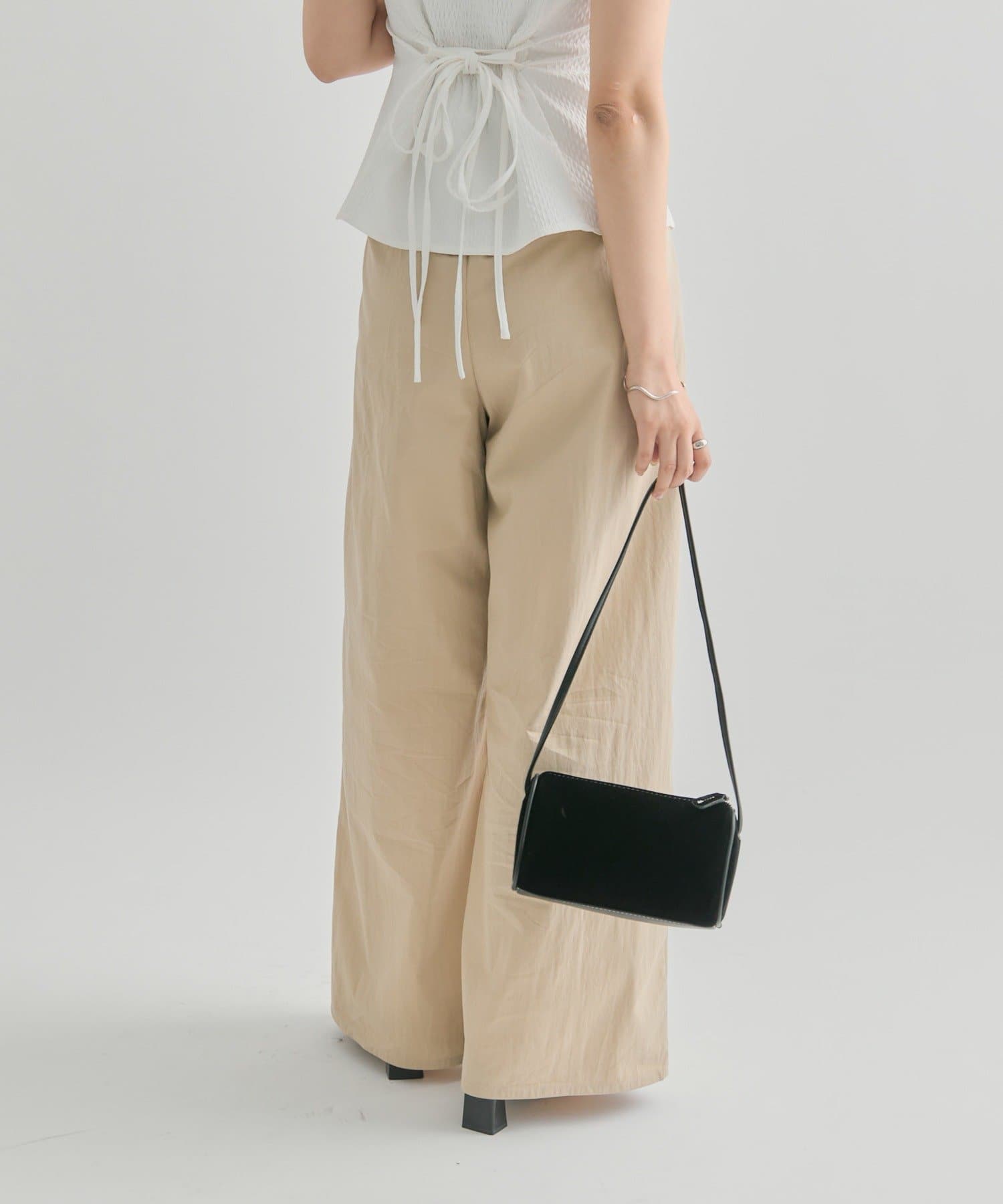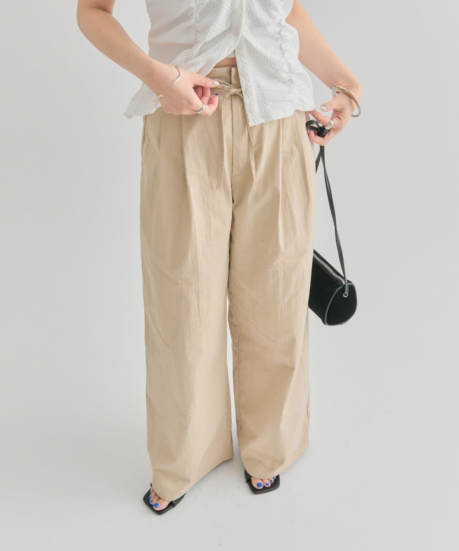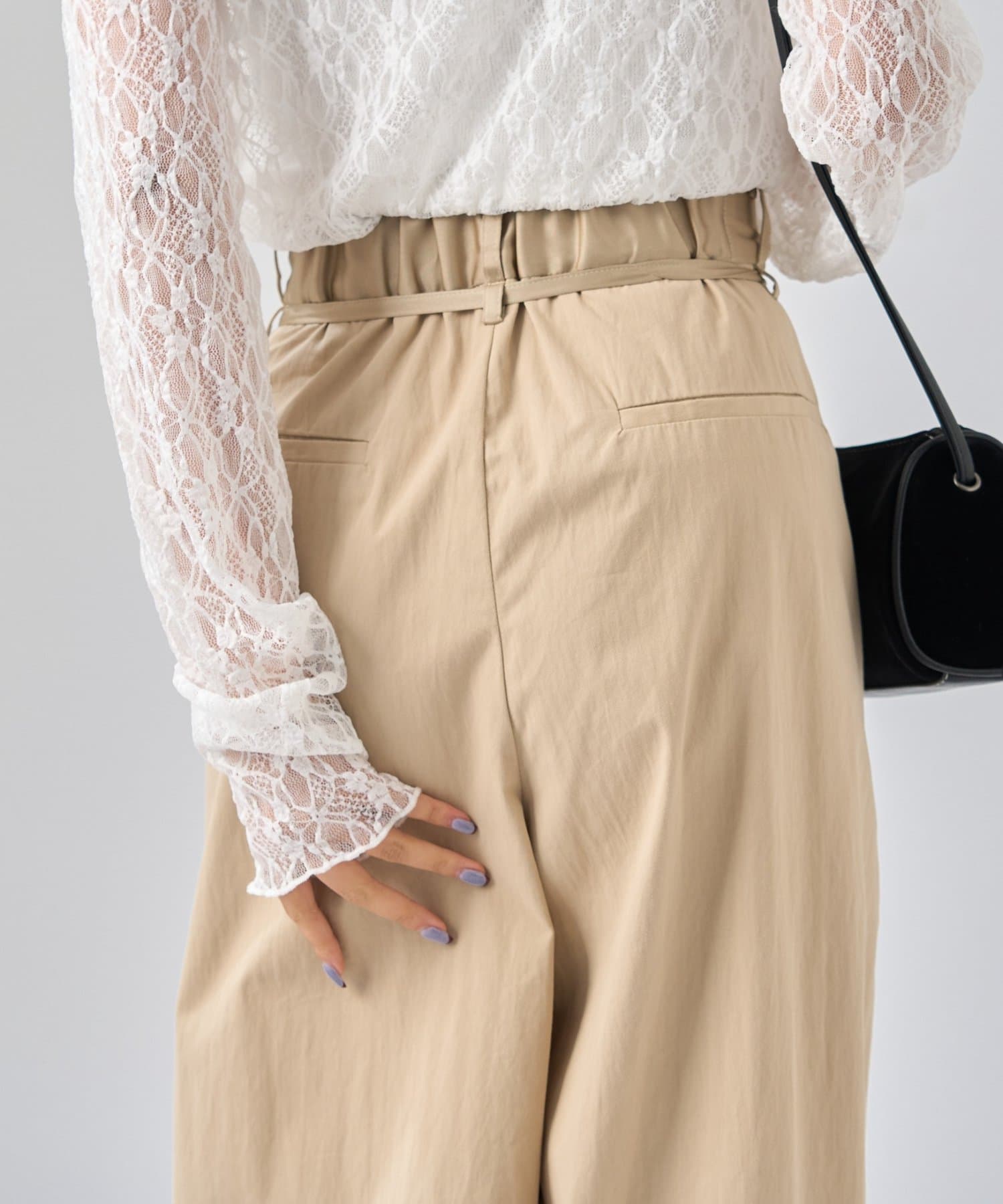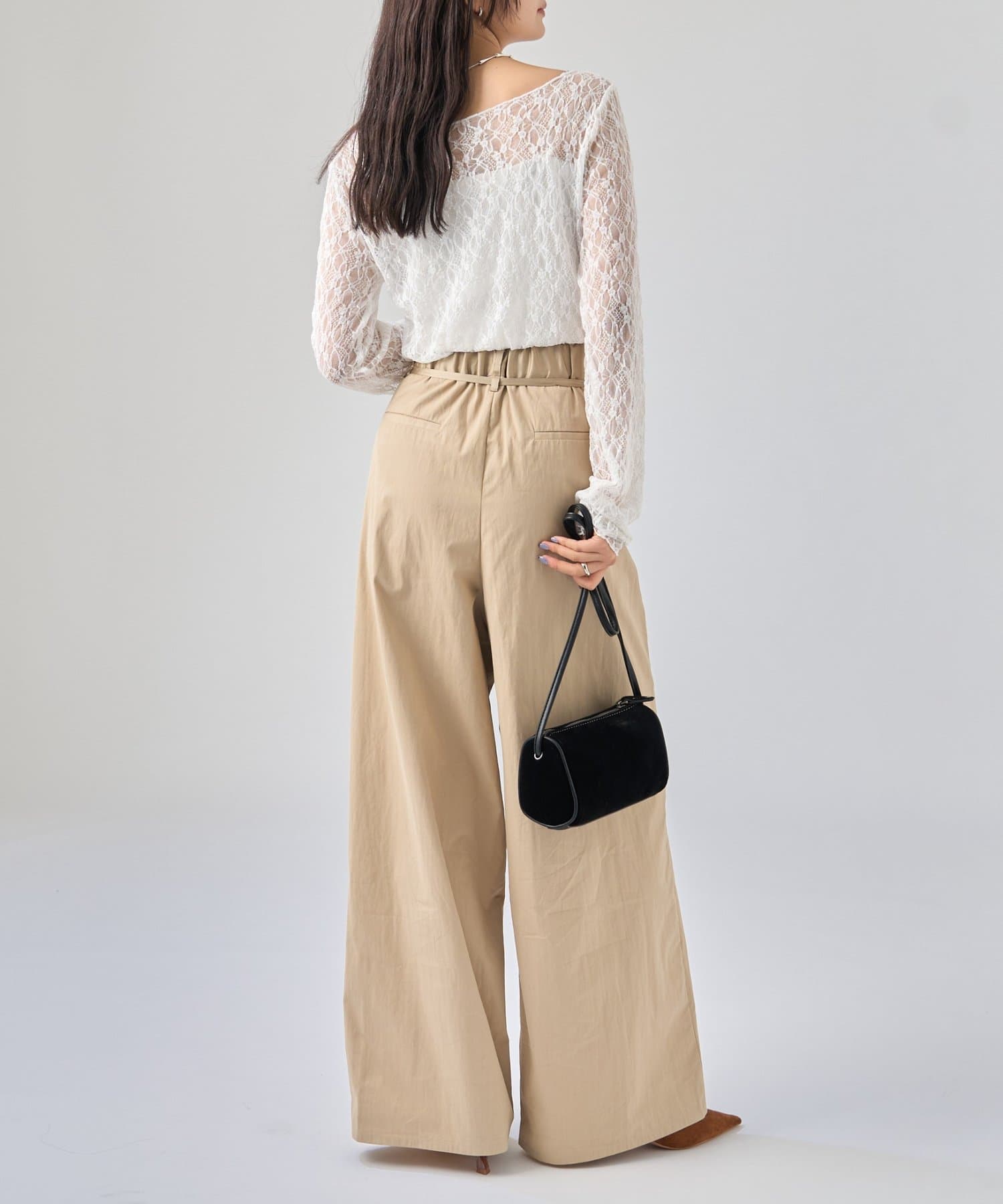 【2サイズ展開/幅広いアイテムとの相性◎】サテンベルトパンツ
