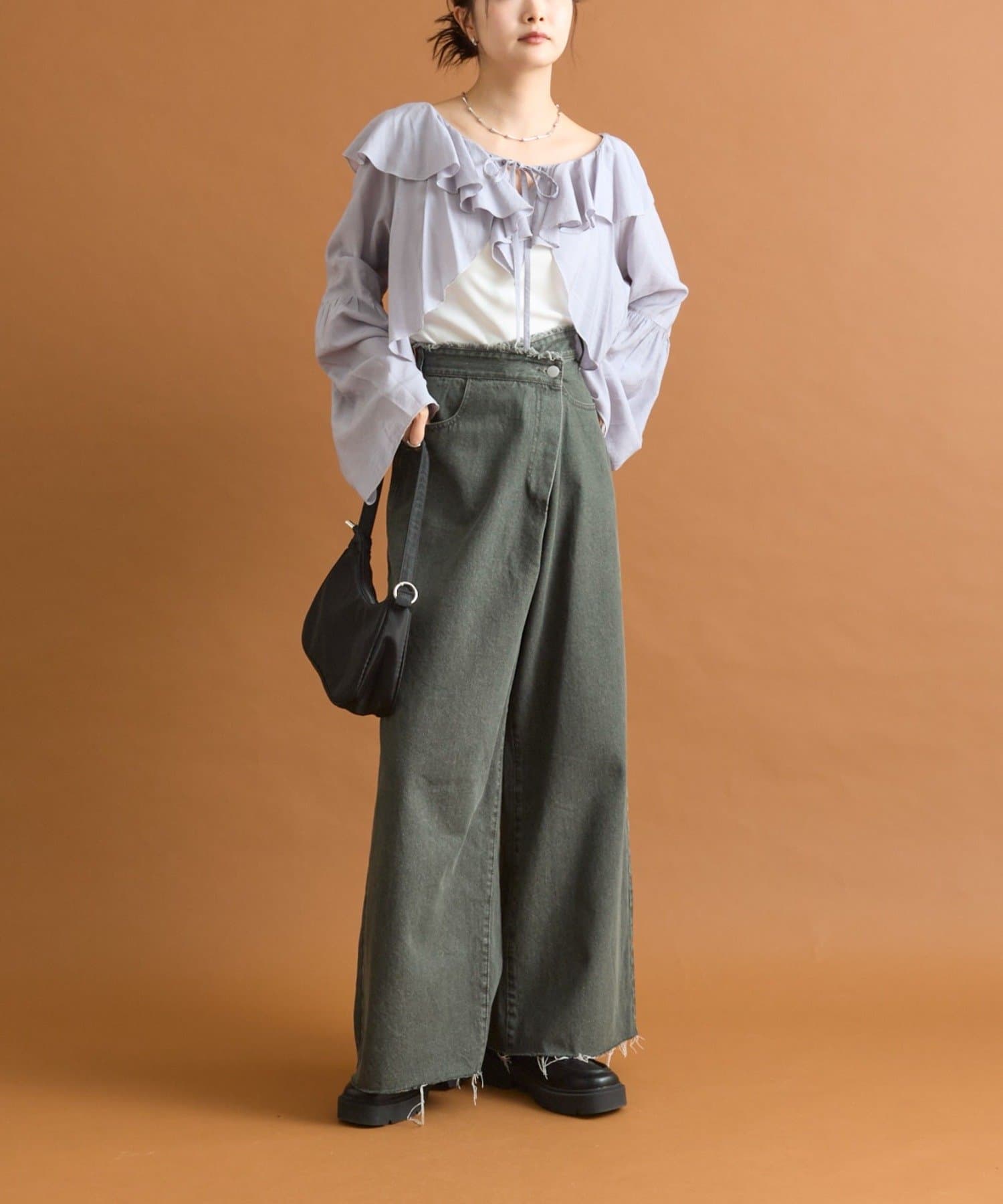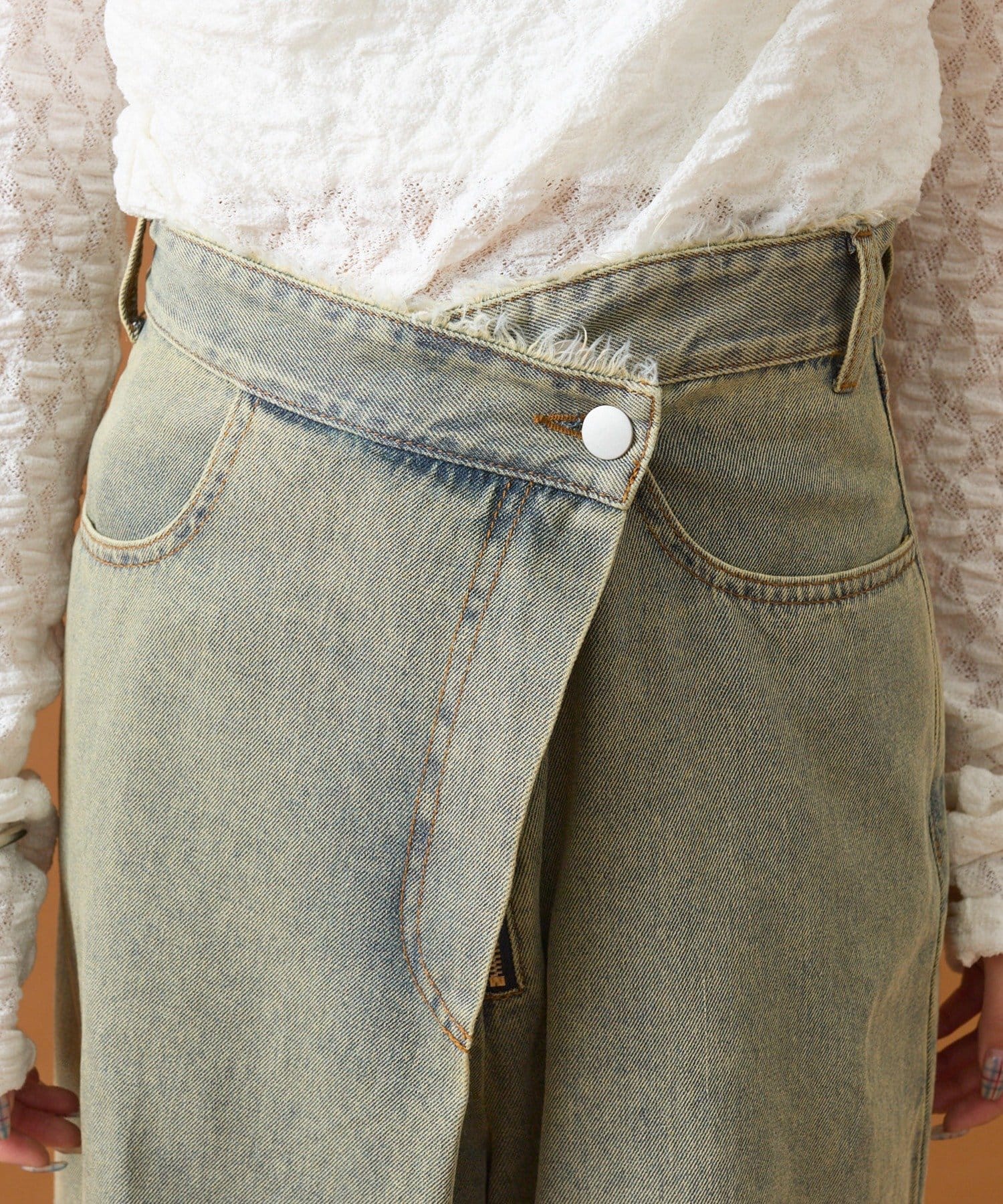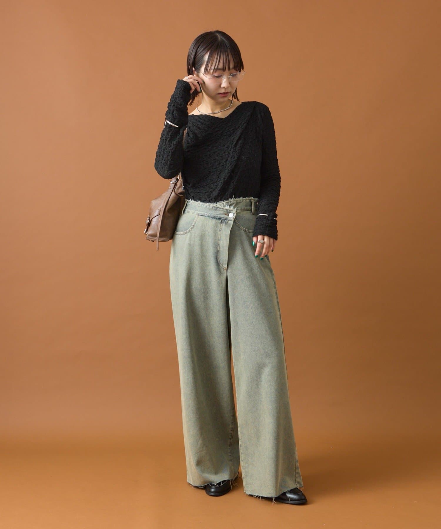 ・ウエスト部分をラップのように重ねたデザインのラップデニムで、シルエットの変化を楽しめます♡