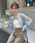 チェックシャツですが、シアー素材の透け感とフリルで女子っぽさもあり、甘めカジュアルなコーデに挑戦したい方にもおすすめなアイテムです!シアー素材で程よく抜け感があるため涼しく羽織としても使えるので、夏の暑い時期の温度調節としても使いやすいと思いました。