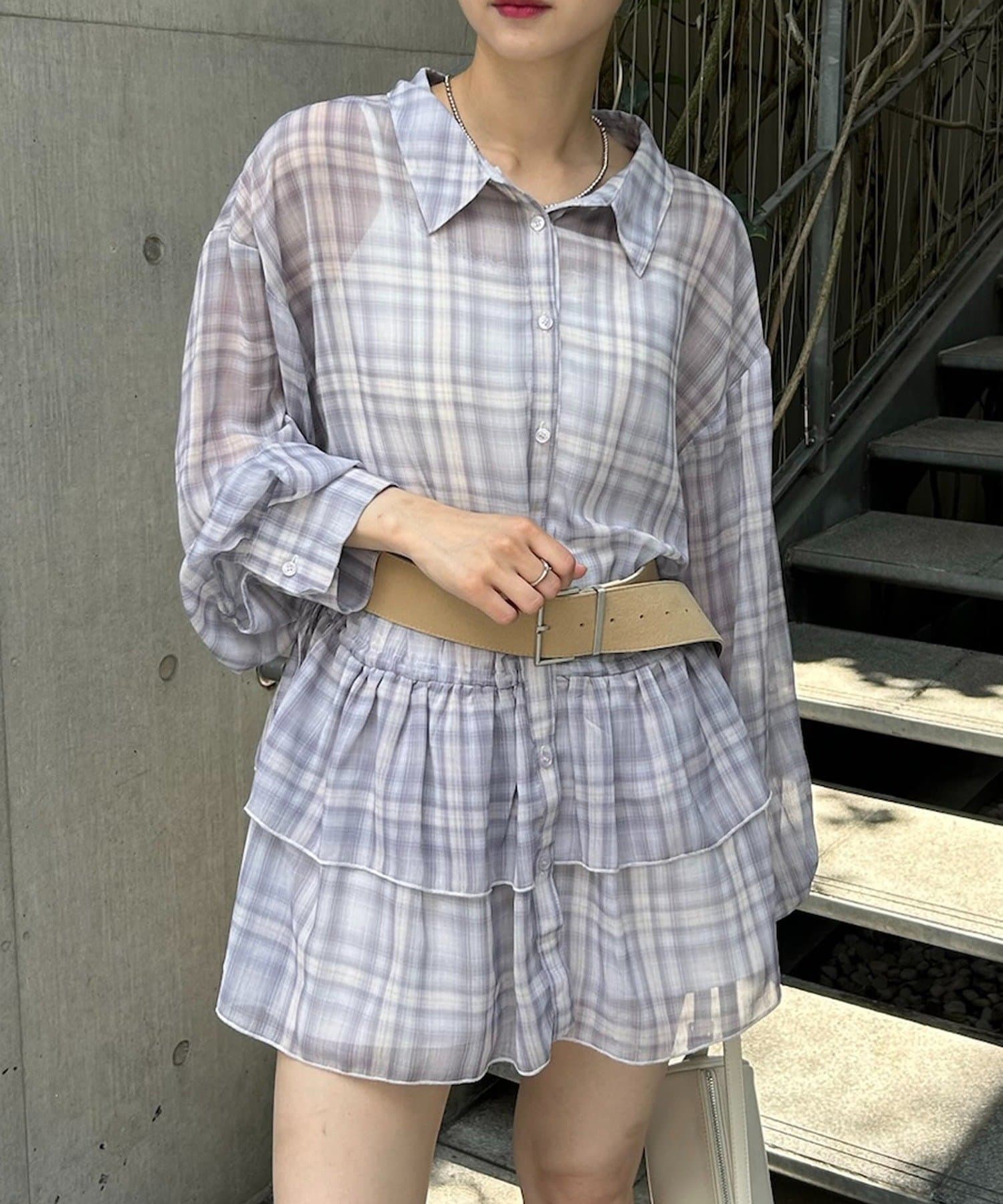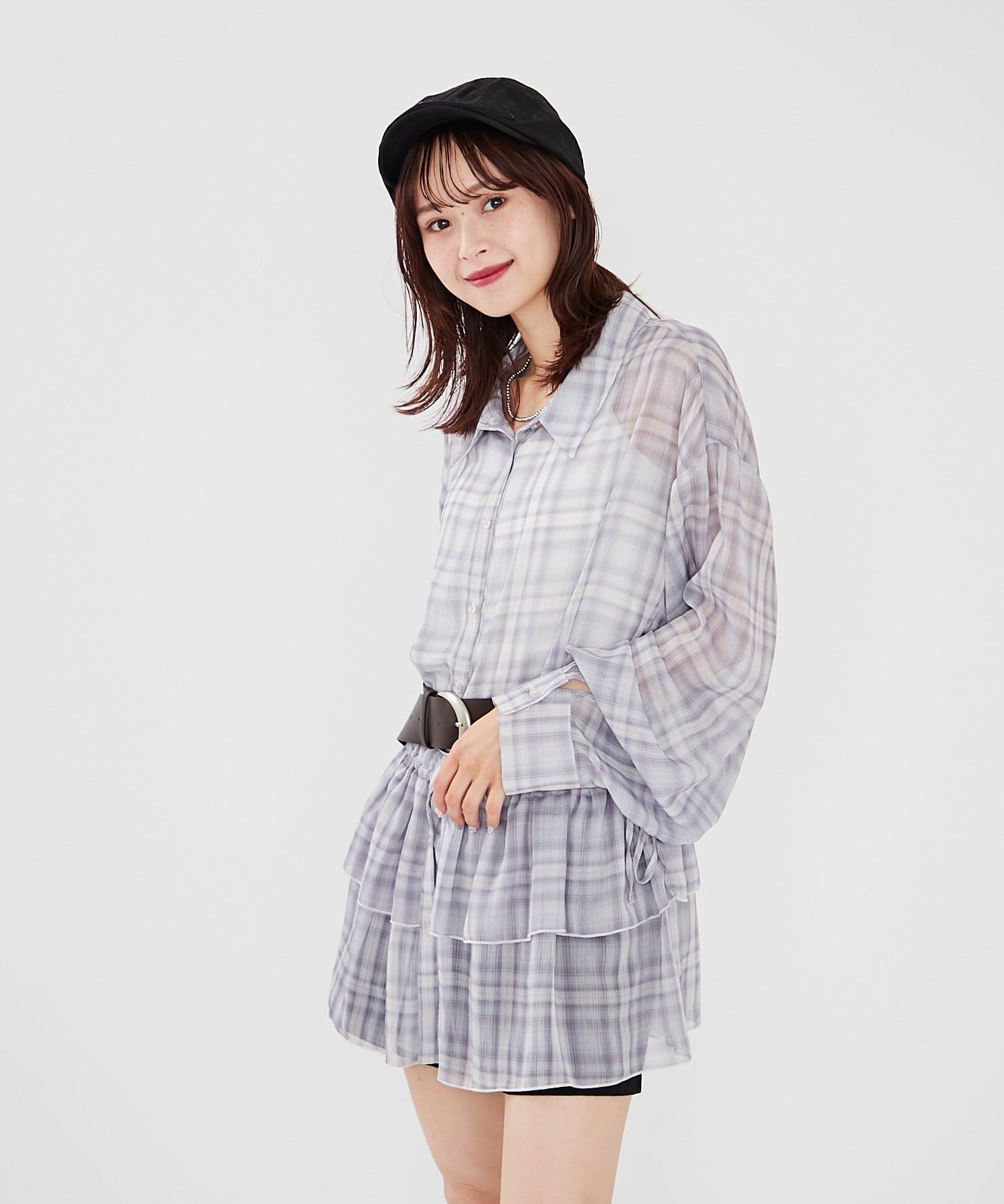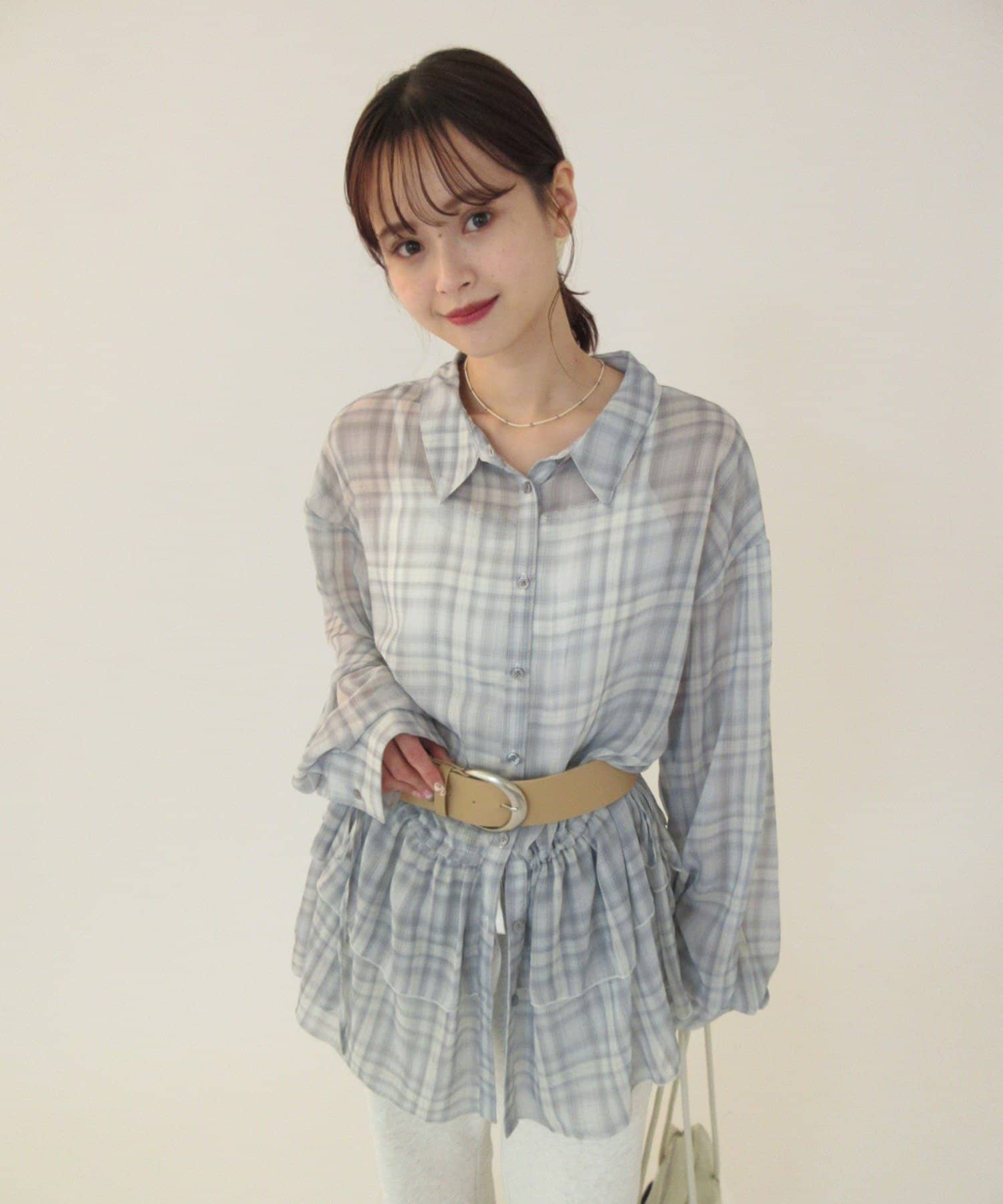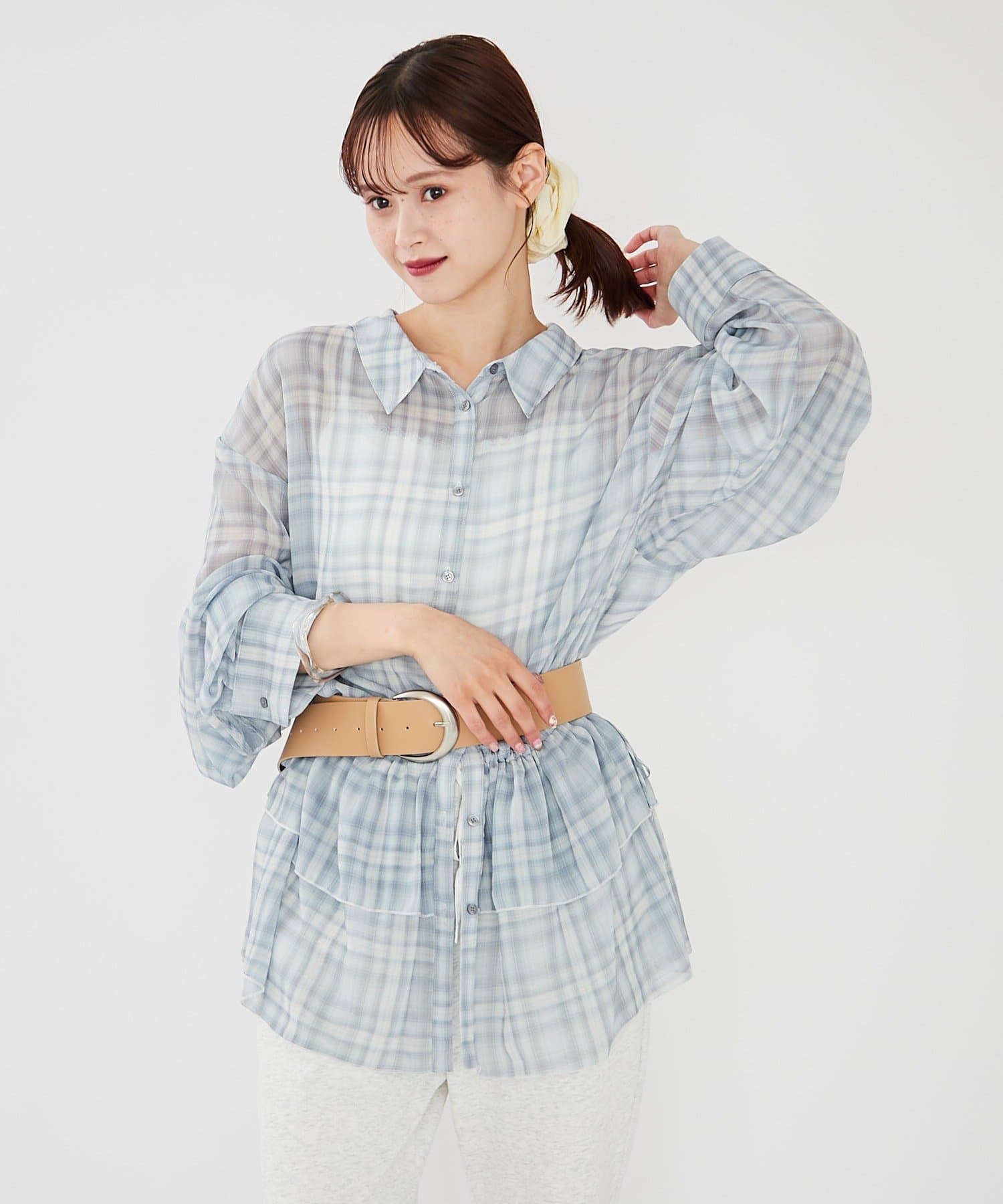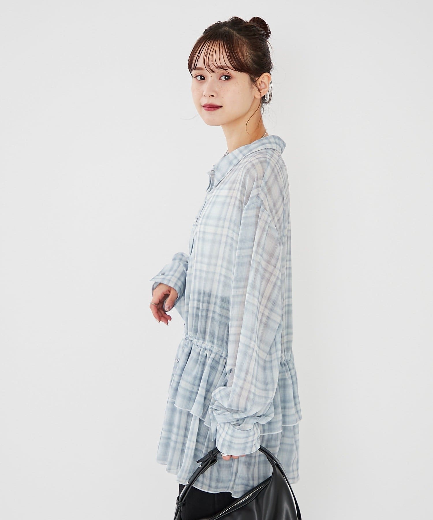 【@akane__11.1企画】これ1枚でトレンドスタイルが叶う♩シアーチェックティアードシャツ
