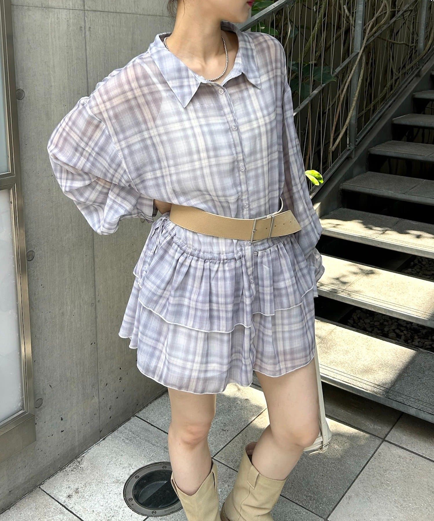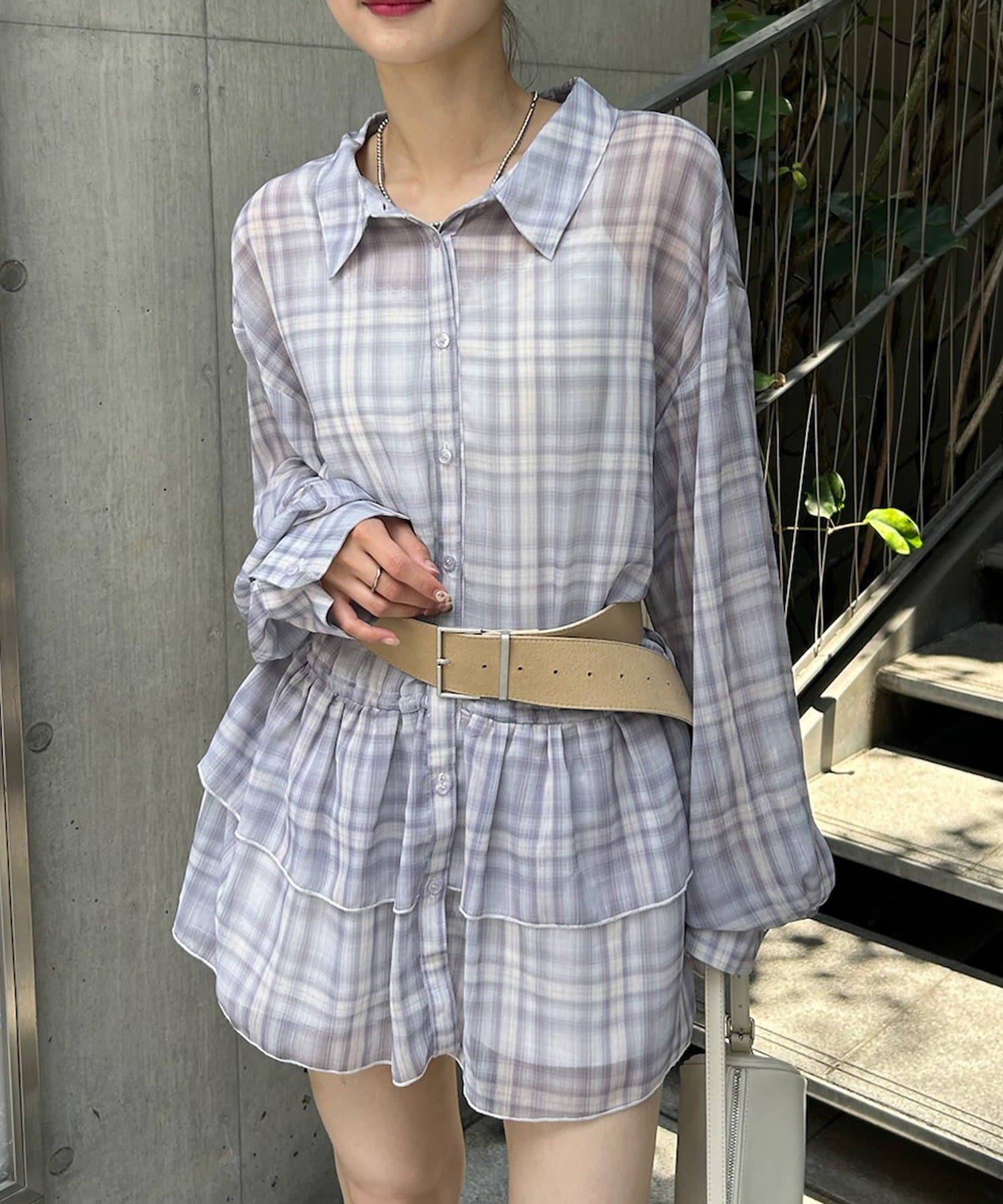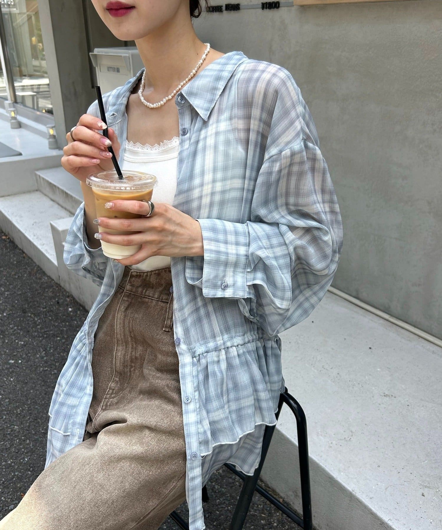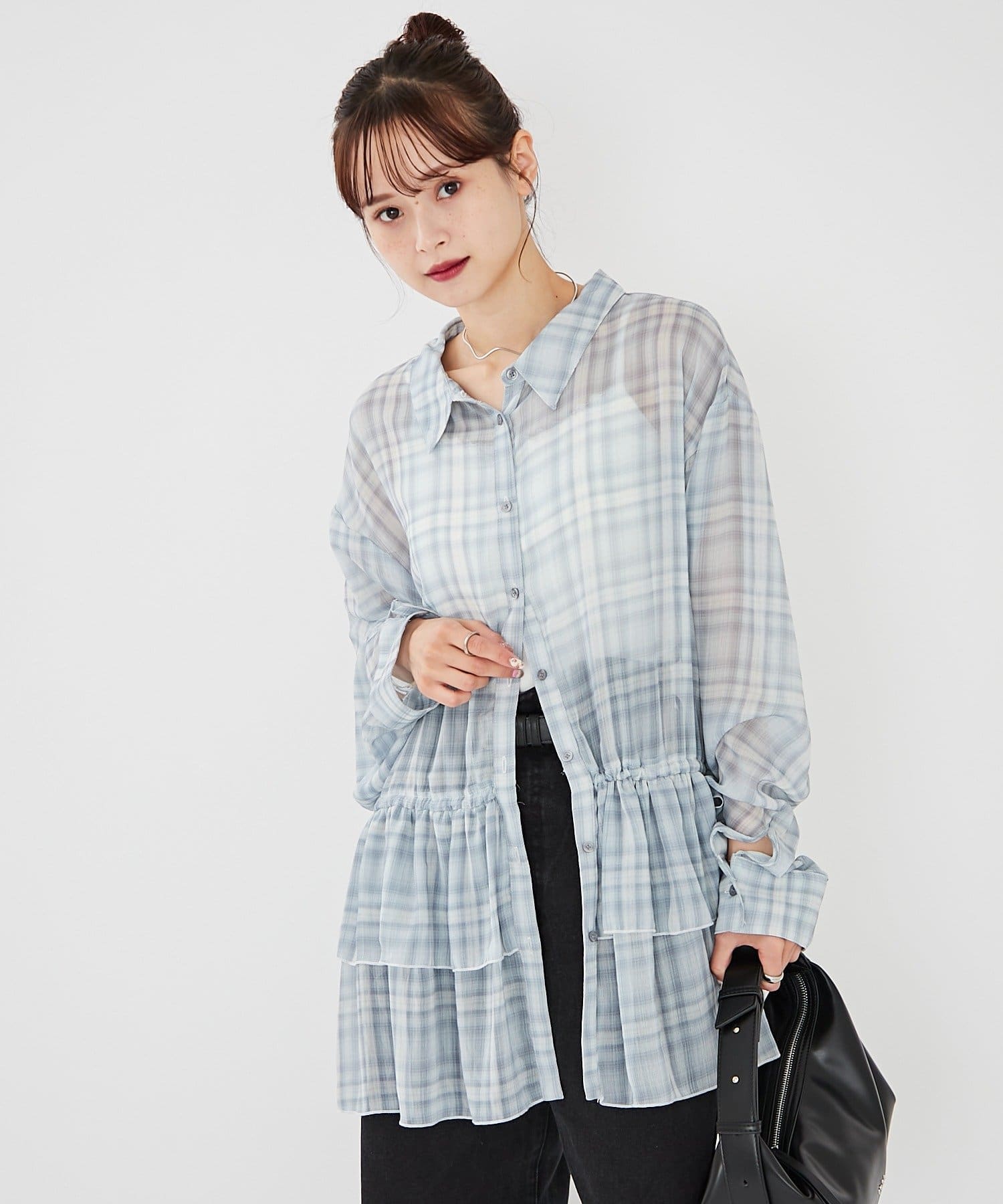 【@akane__11.1企画】これ1枚でトレンドスタイルが叶う♩シアーチェックティアードシャツ