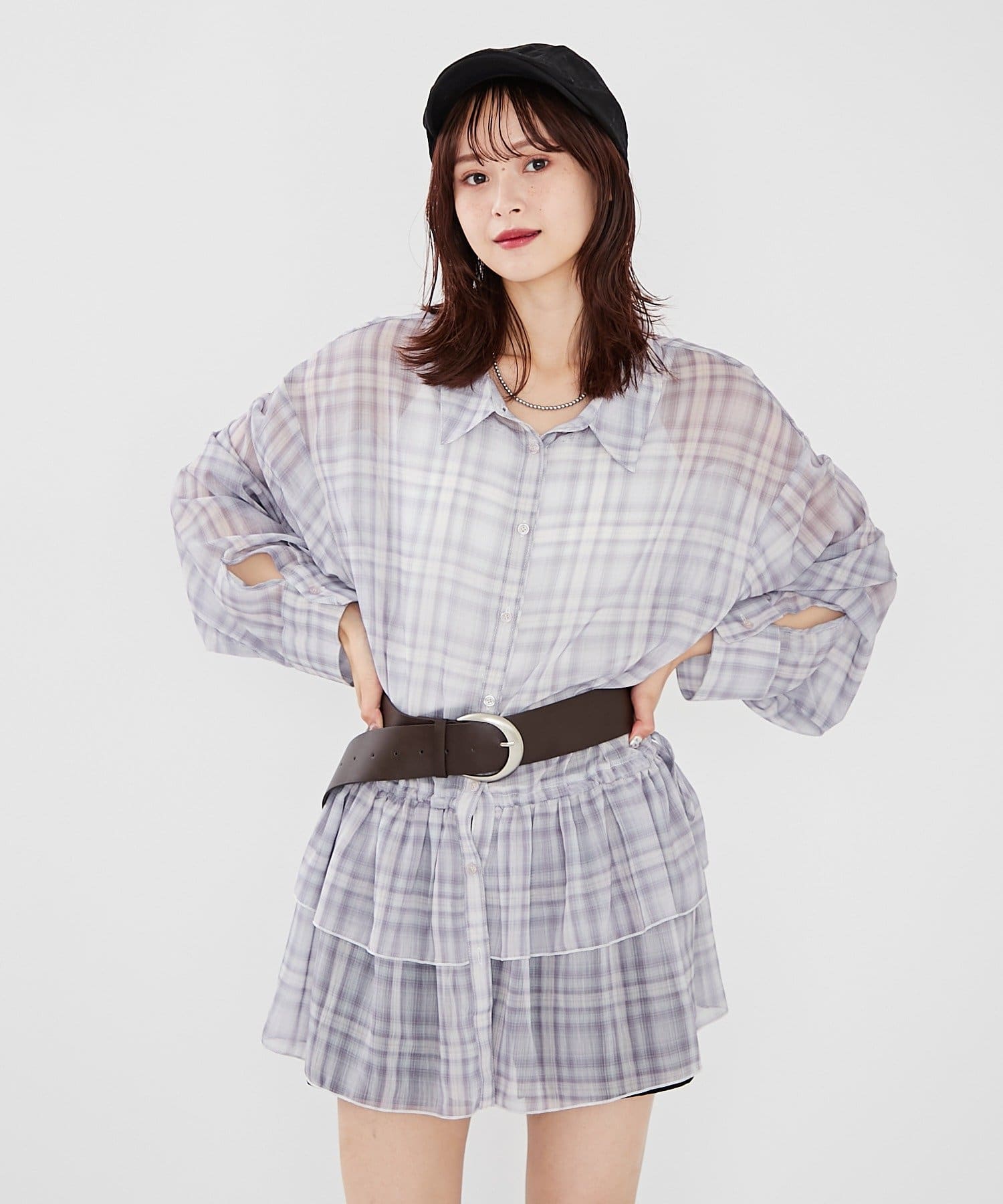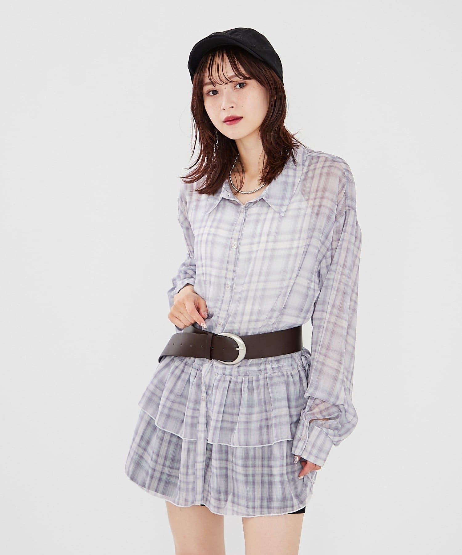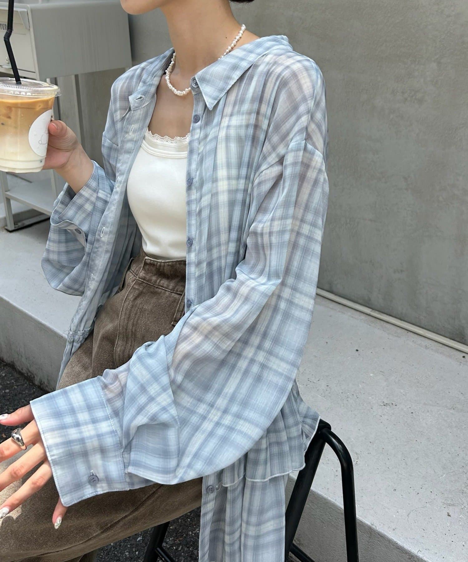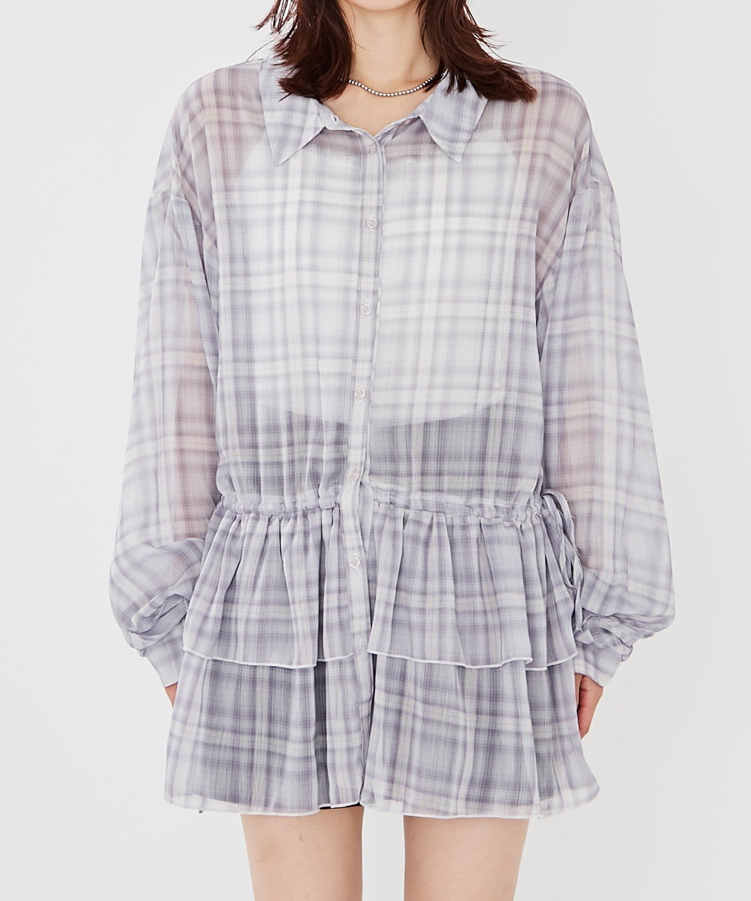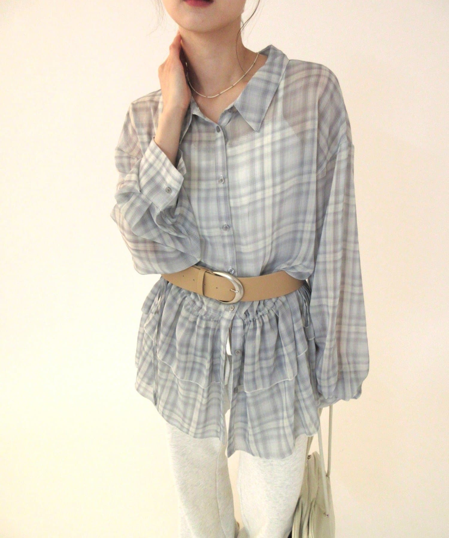【@akane__11.1企画】これ1枚でトレンドスタイルが叶う♩シアーチェックティアードシャツ