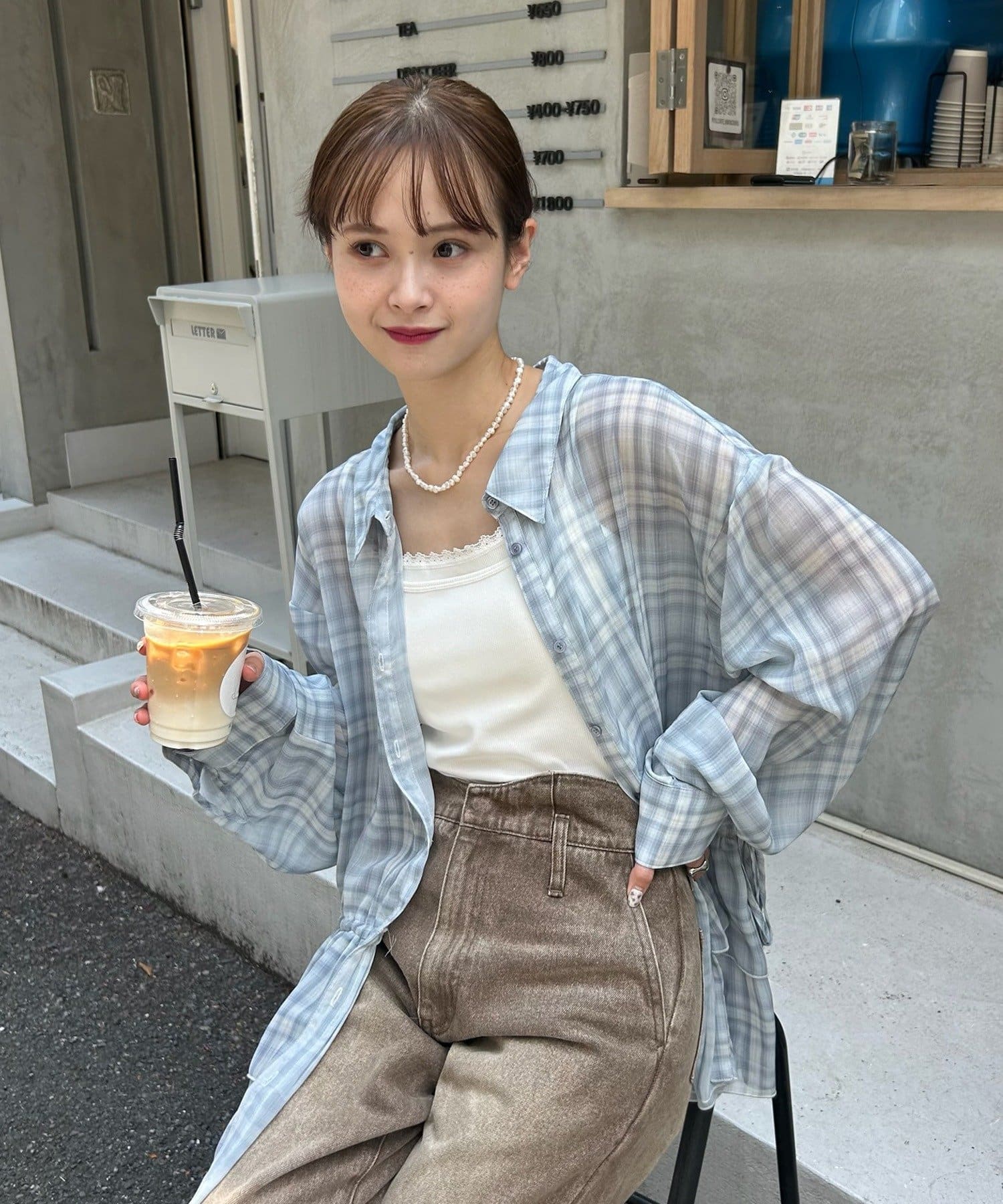 〇柔らかいシフォンの素材感で、トレンドのチェックシャツでも女子っぽく着られます♡