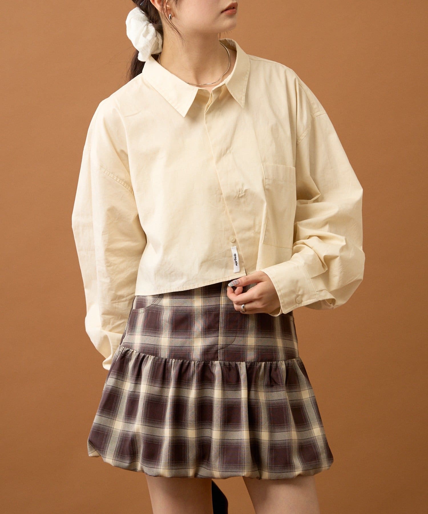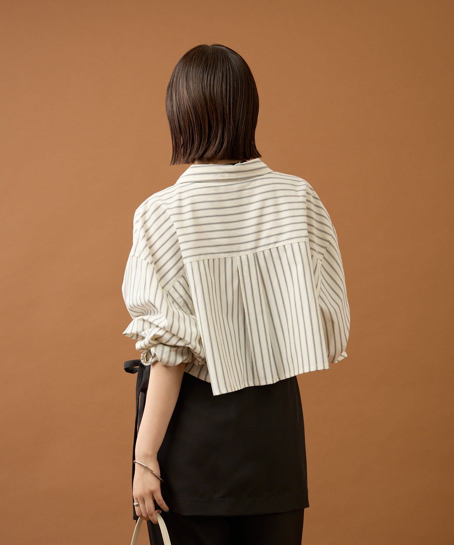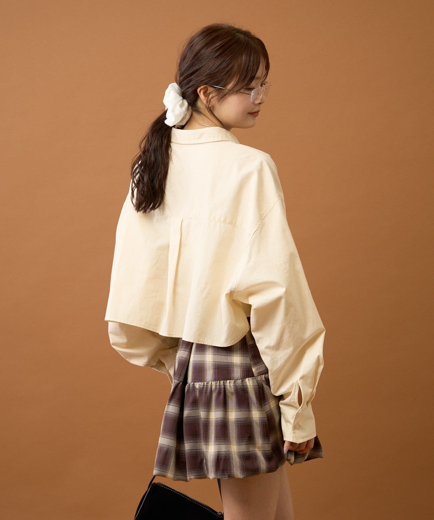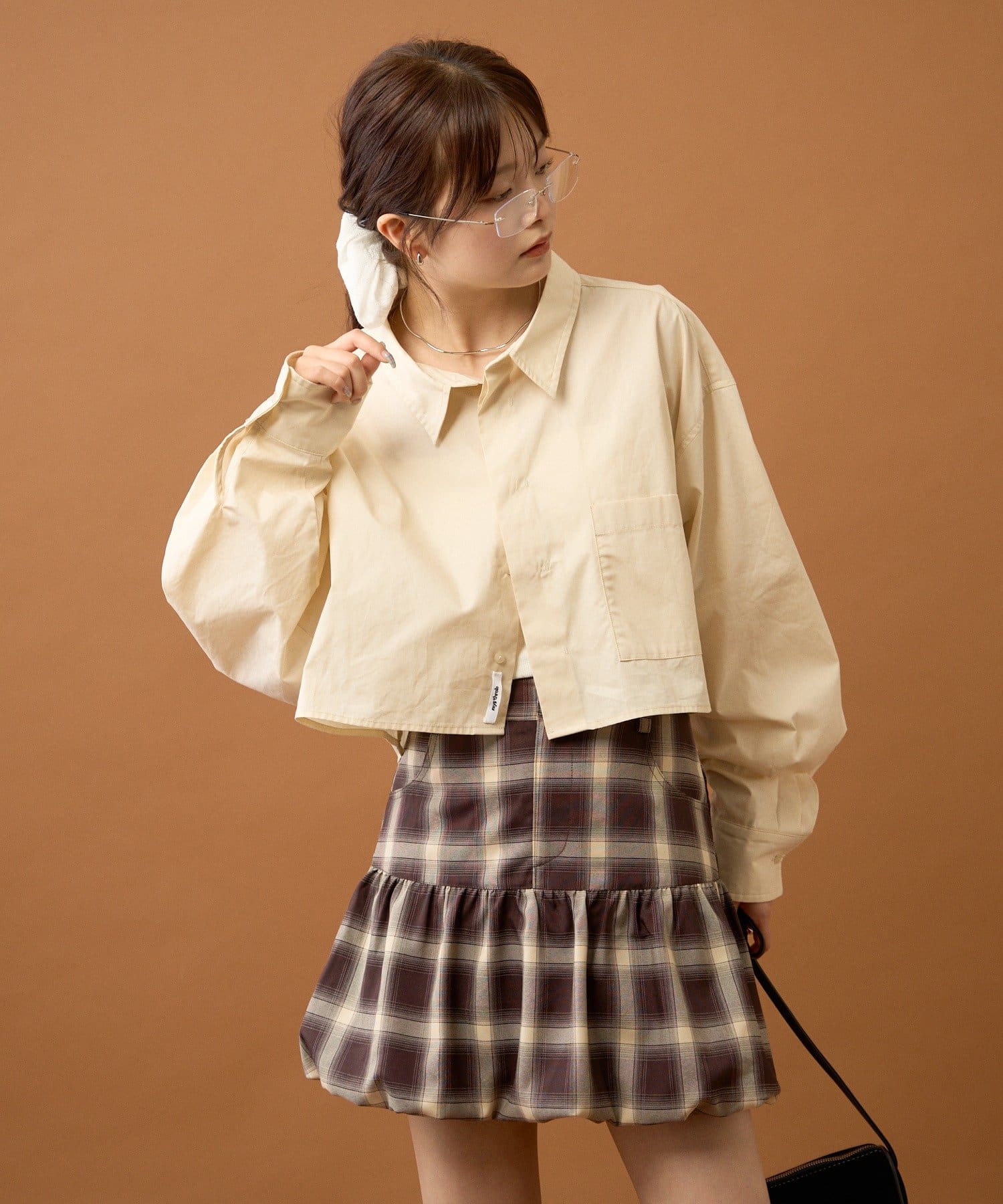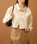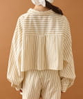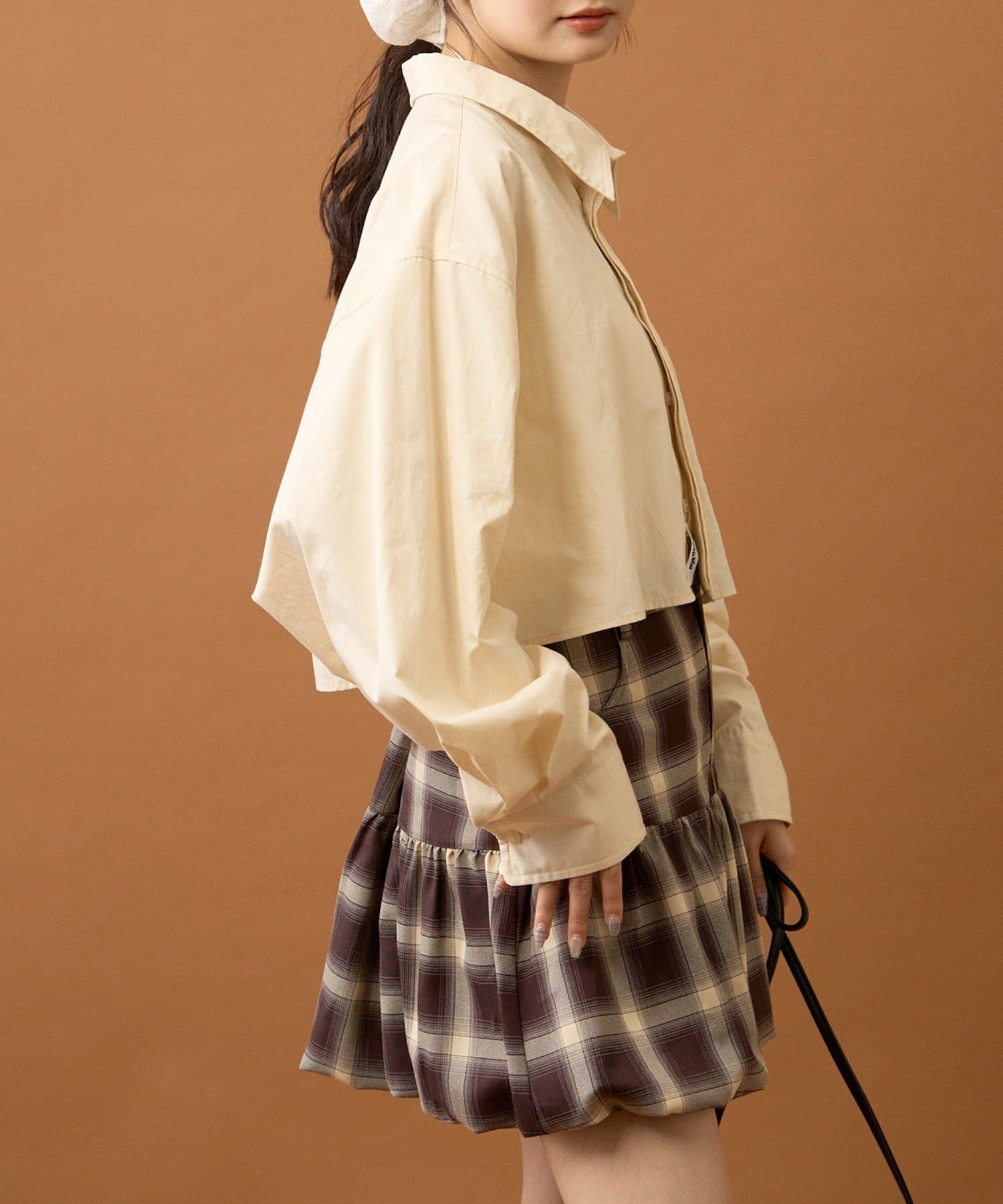 ショート丈なのでワイドめなボトムスやふんわりとしたバルーンデザインのアイテムと合わせると