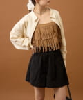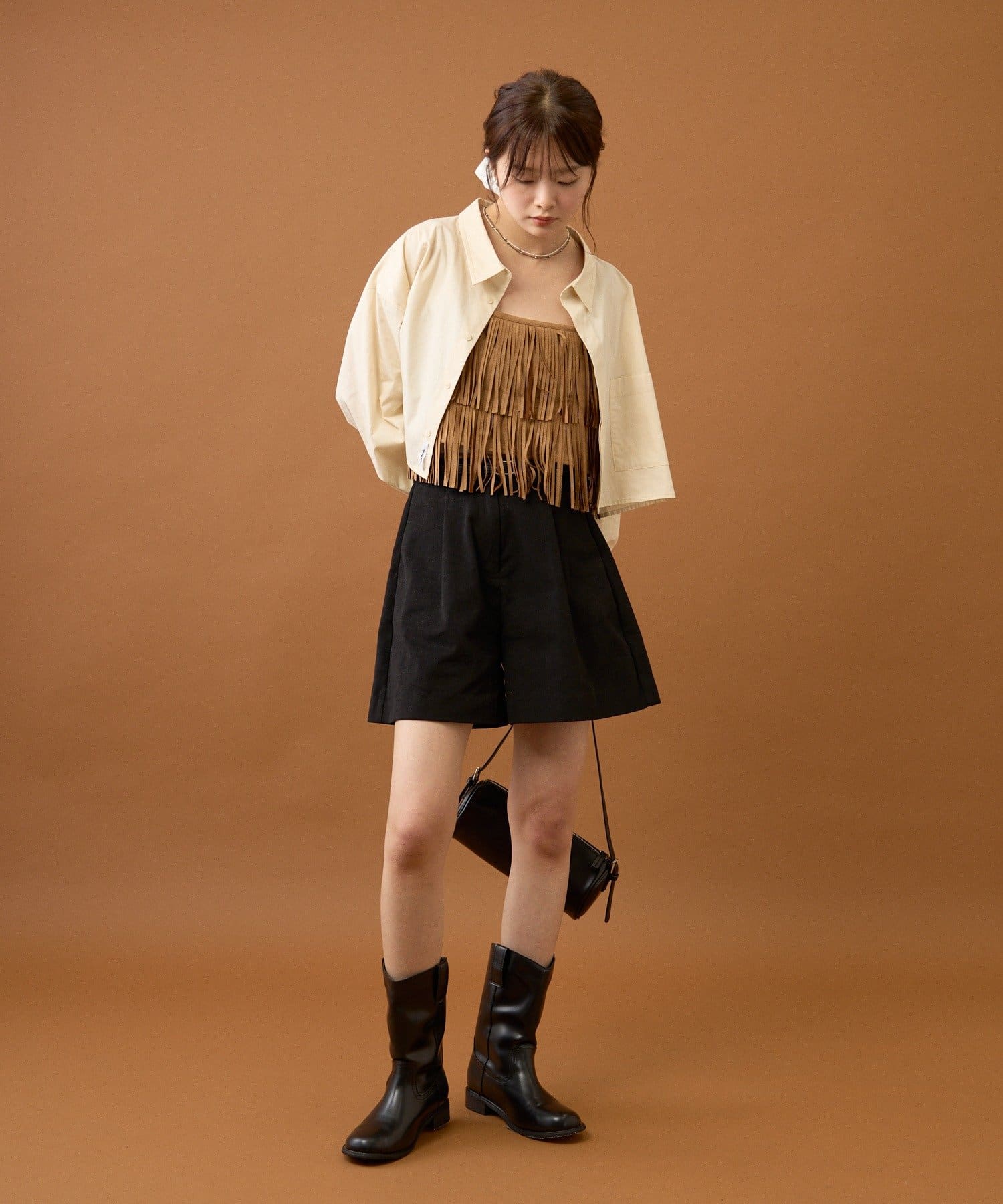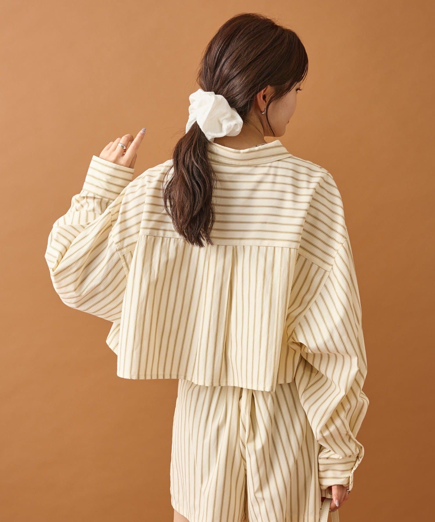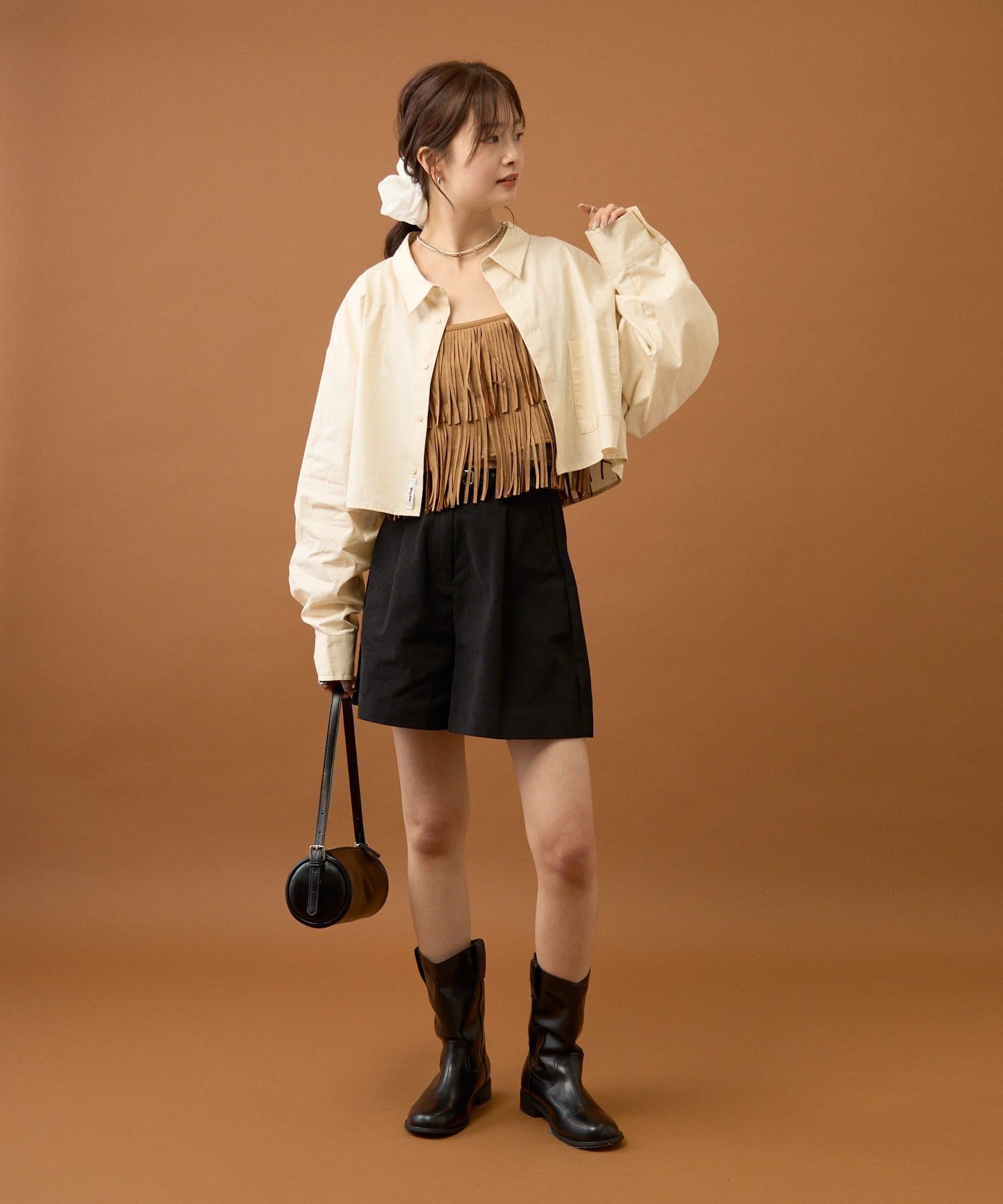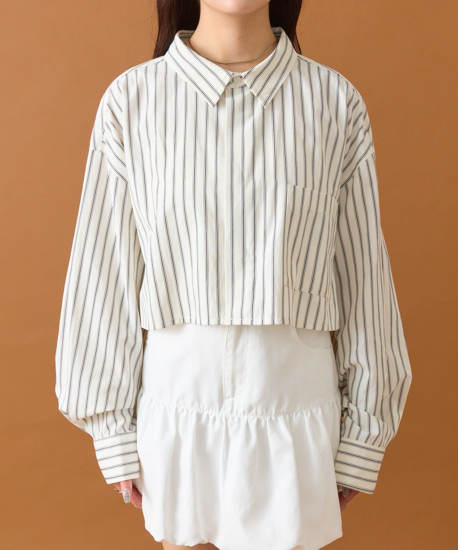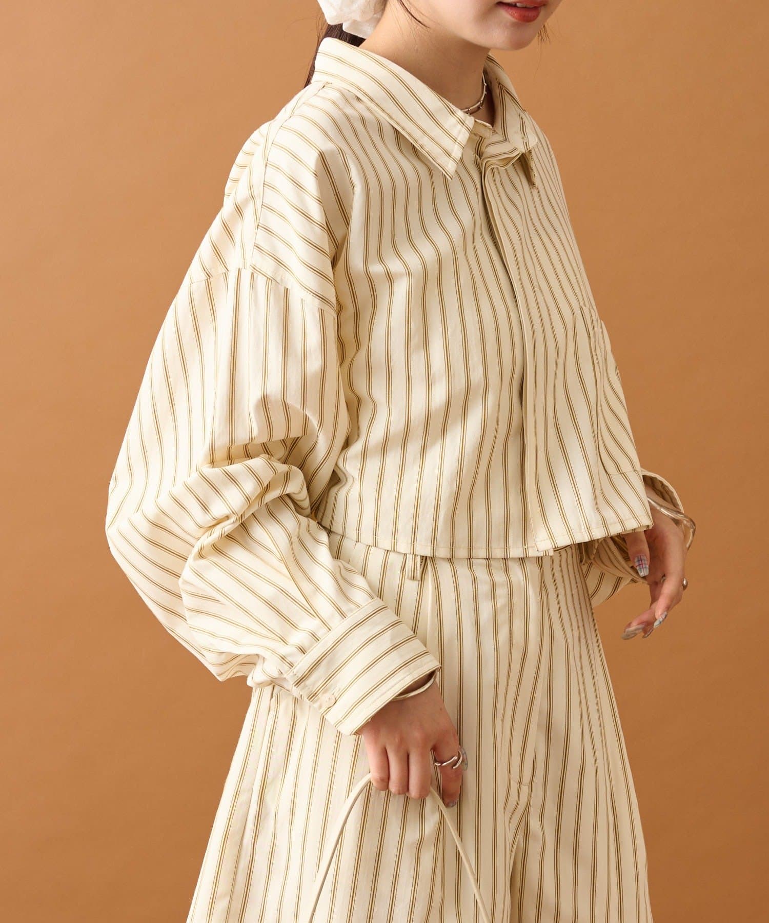 ショート丈なのでワイドめなボトムスやふんわりとしたバルーンデザインのアイテムと合わせると