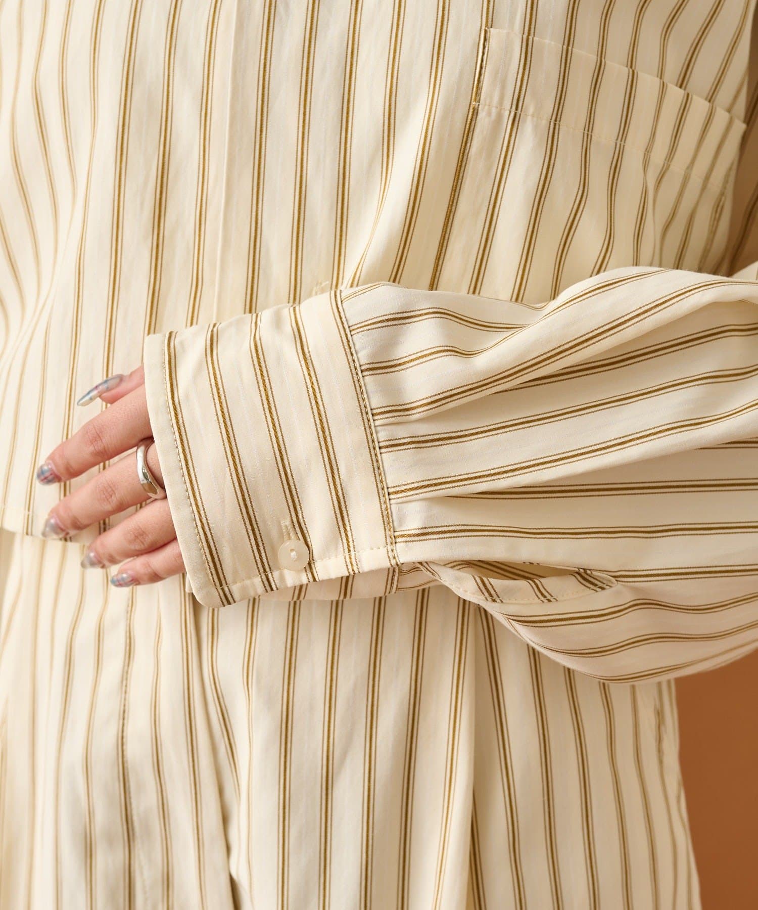 ・ゆったりとしたシルエットのストライプ柄のシャツでデイリー使いがしやすいアイテム。1枚で着映えするアイテムです!