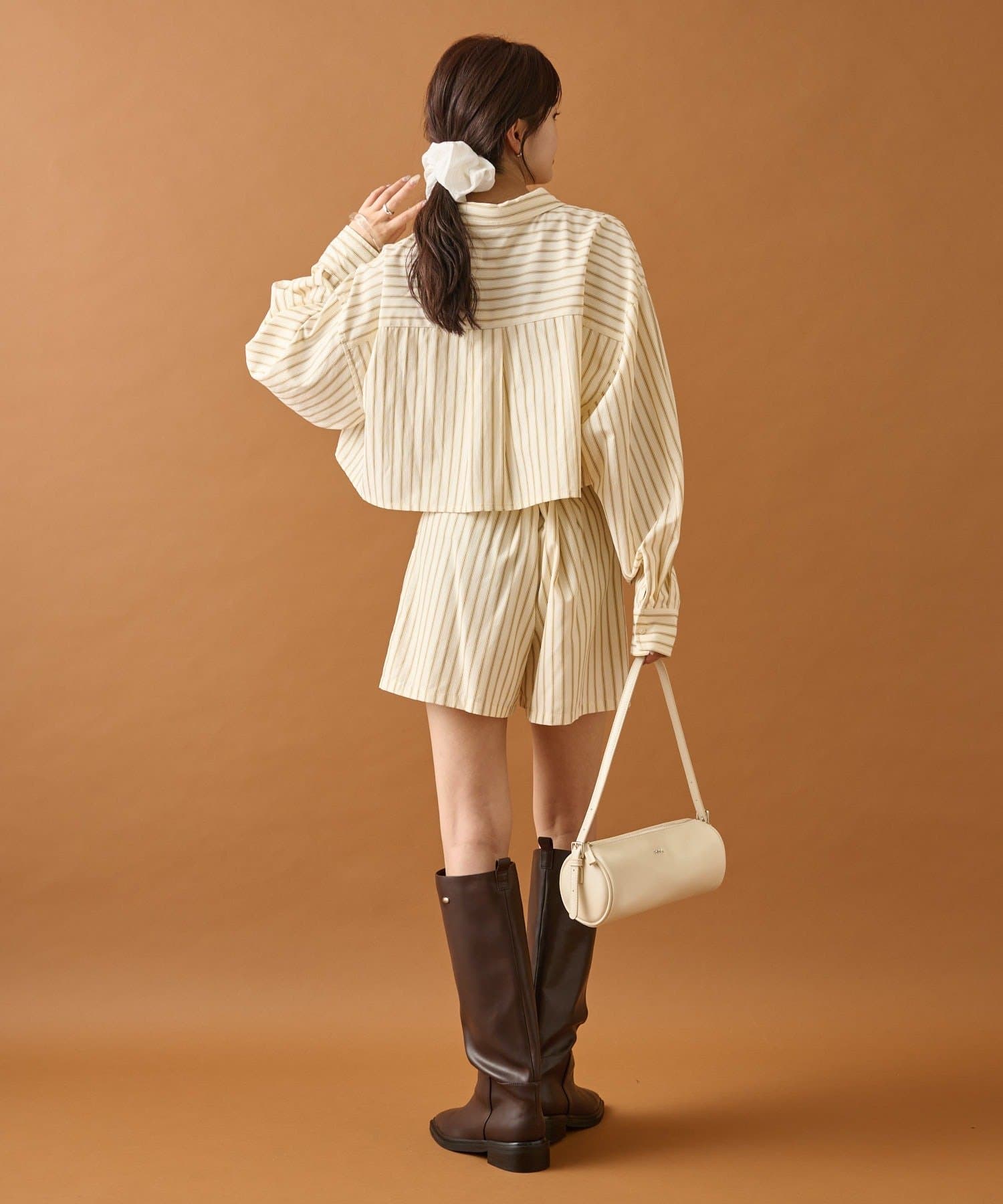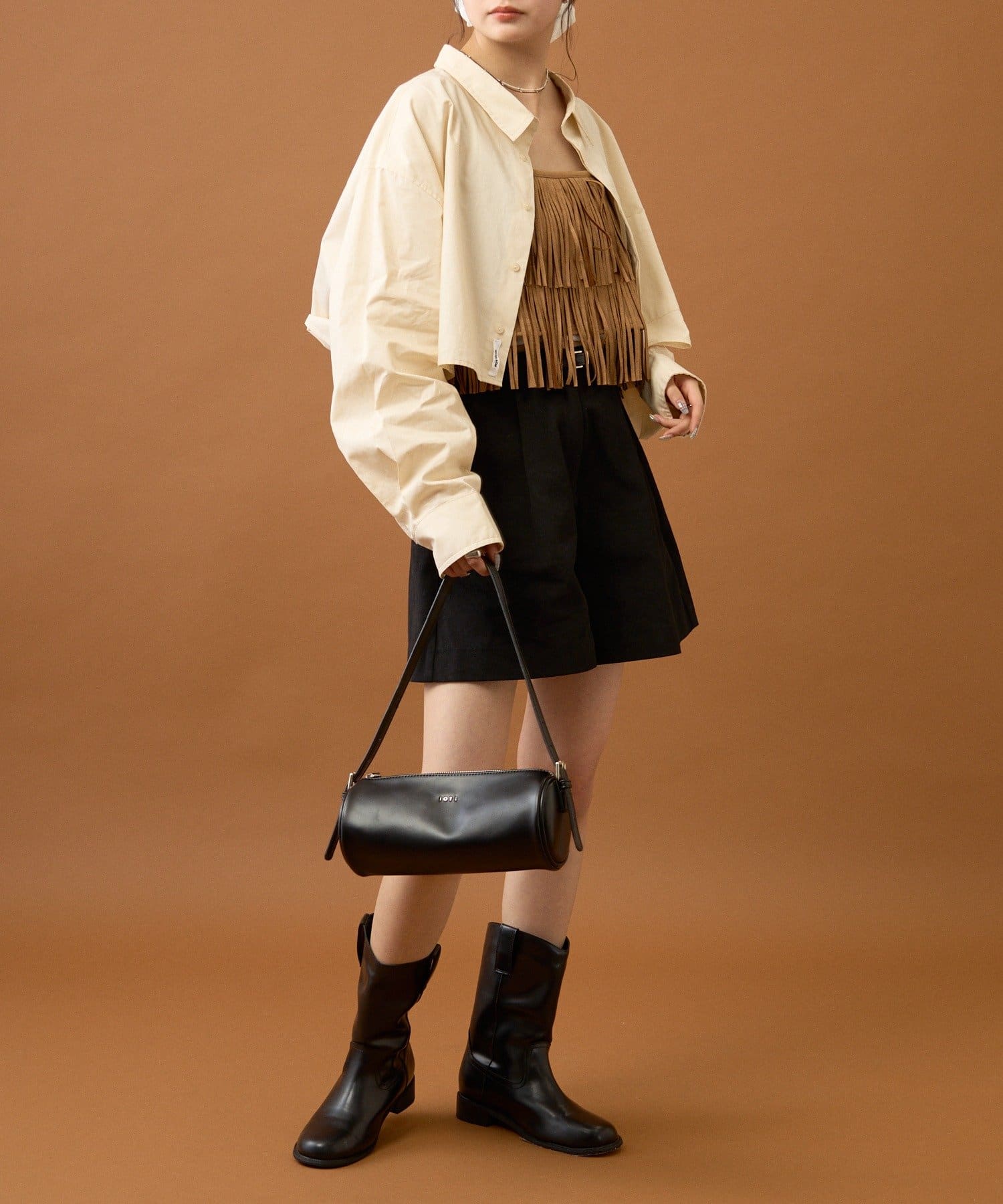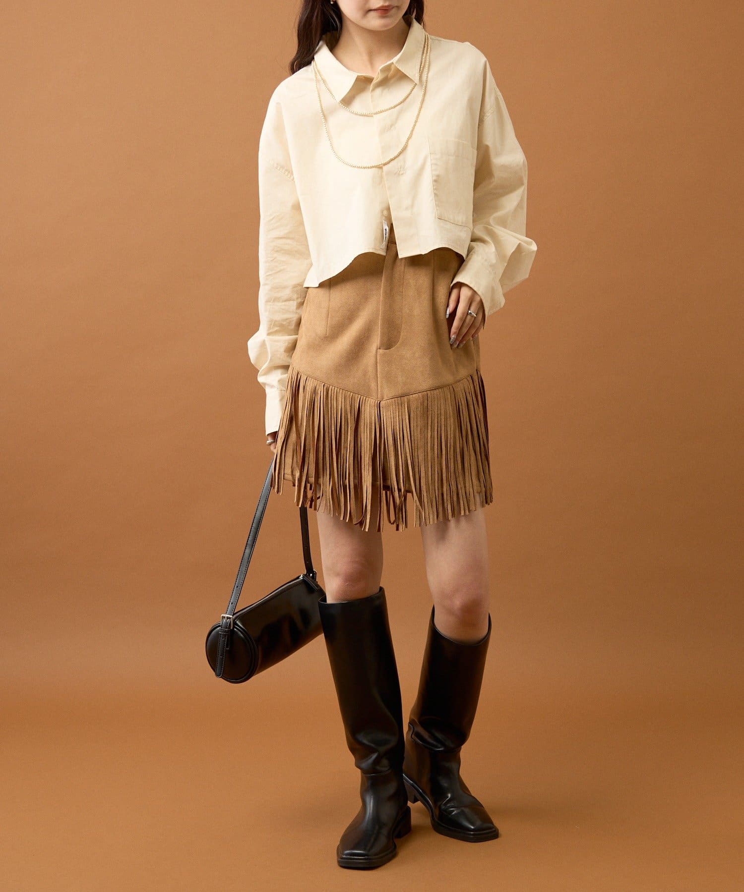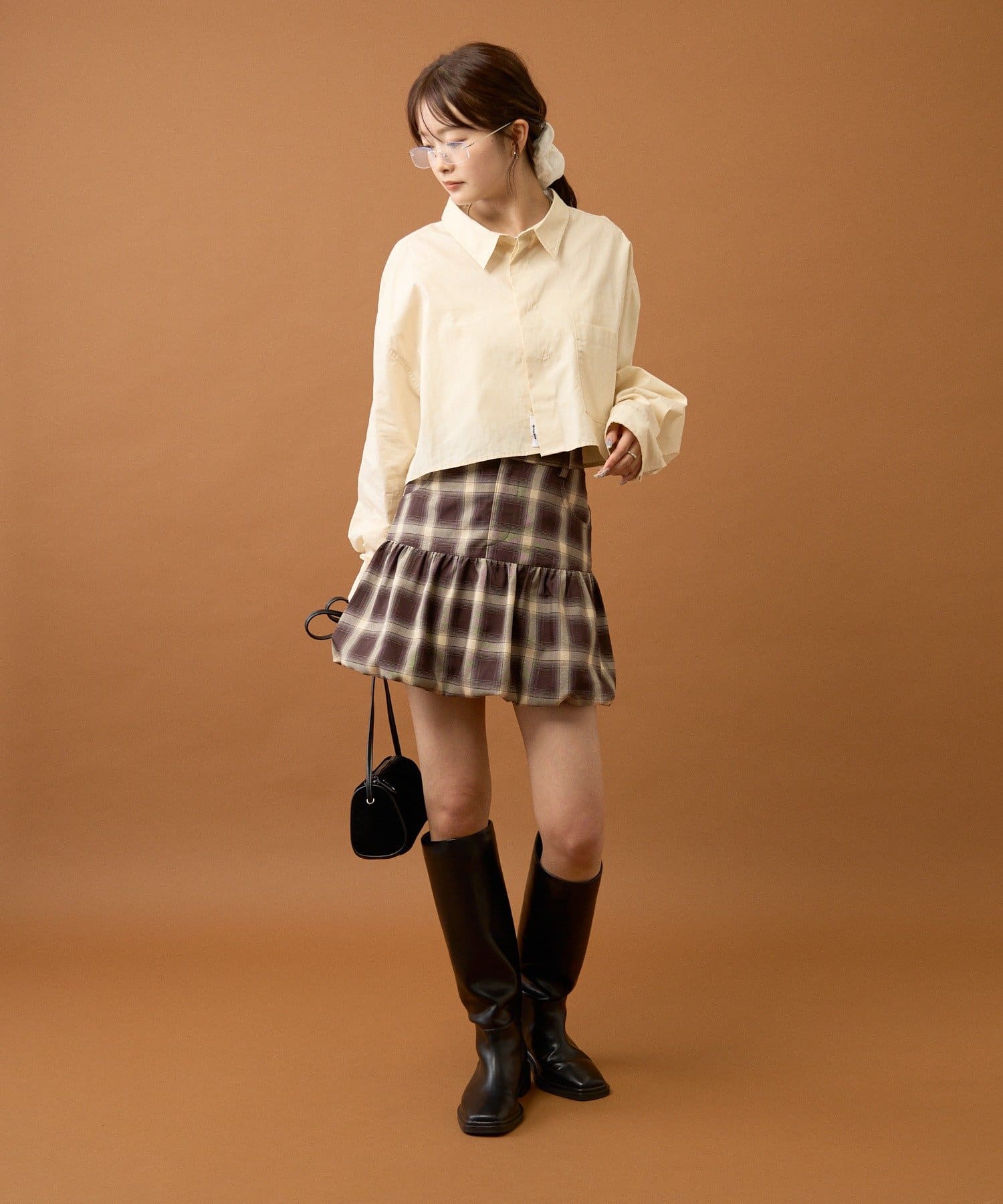 ・バルーンスカートやロングブーツと合わせて可愛らしくトレンド感のあるスタイリングに◎