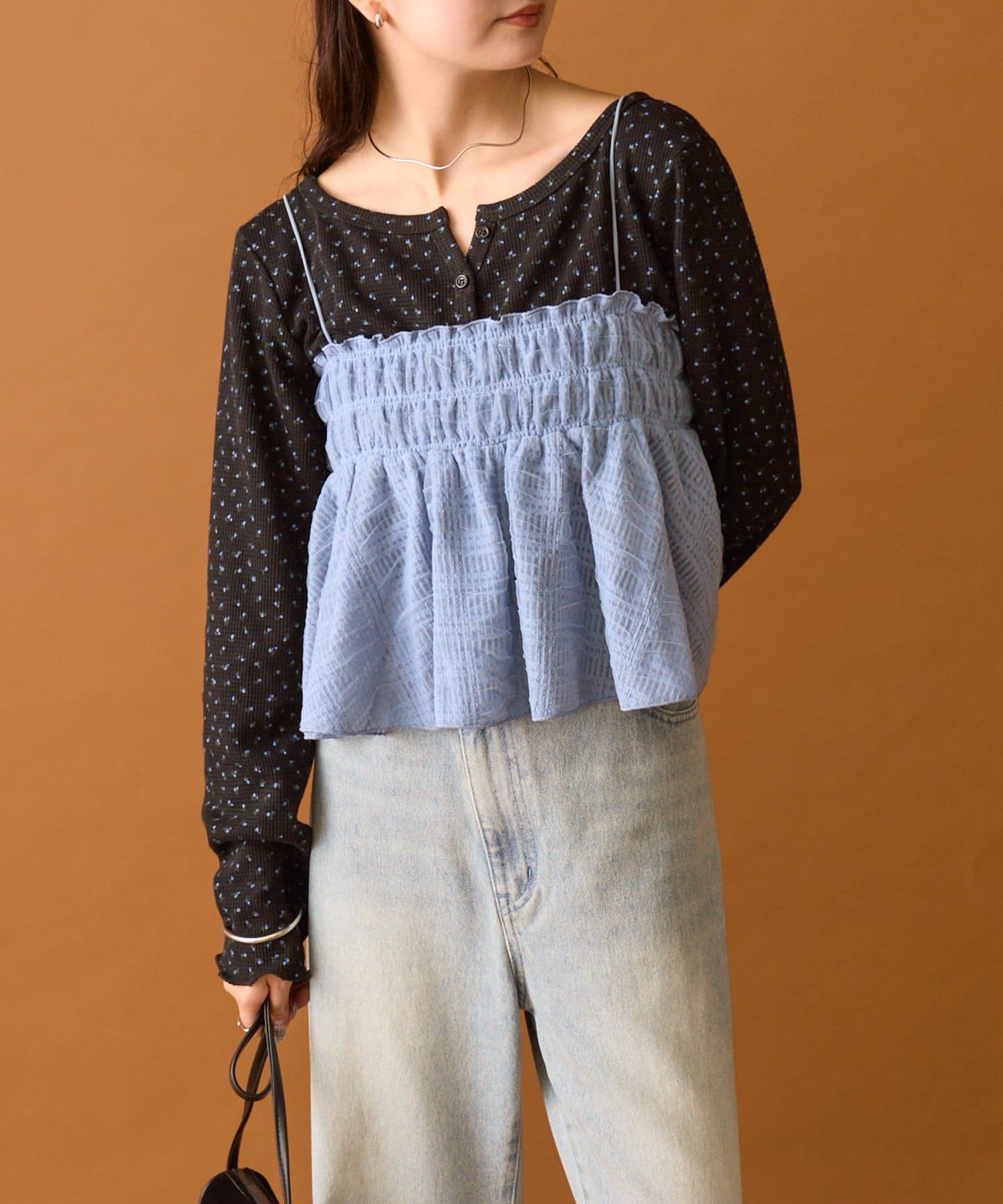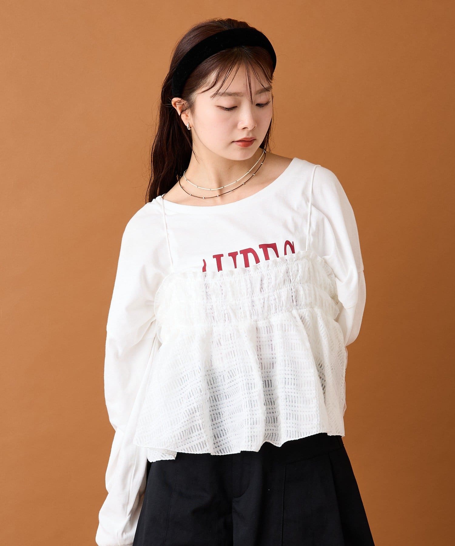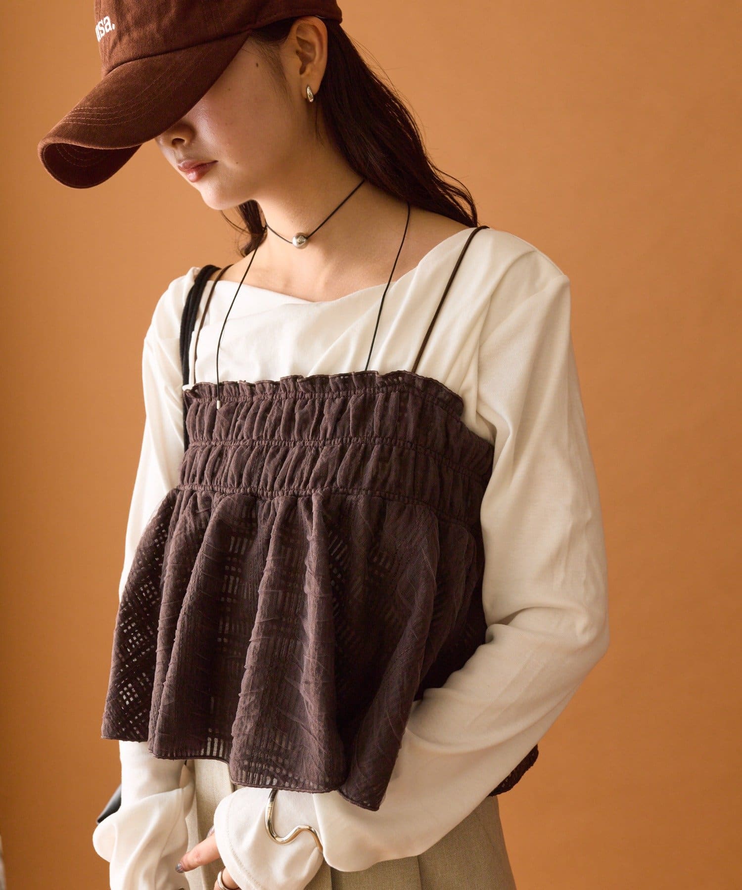 【4色展開/レイヤードスタイル】チュールチェックビスチェ