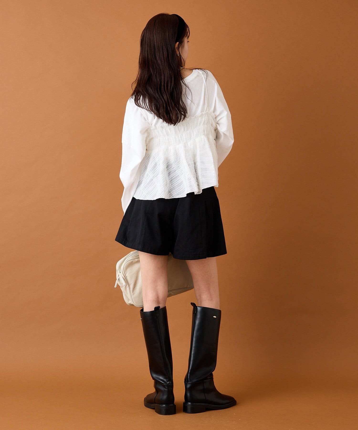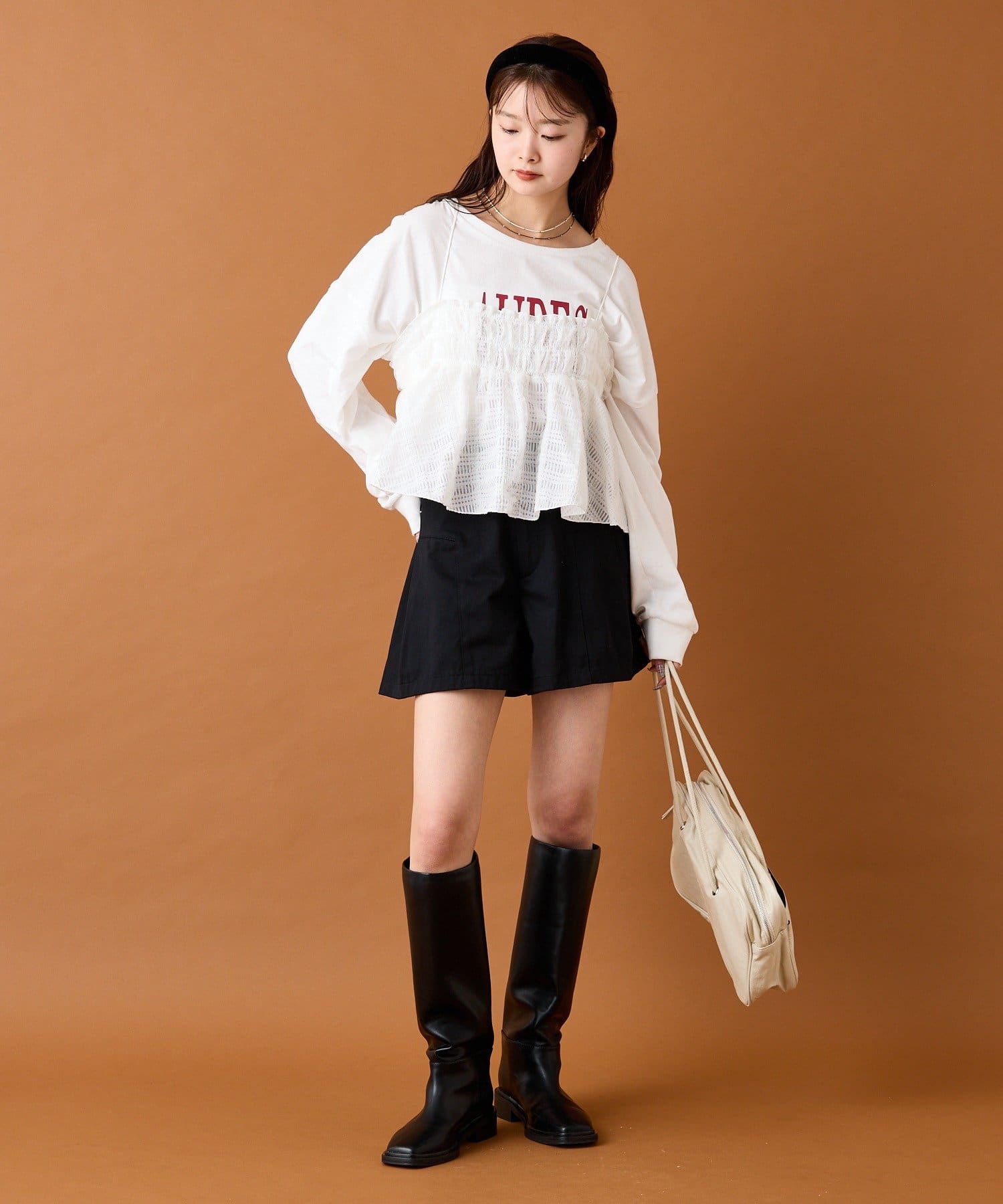 ・ミニ丈のボトムスと合わせると可愛らしいフェミニンなコーデが完成します♡