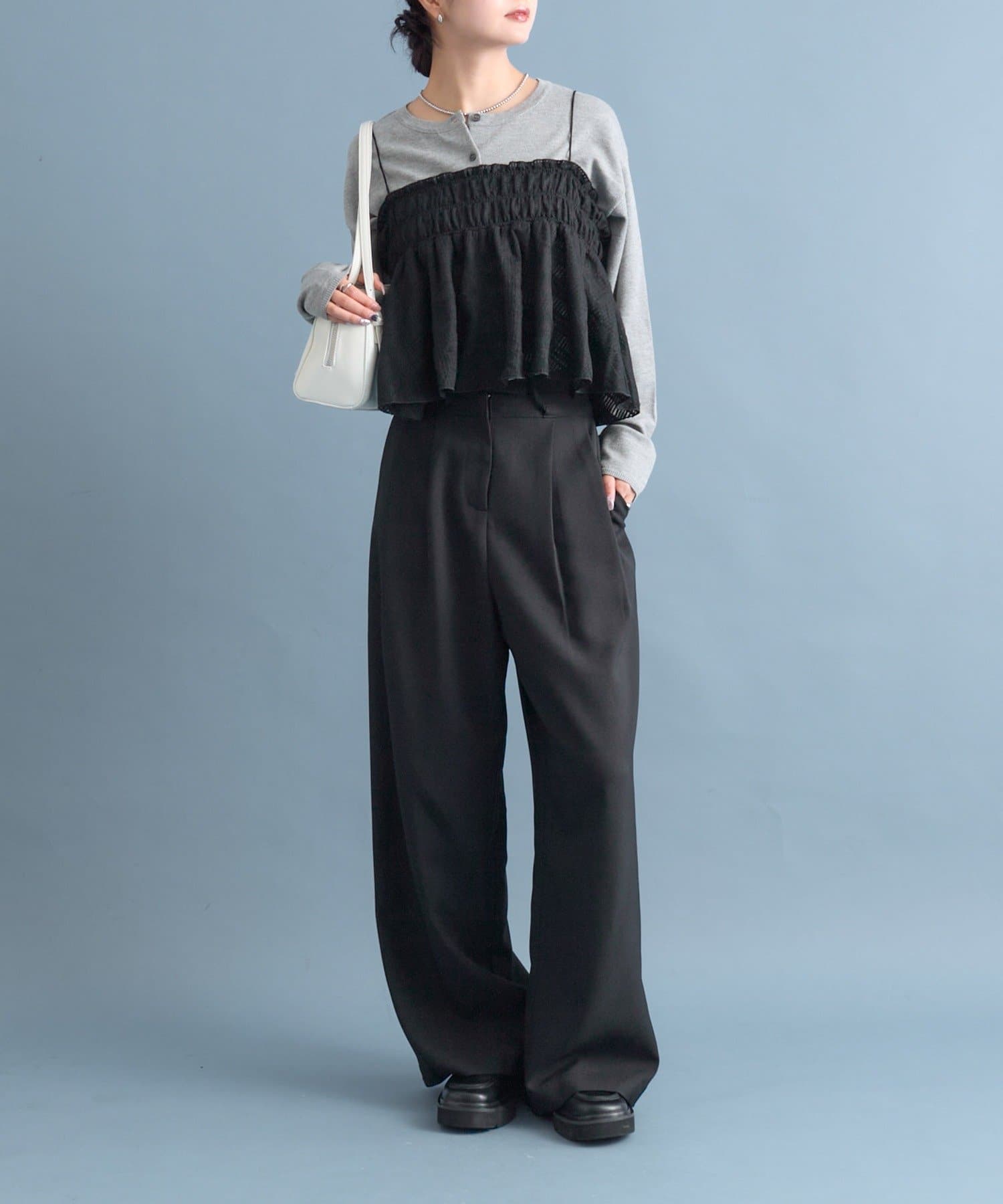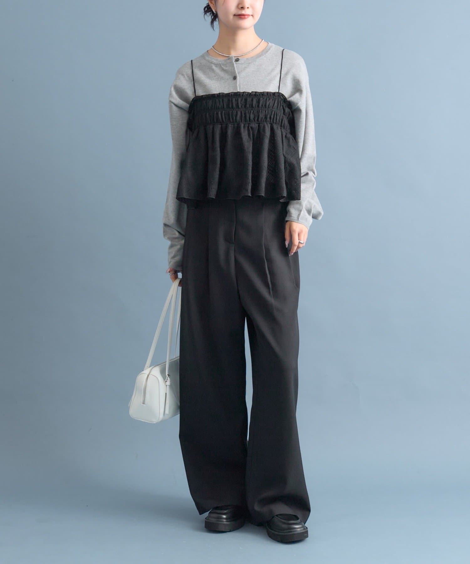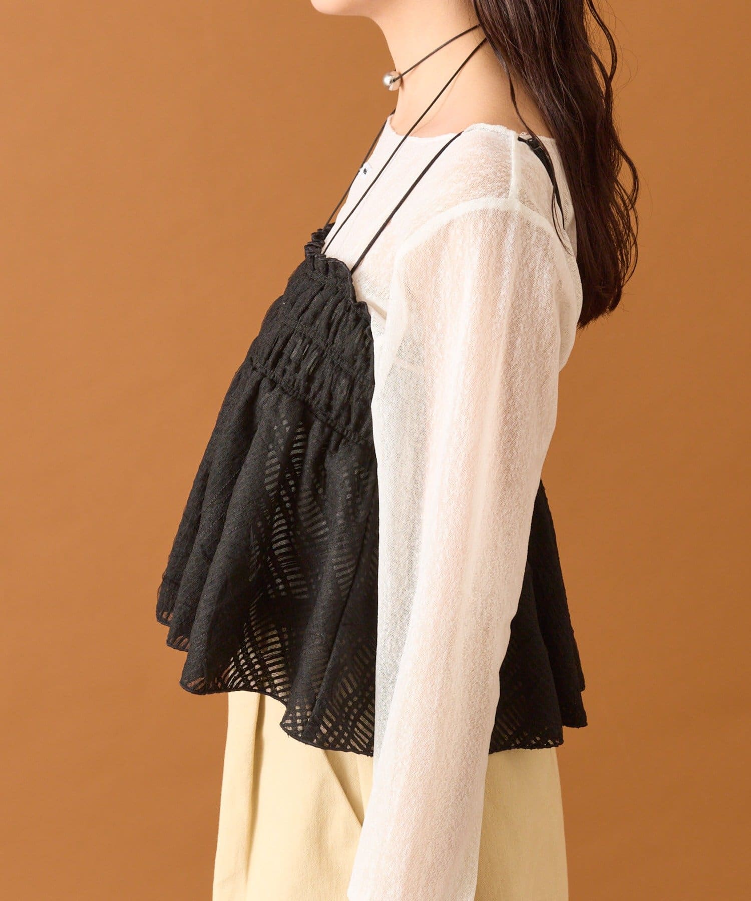 ・レースとチュールの2層素材になっており立体感のある素材感を使用したアイテム。