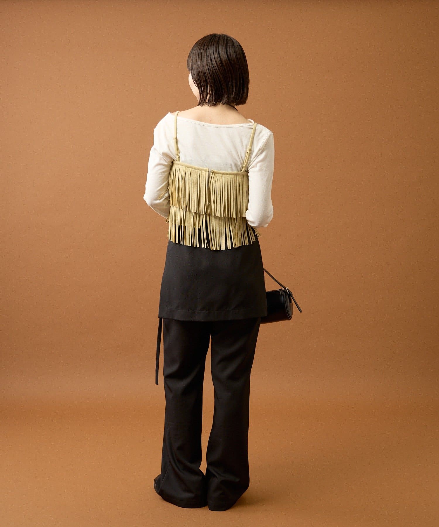 ・たっぷりと施されたフリンジが目を惹くフェイクスウェードフリンジビスチェです。