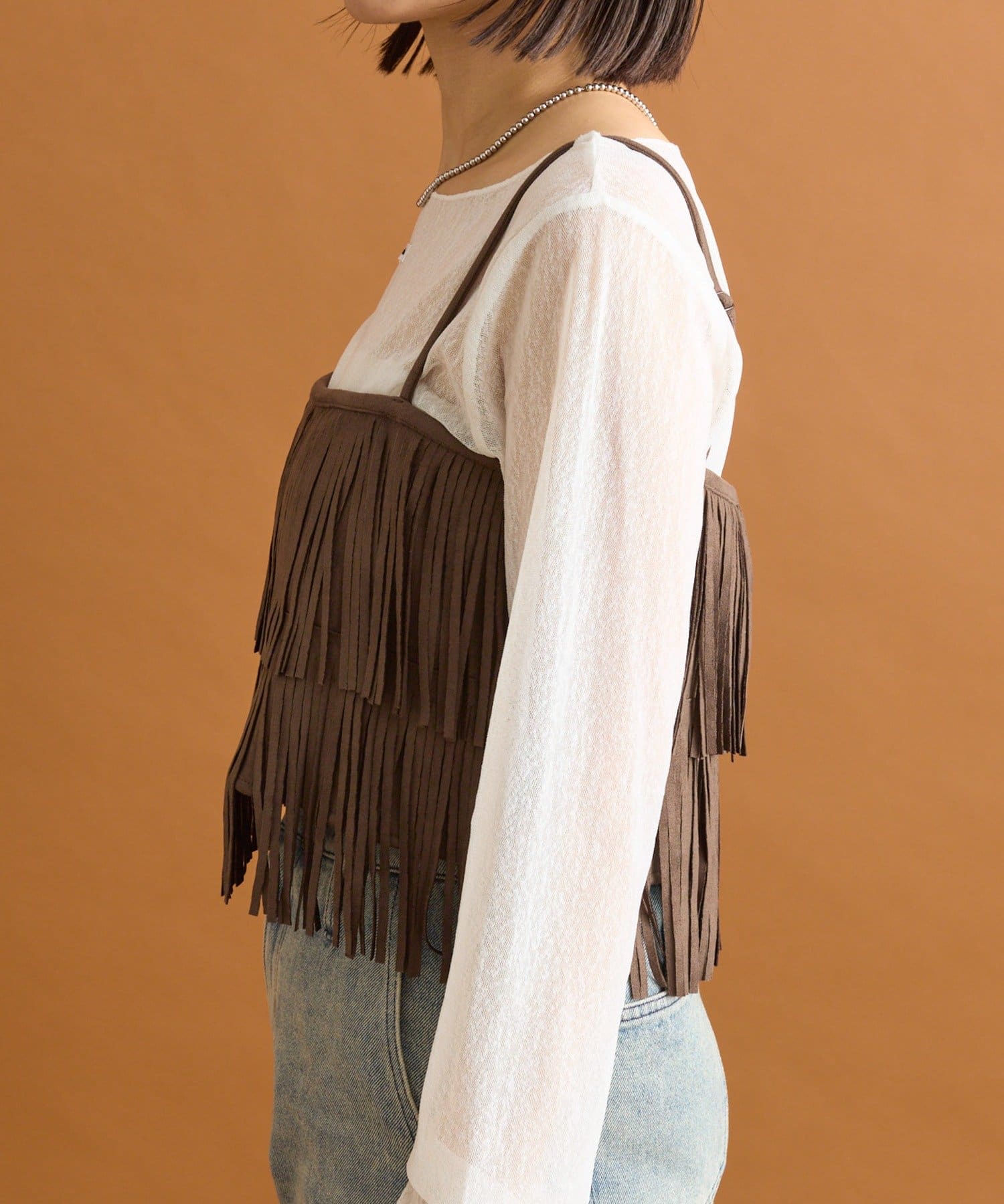 フリンジが目を惹くフェイクスウェードフリンジビスチェが登場!
