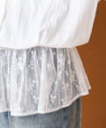 ・レースで広がりのあるデザインなので、スリムめなデニムやタイトめなスカートがおすすめ。