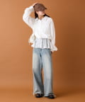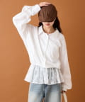 ・シャツとレースの異なる素材を1つに合わせたアイテム。他にはない特別感のあるデザインです◎