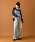 ・今流行りのスウェットパンツも相性が抜群。可愛らしいトップスとの甘辛ミックスコーデが叶います。