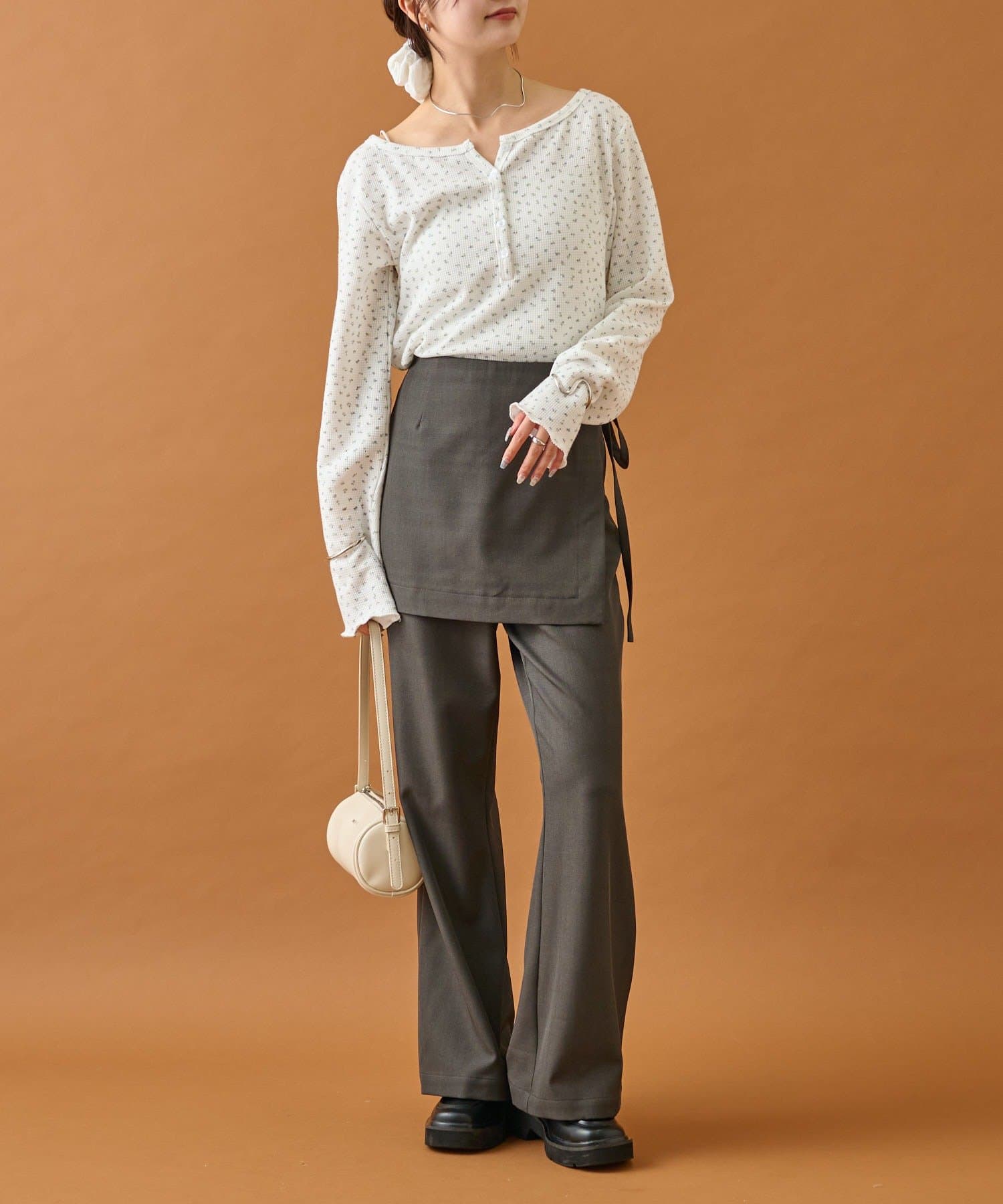 ・細身シルエットで可愛らしさの中にすっきりとした印象に。