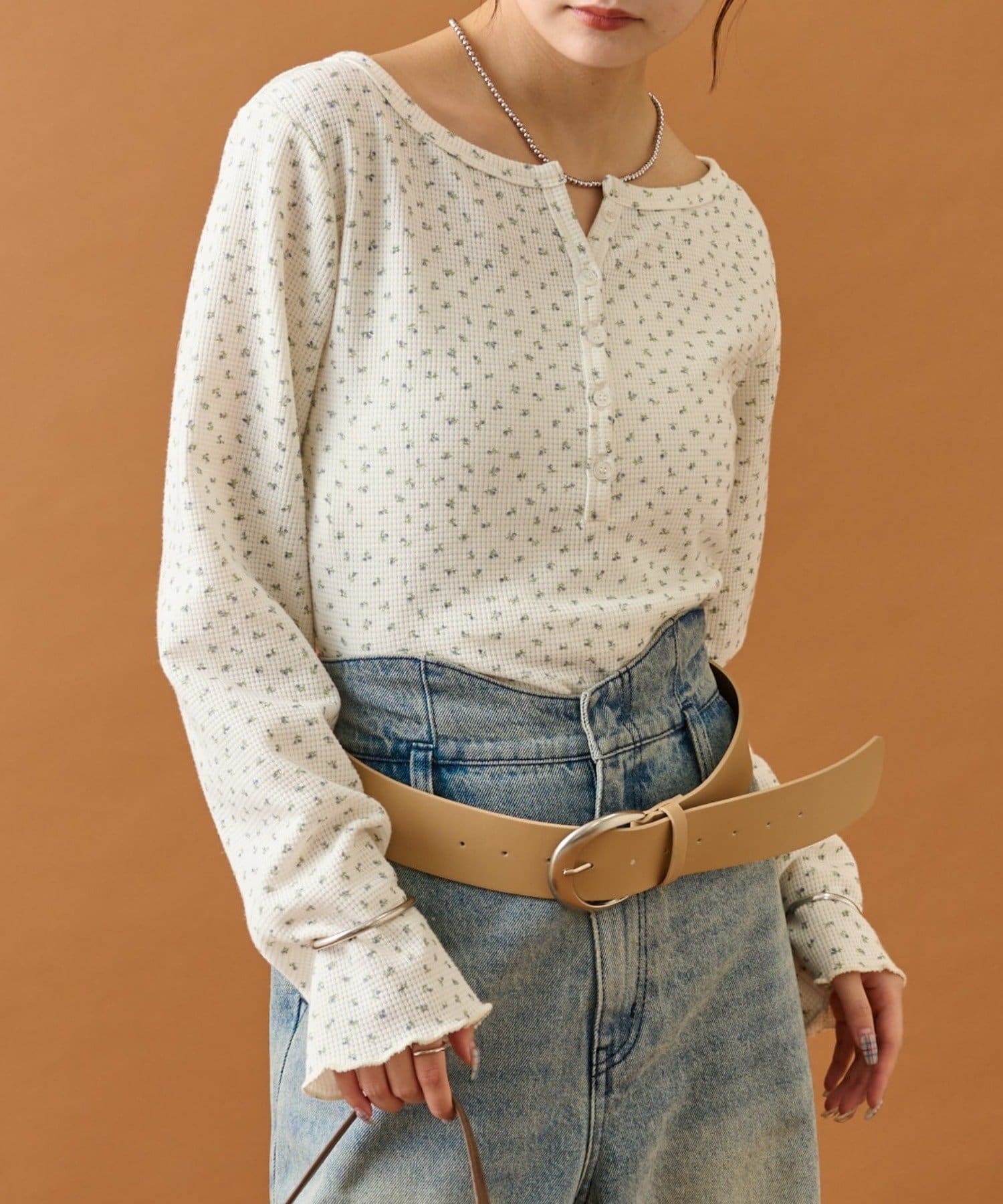 ・全面の小花柄のプリントがフェミニンで可愛らしいトップス。ホルターデザインも特徴的で肩部分のさりげない肌見せも叶います♡