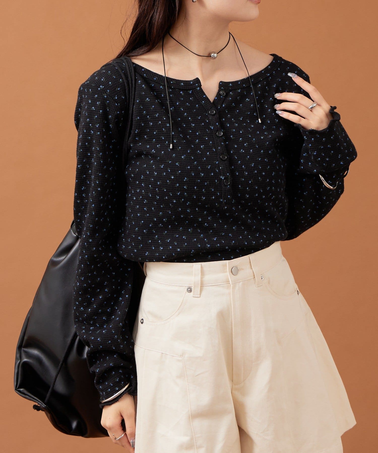 ・首元がしっかり開いているヘンリーネックなので、骨ストさんもしっかり似合うロンTです!
