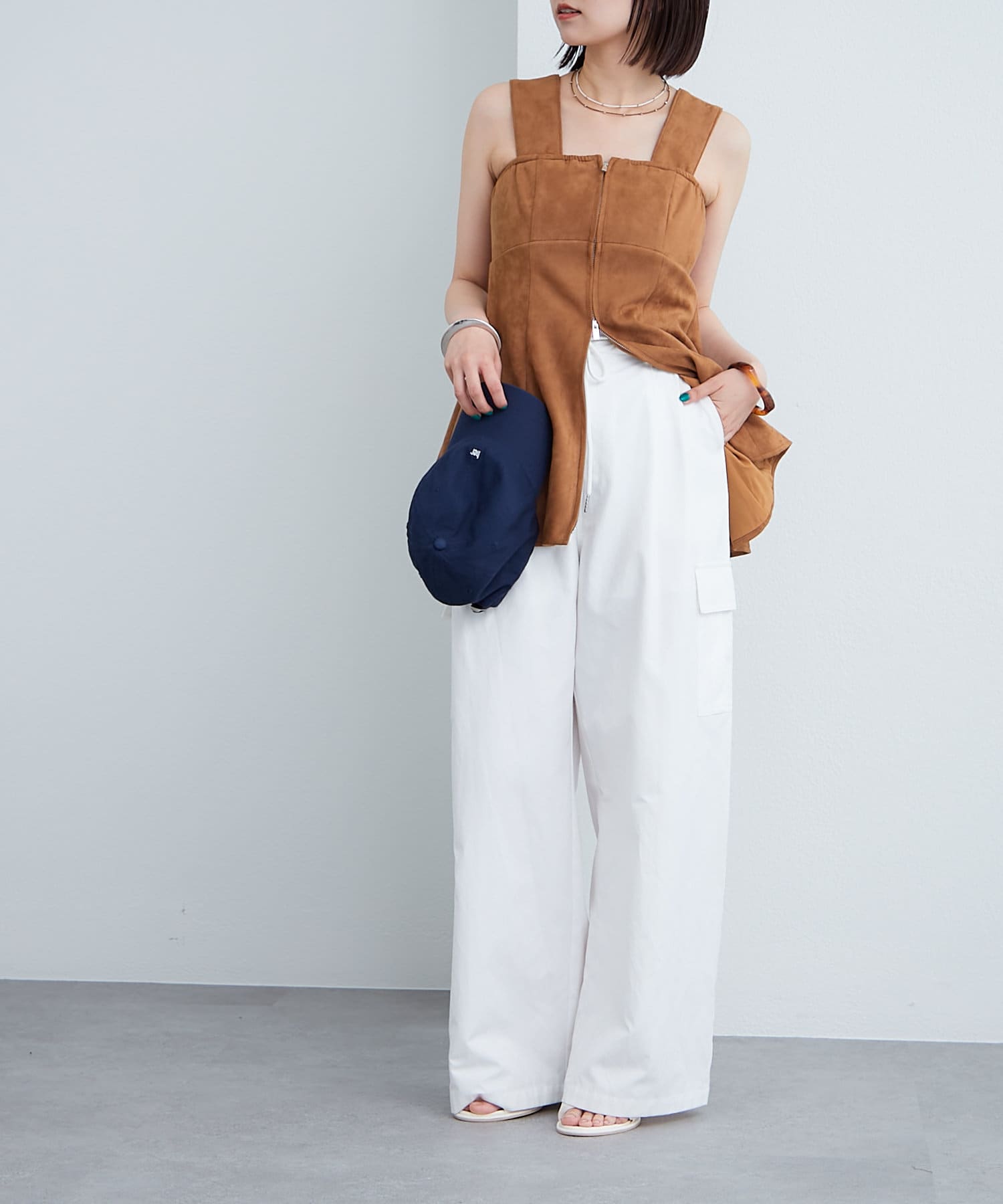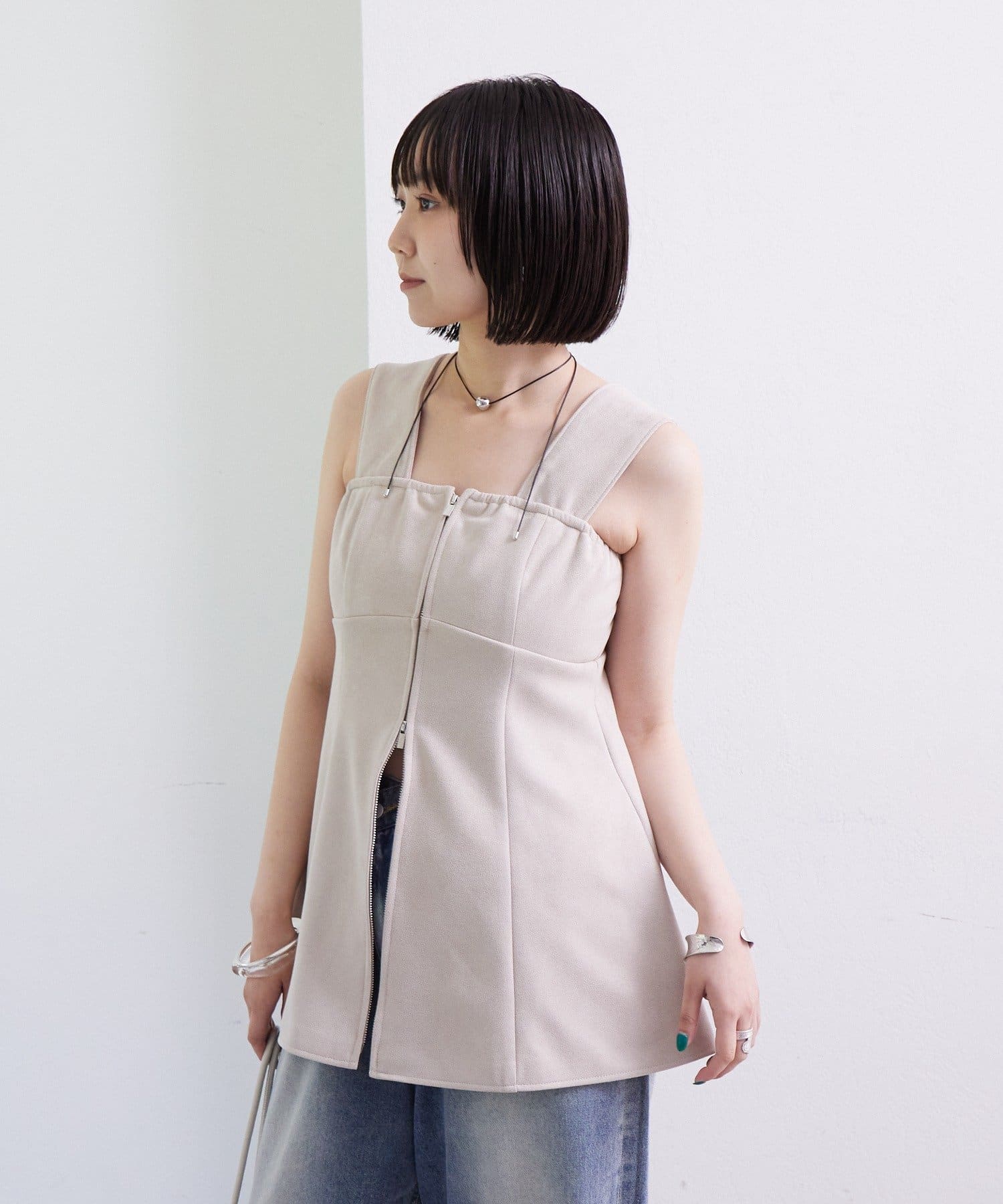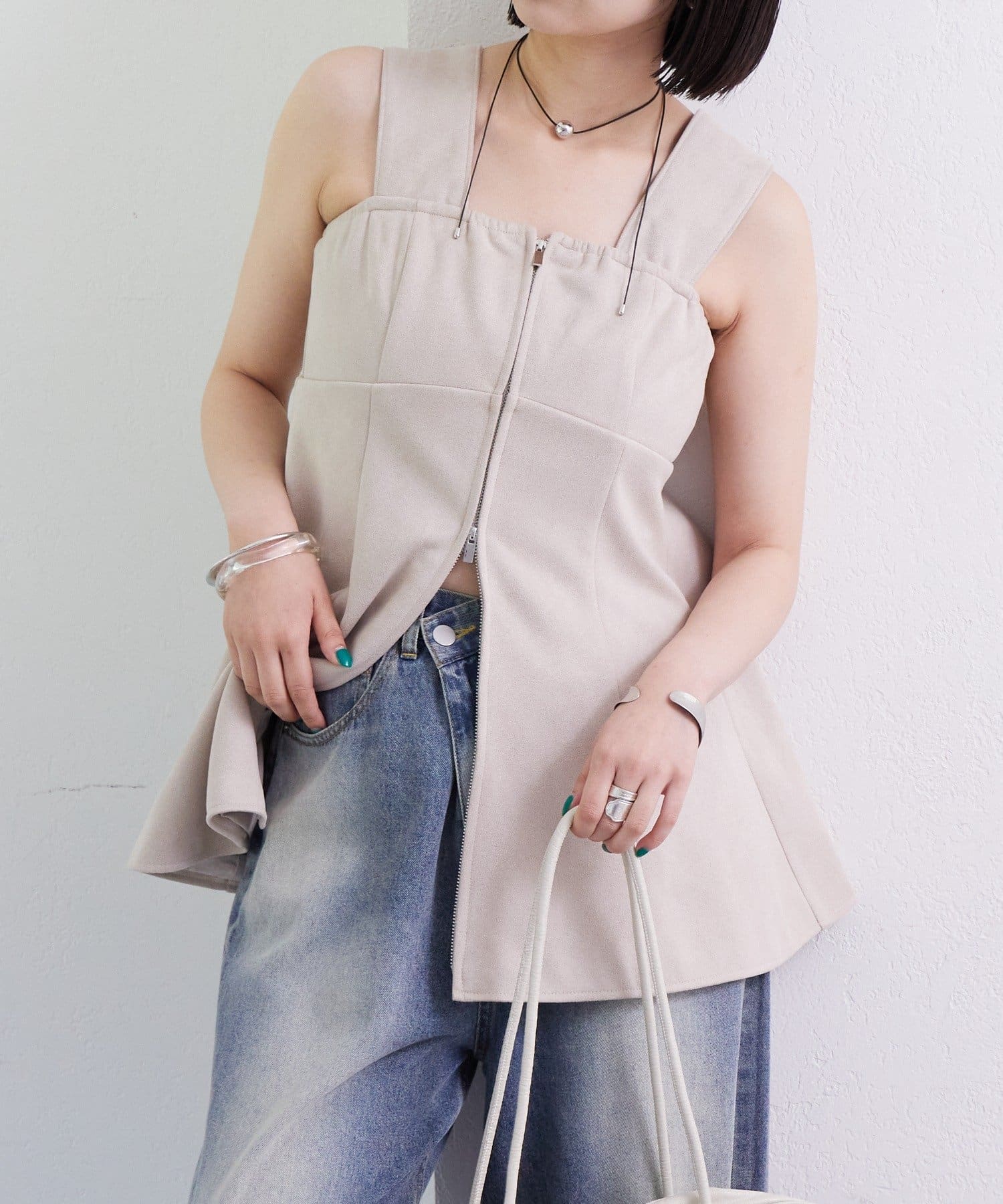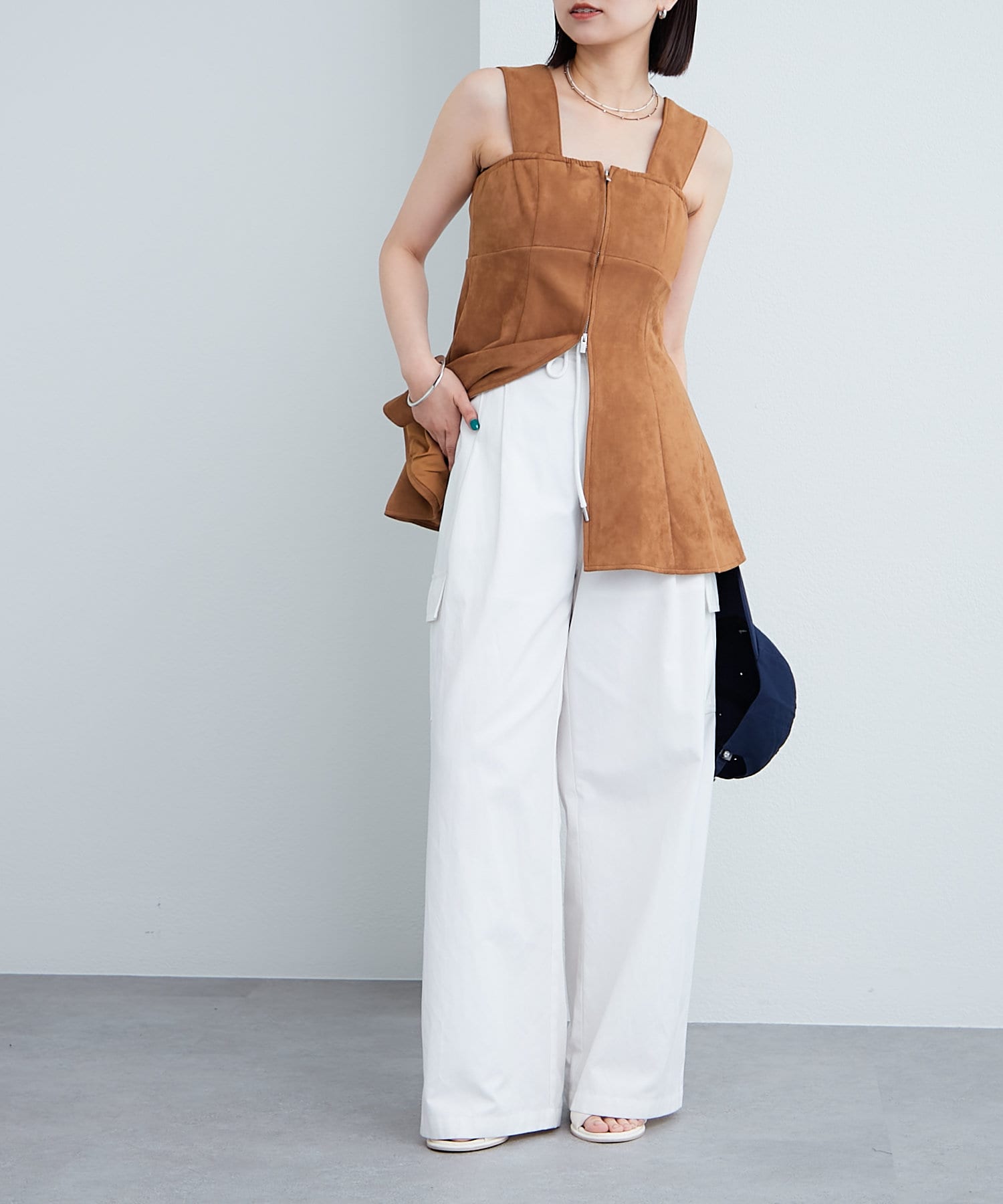 ・スウェード素材でトレンド感のあるビスチェ。
