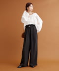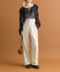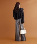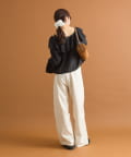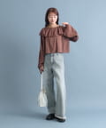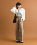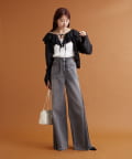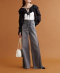 ・デニムと合わせでカジュアルダウンさせて甘辛コーデに。スラックスとの合わせて大人っぽい雰囲気にもチェンジできます◎