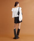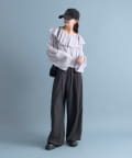 ・ショート丈のボトムスと合わせて程よく抜け感を出したコーディネートも。