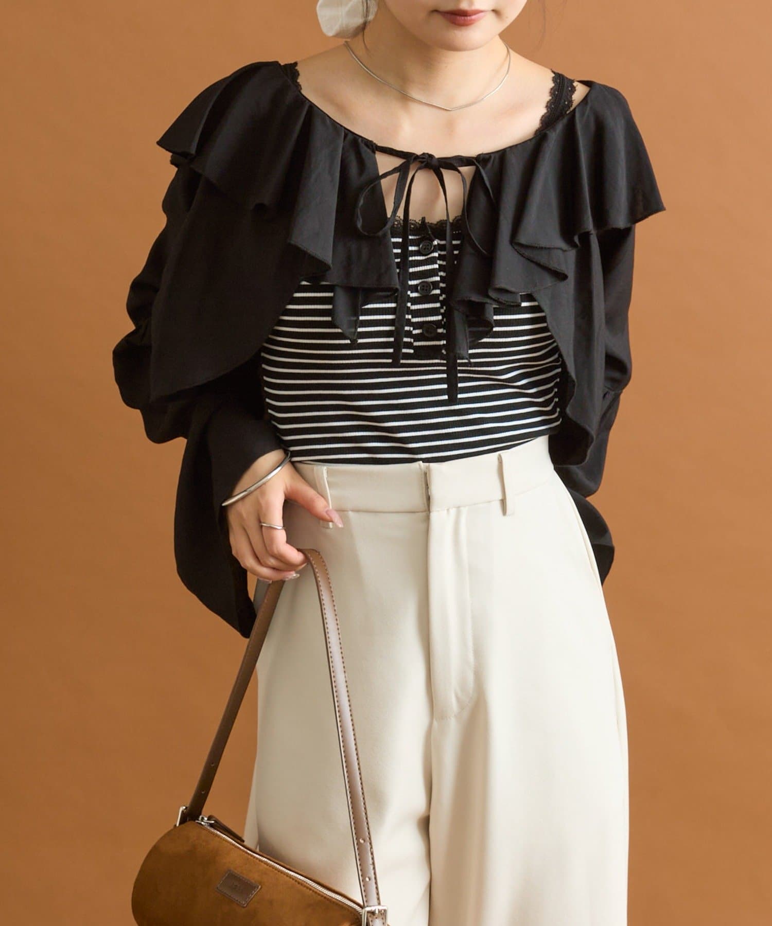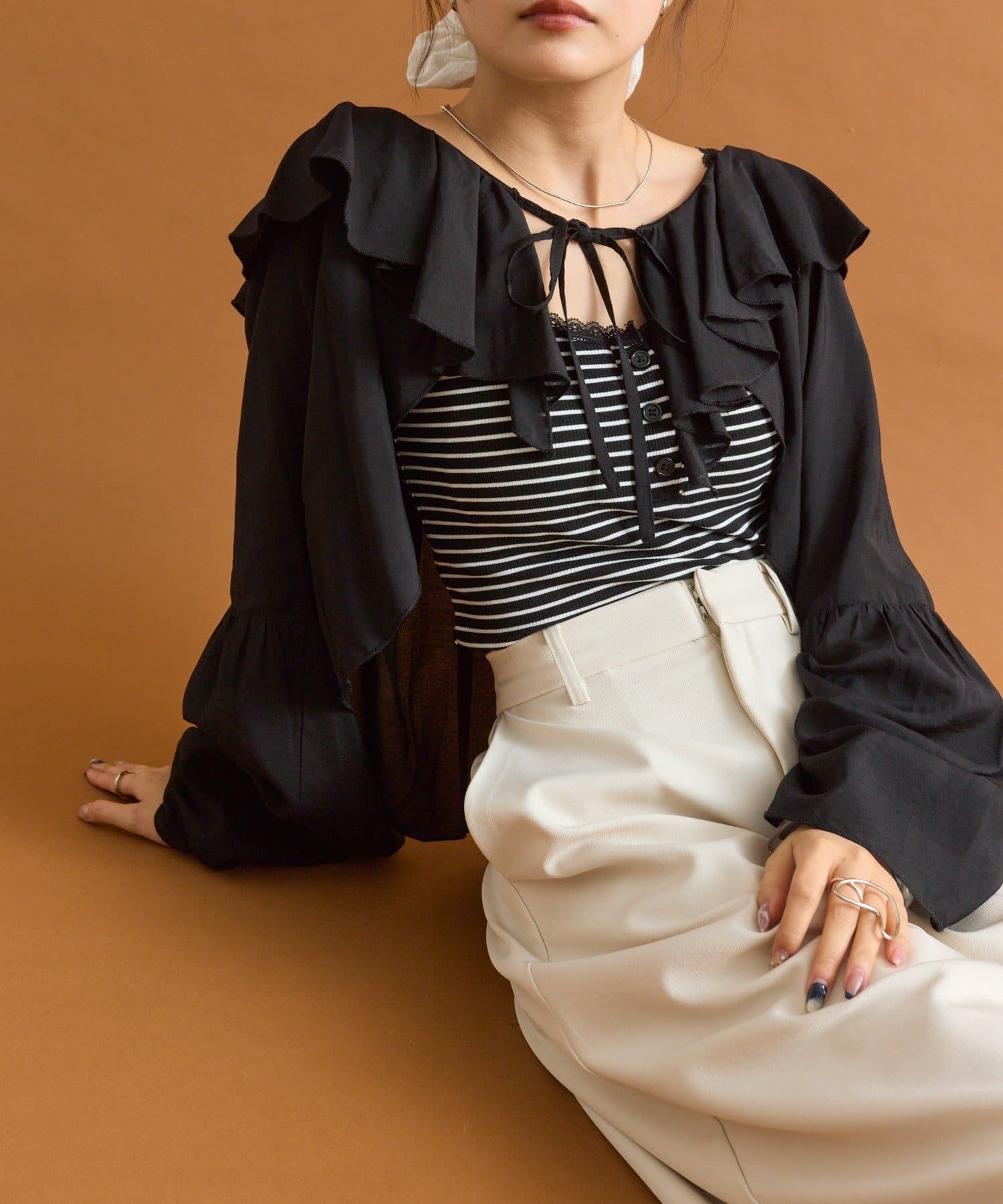 存在感のあるフリルがコーディネートを華やかにしてくれます!
