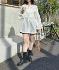 ・ミニボトム合わせでミニワンピ風にも♡甘すぎずヘルシーなスタイリングに◎