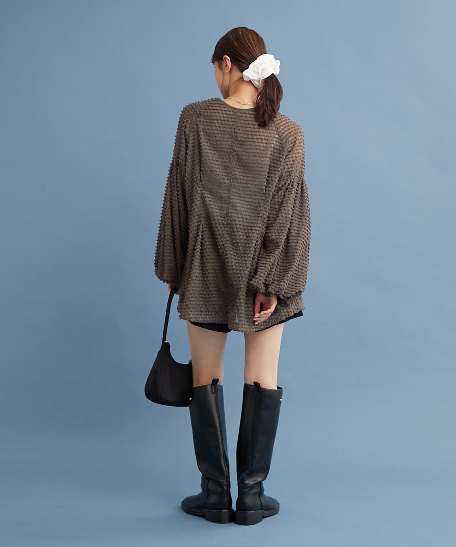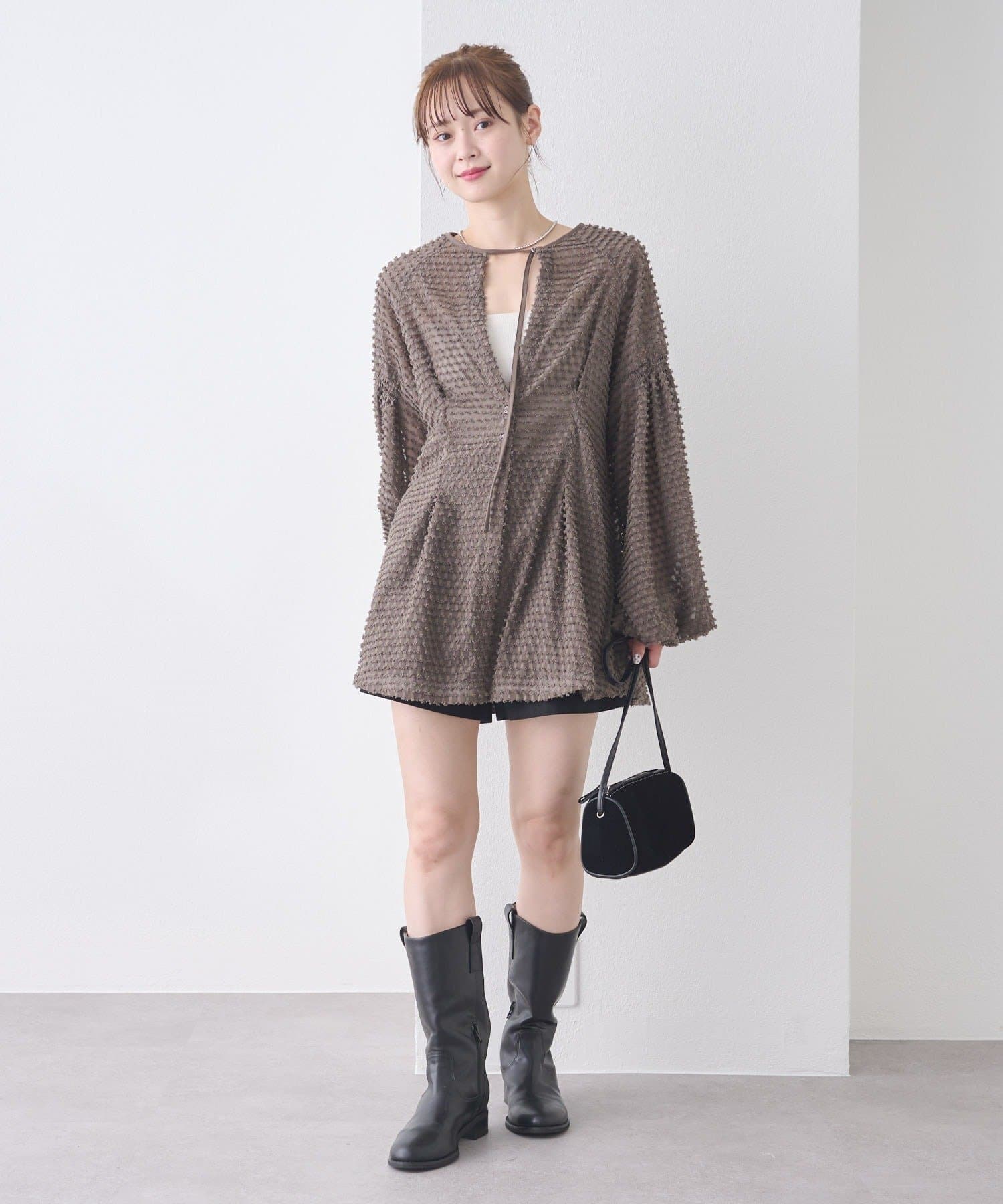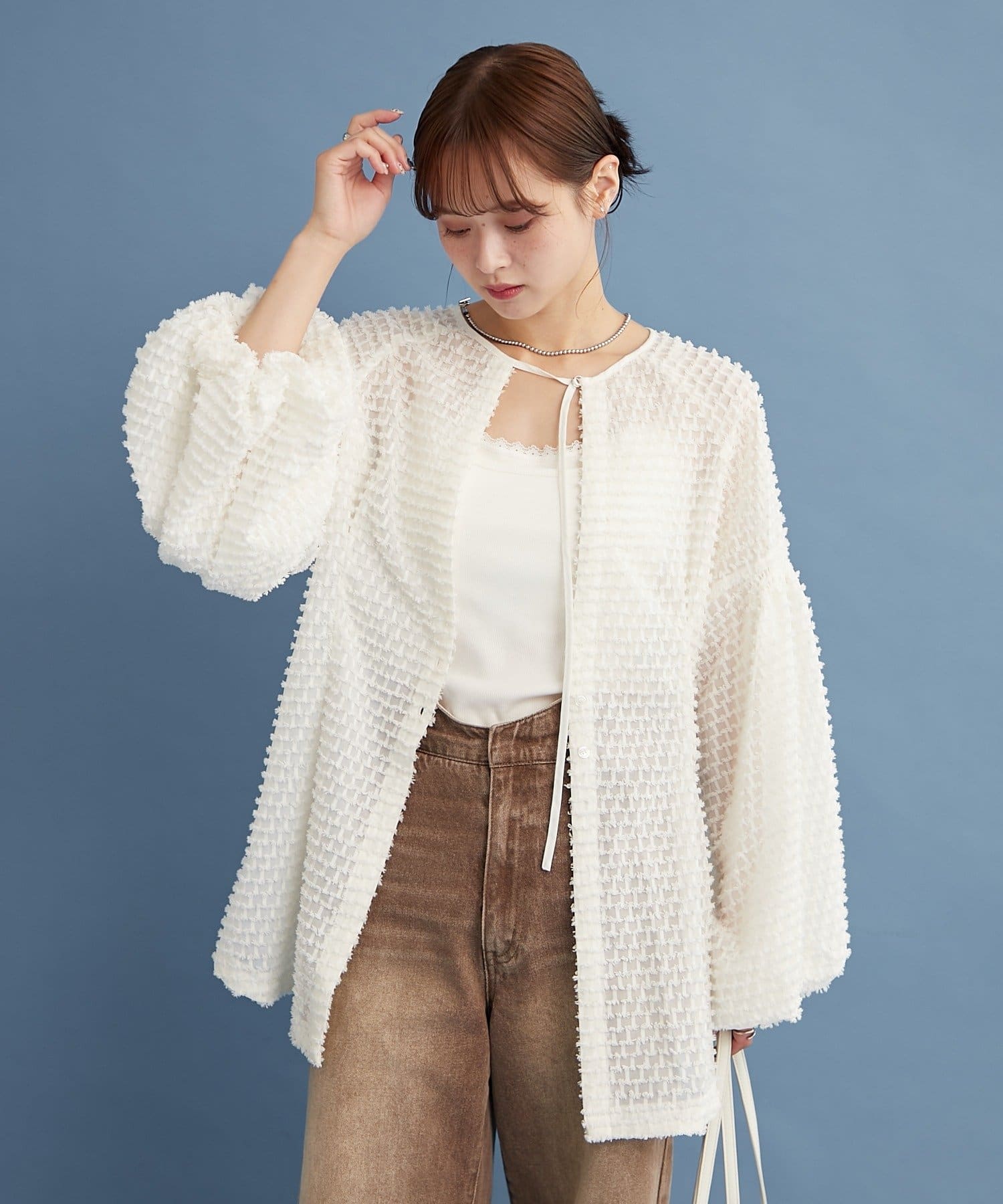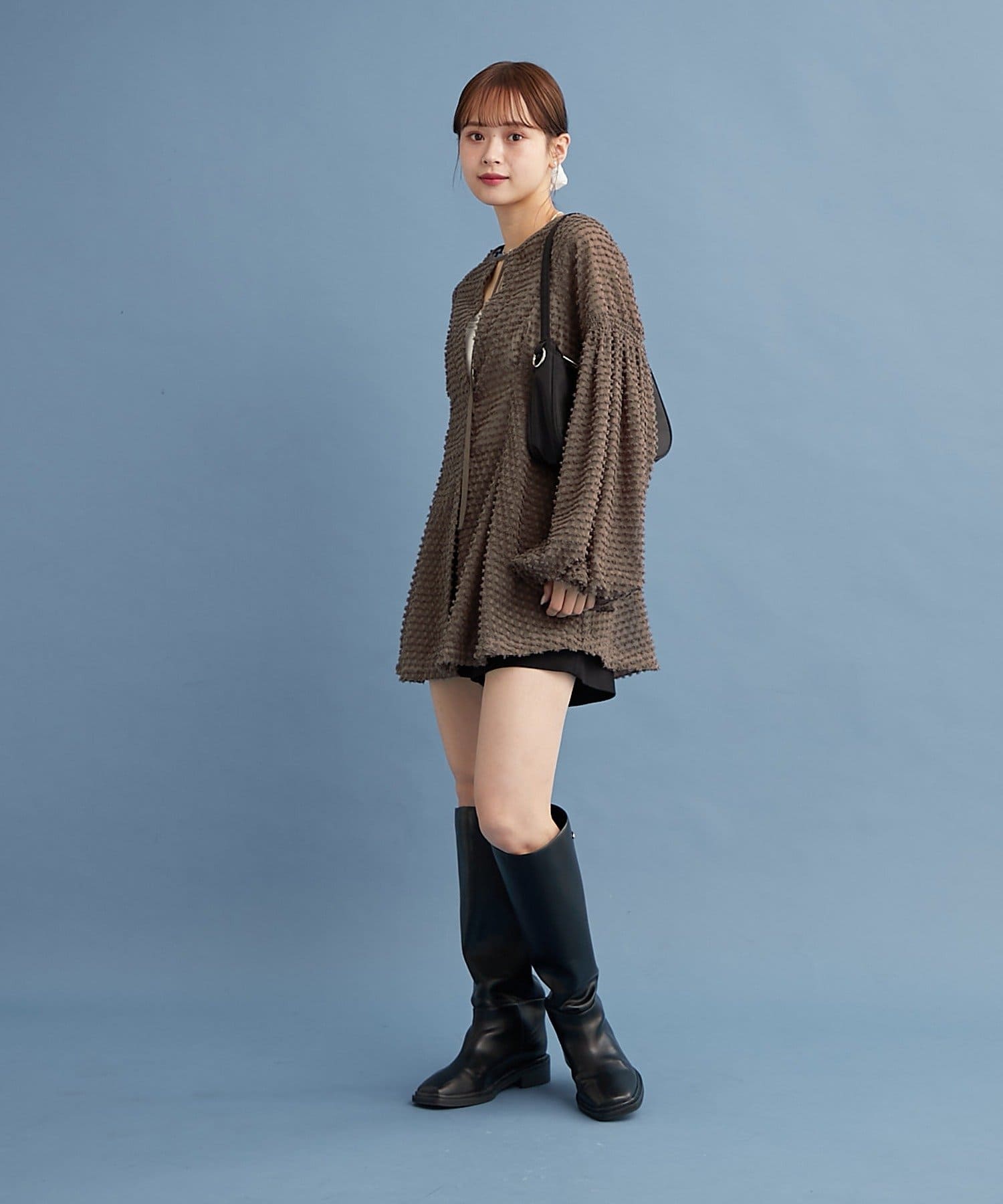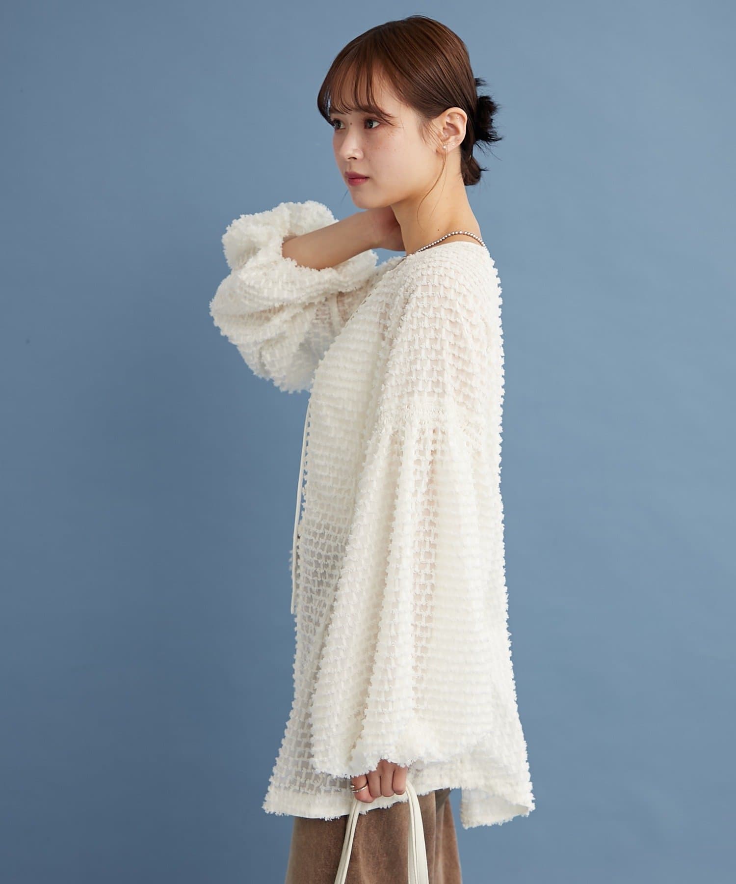 ・表面感のあるフリンジとたぽっと程よいボリューム感のあるお袖が女性らしい柔らかな印象に◎