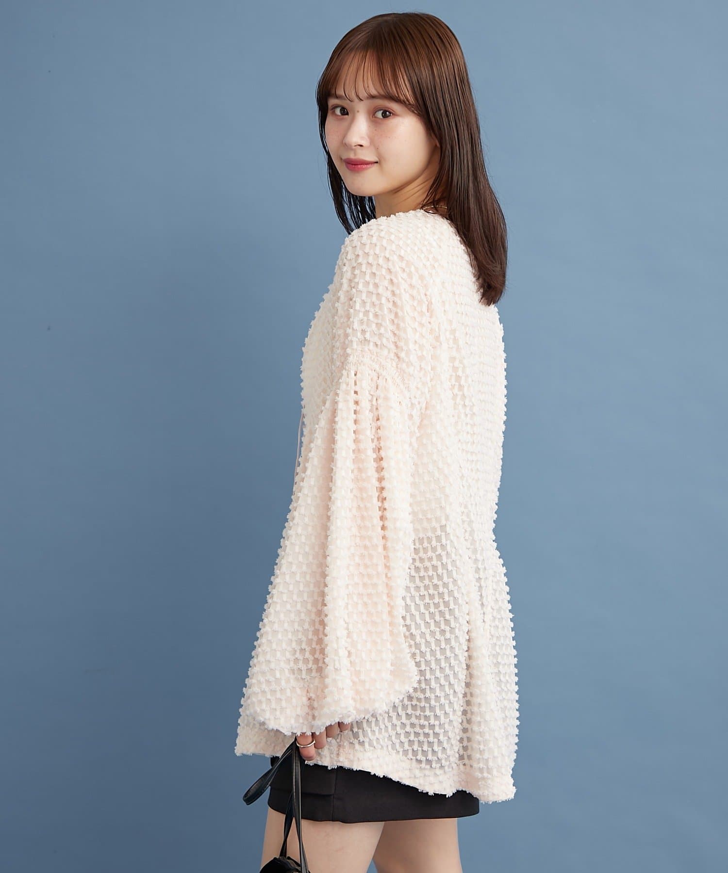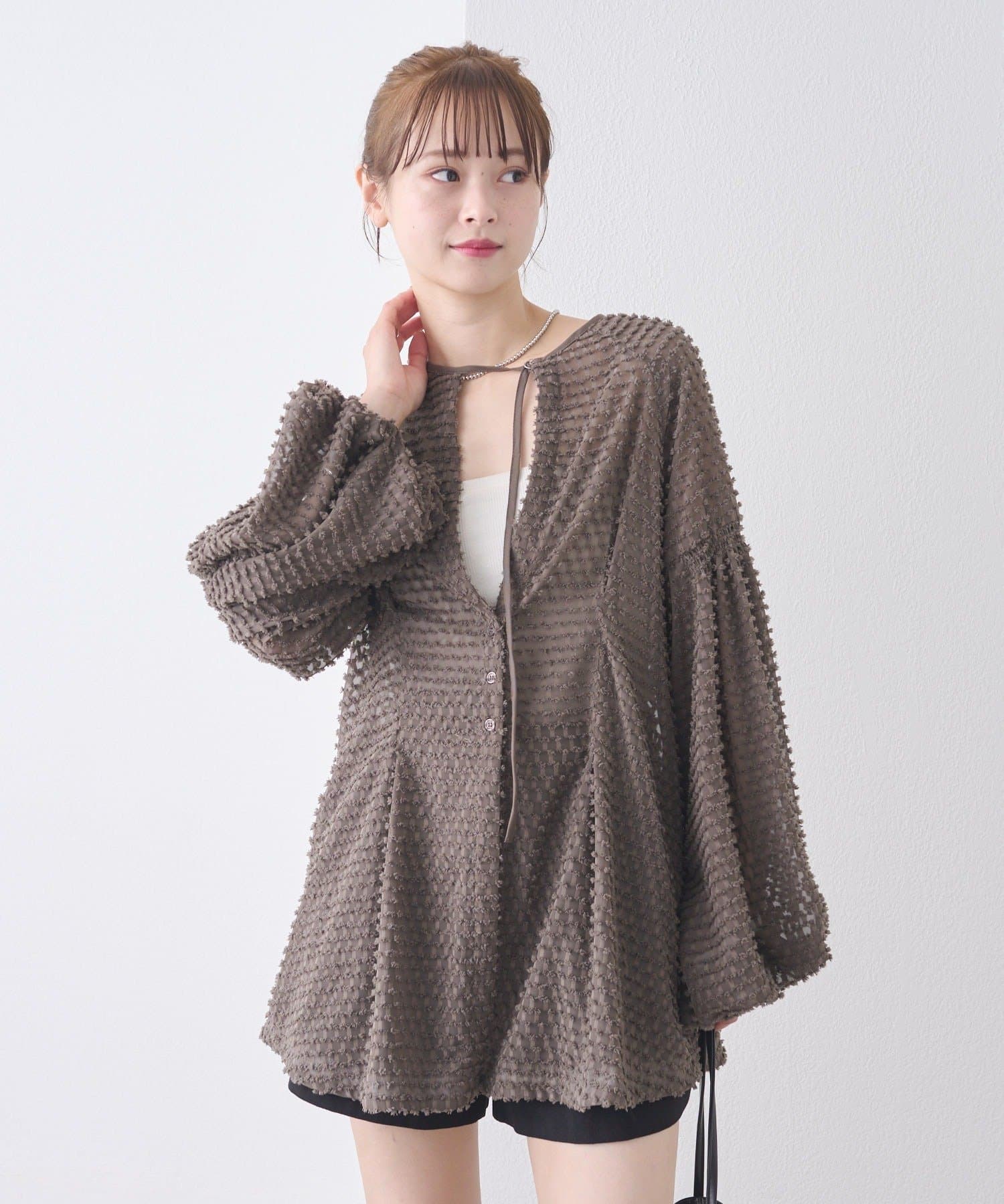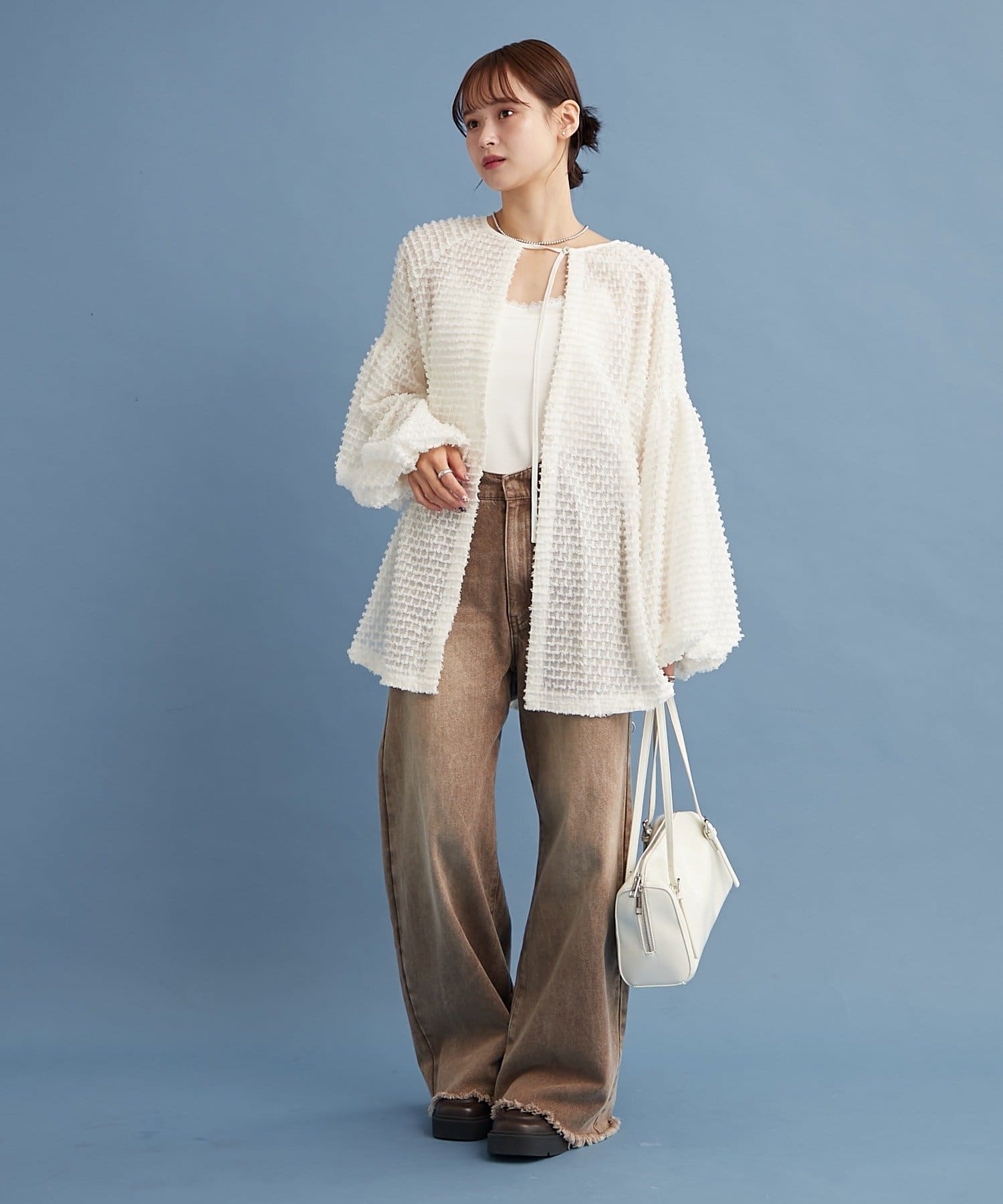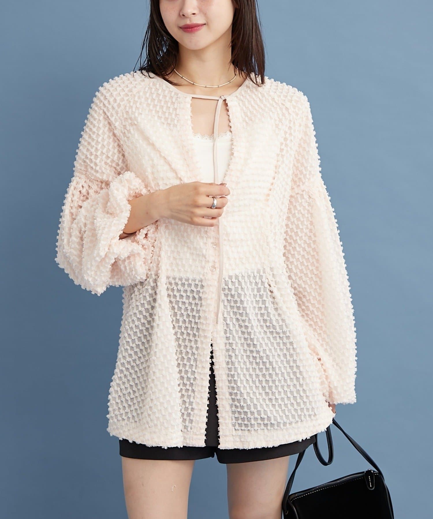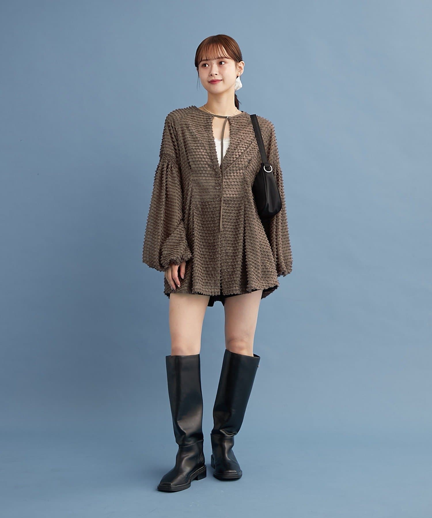・表面感のあるフリンジとたぽっと程よいボリューム感のあるお袖が女性らしい柔らかな印象に◎