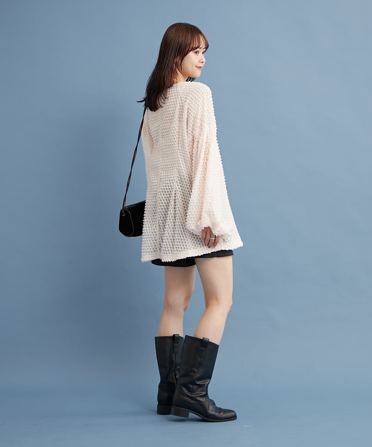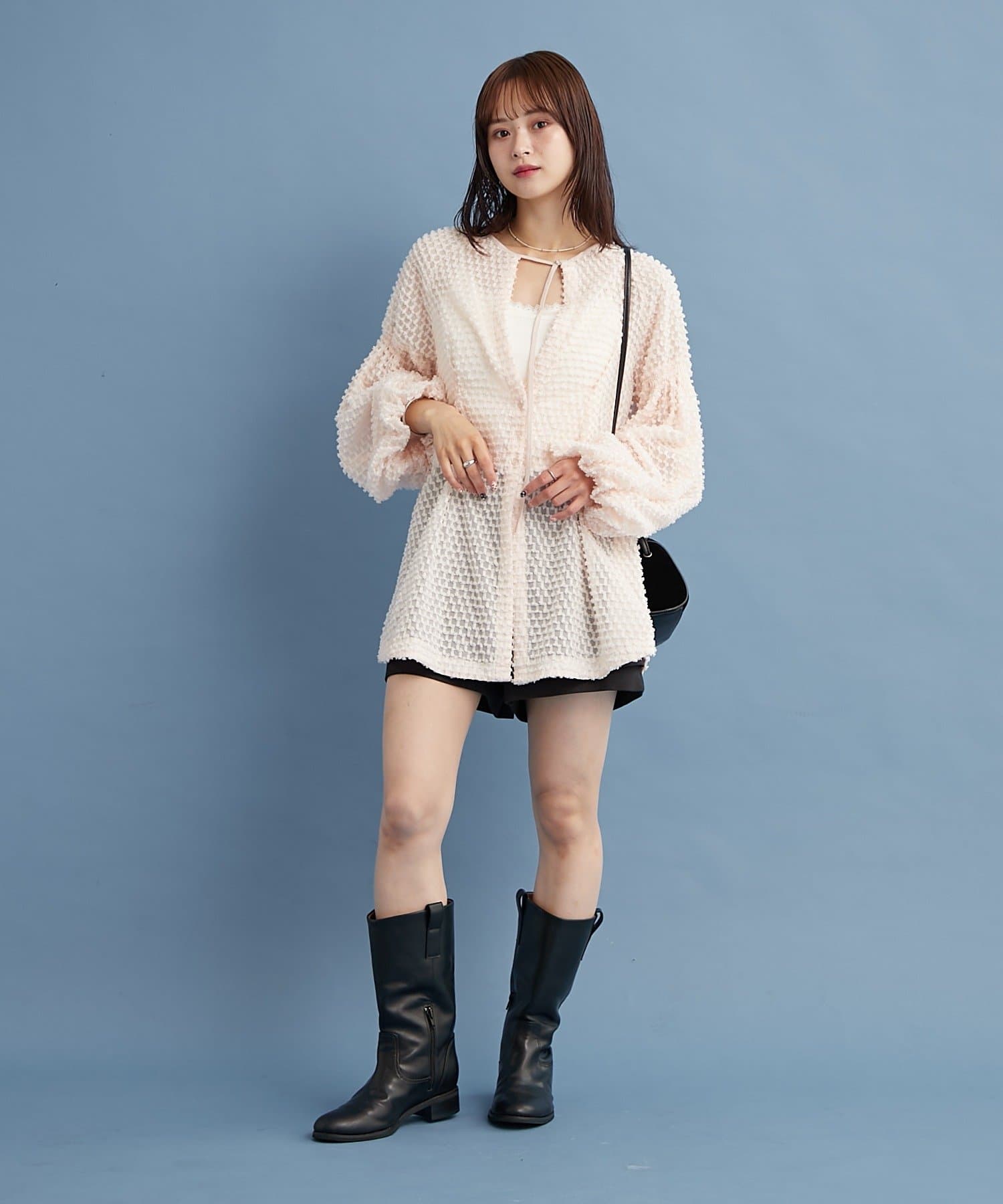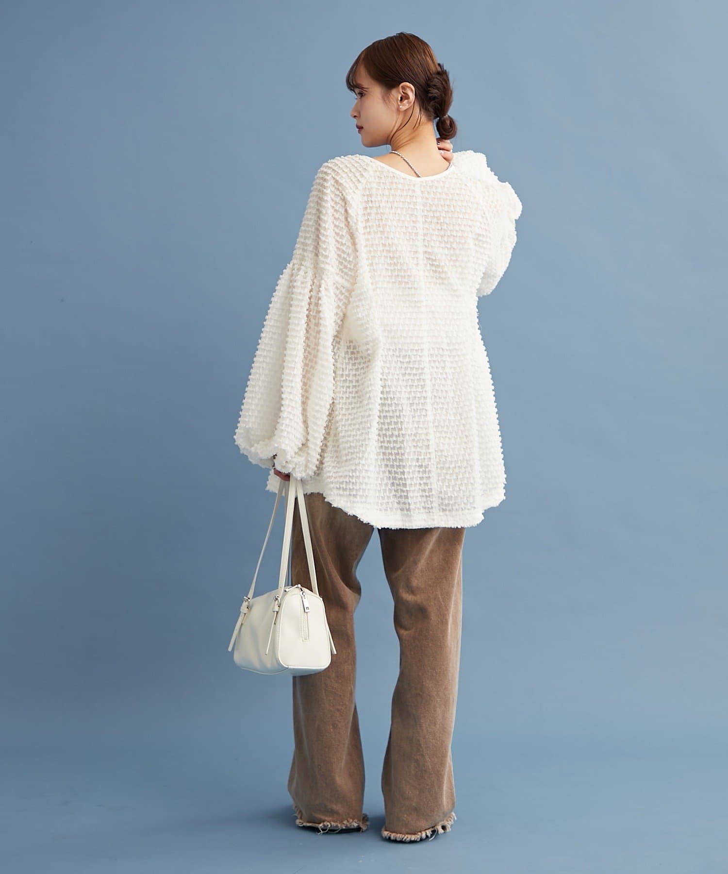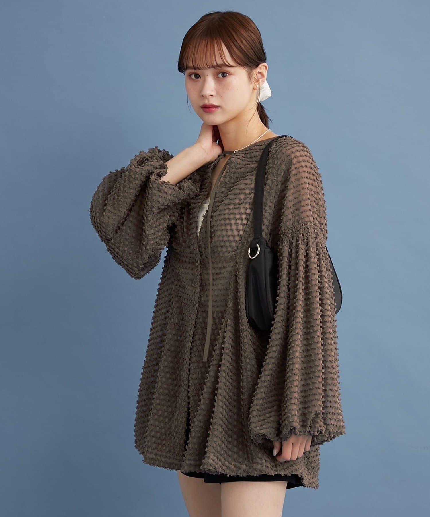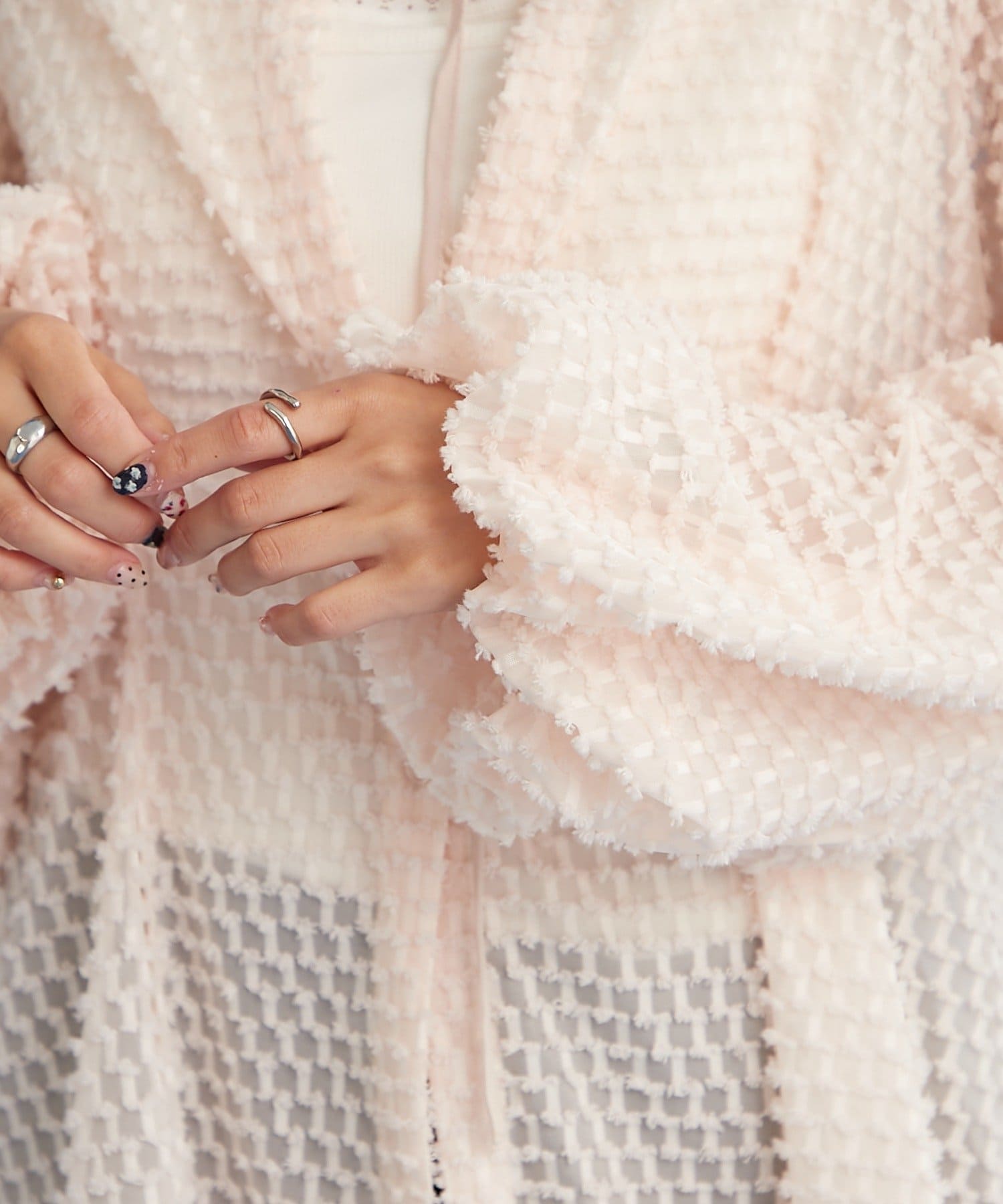 ・表面感のあるフリンジとたぽっと程よいボリューム感のあるお袖が女性らしい柔らかな印象に◎