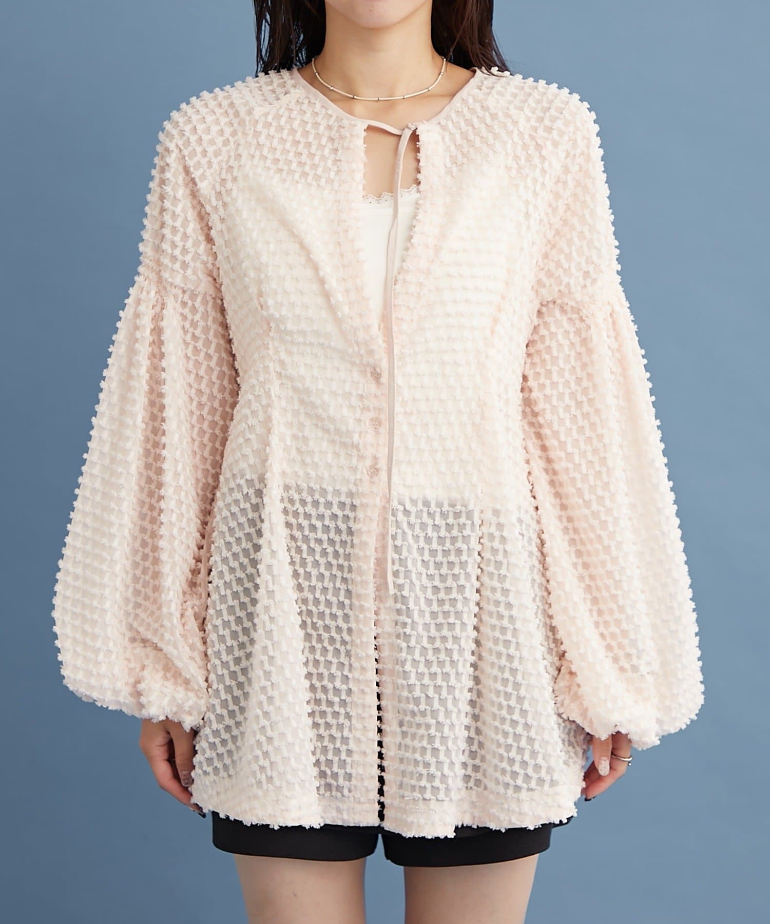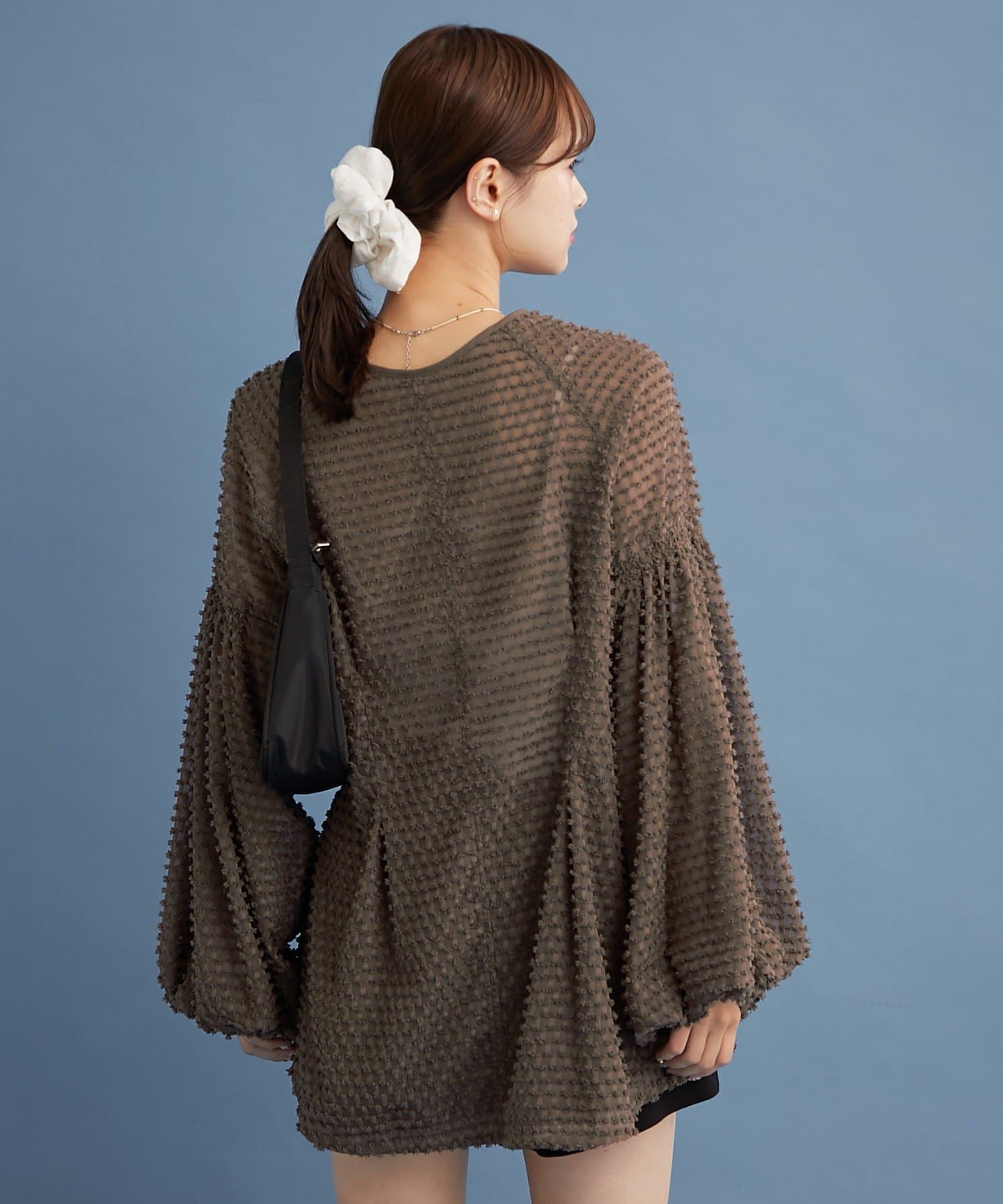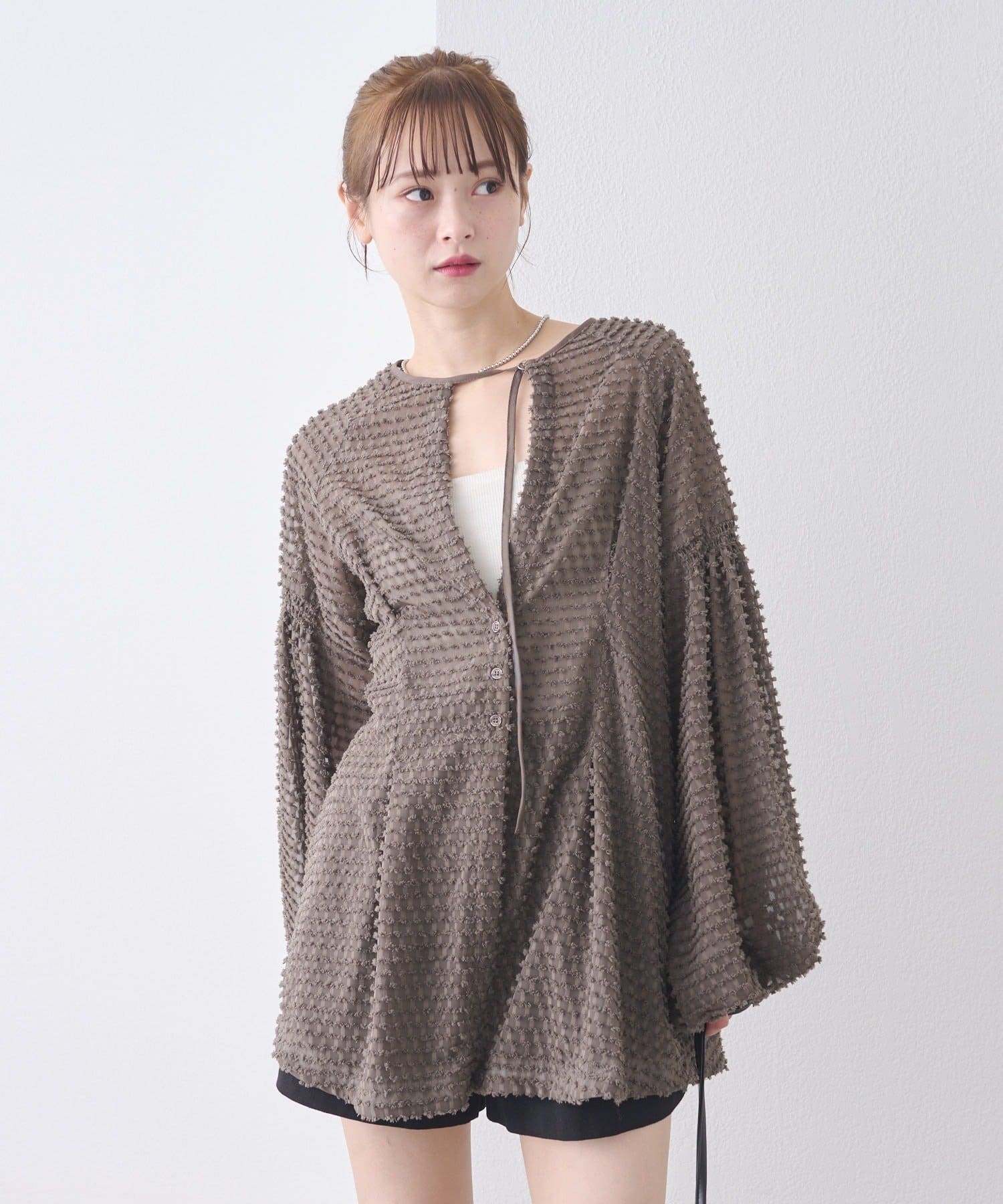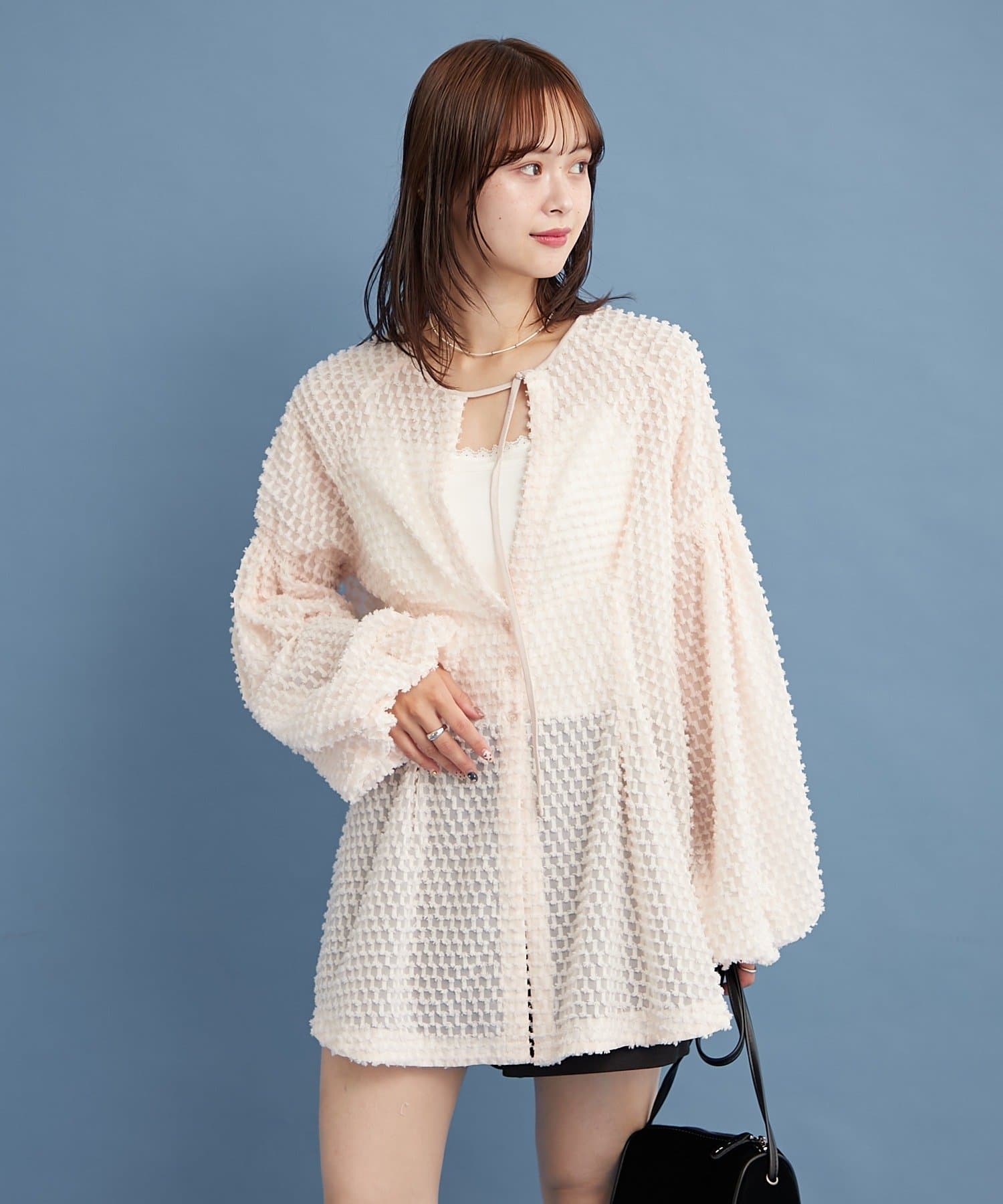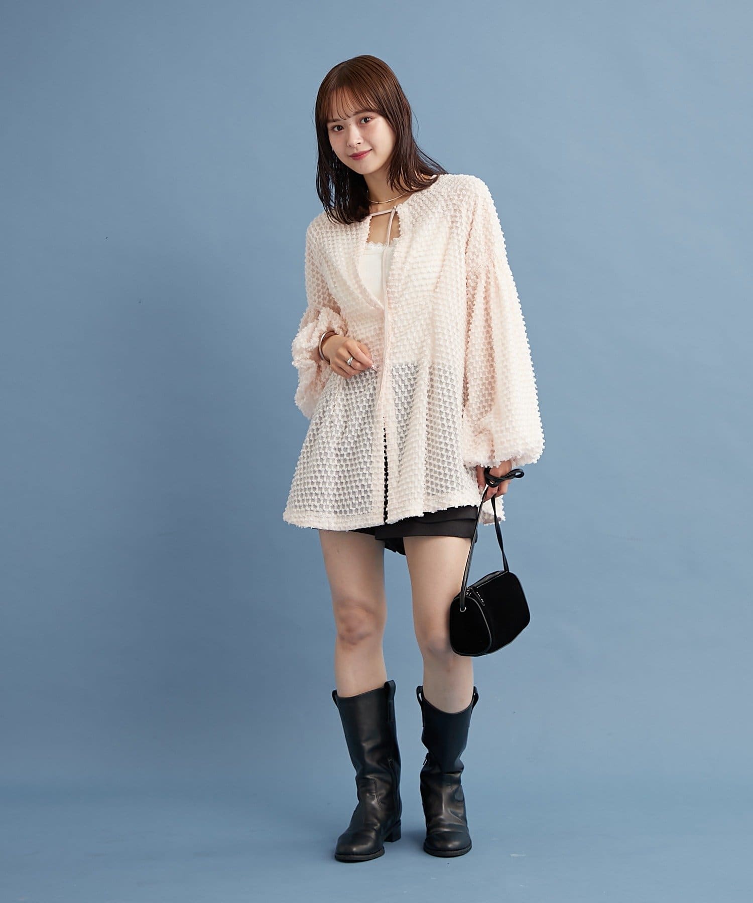 ・表面感のあるフリンジとたぽっと程よいボリューム感のあるお袖が女性らしい柔らかな印象に◎