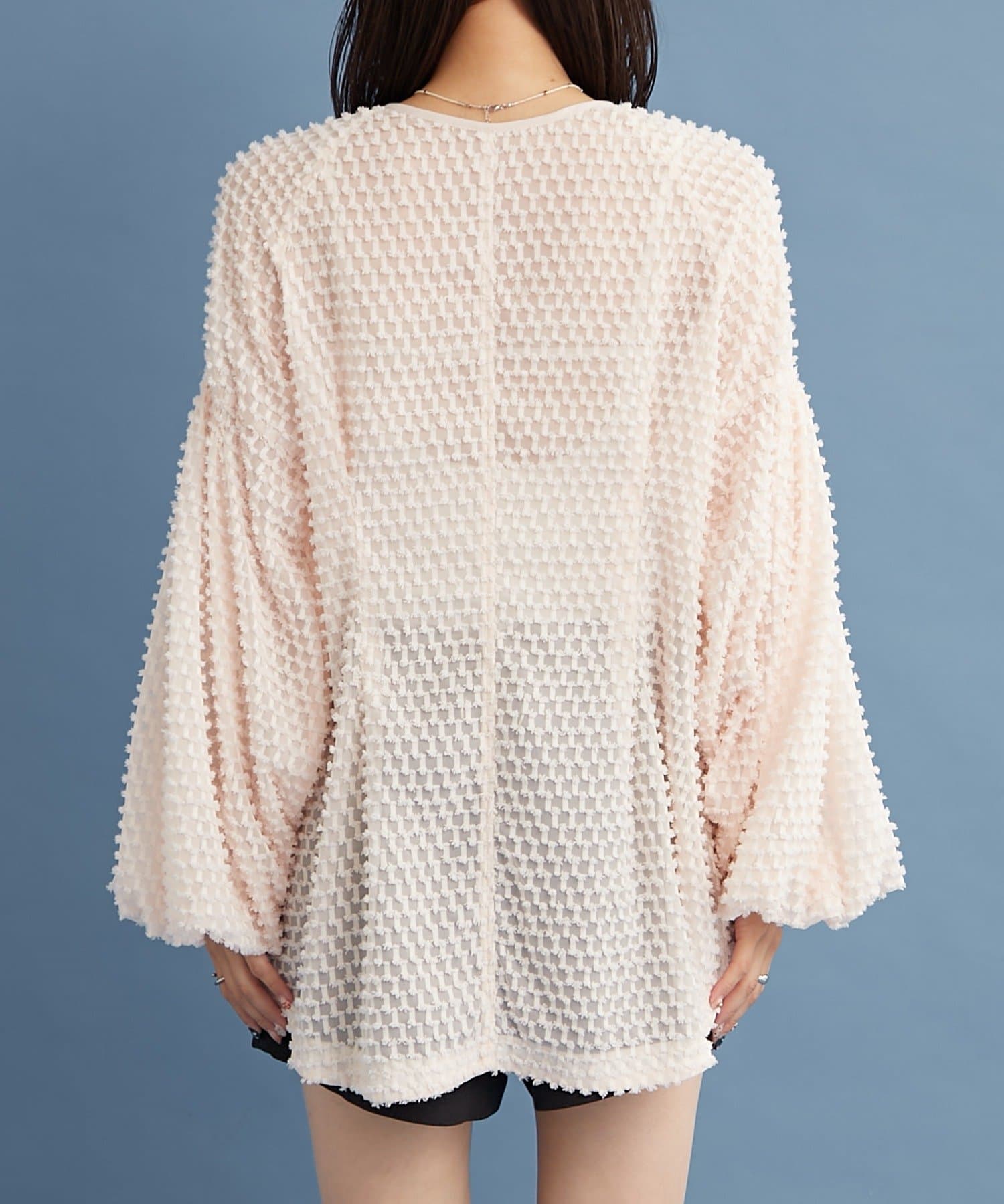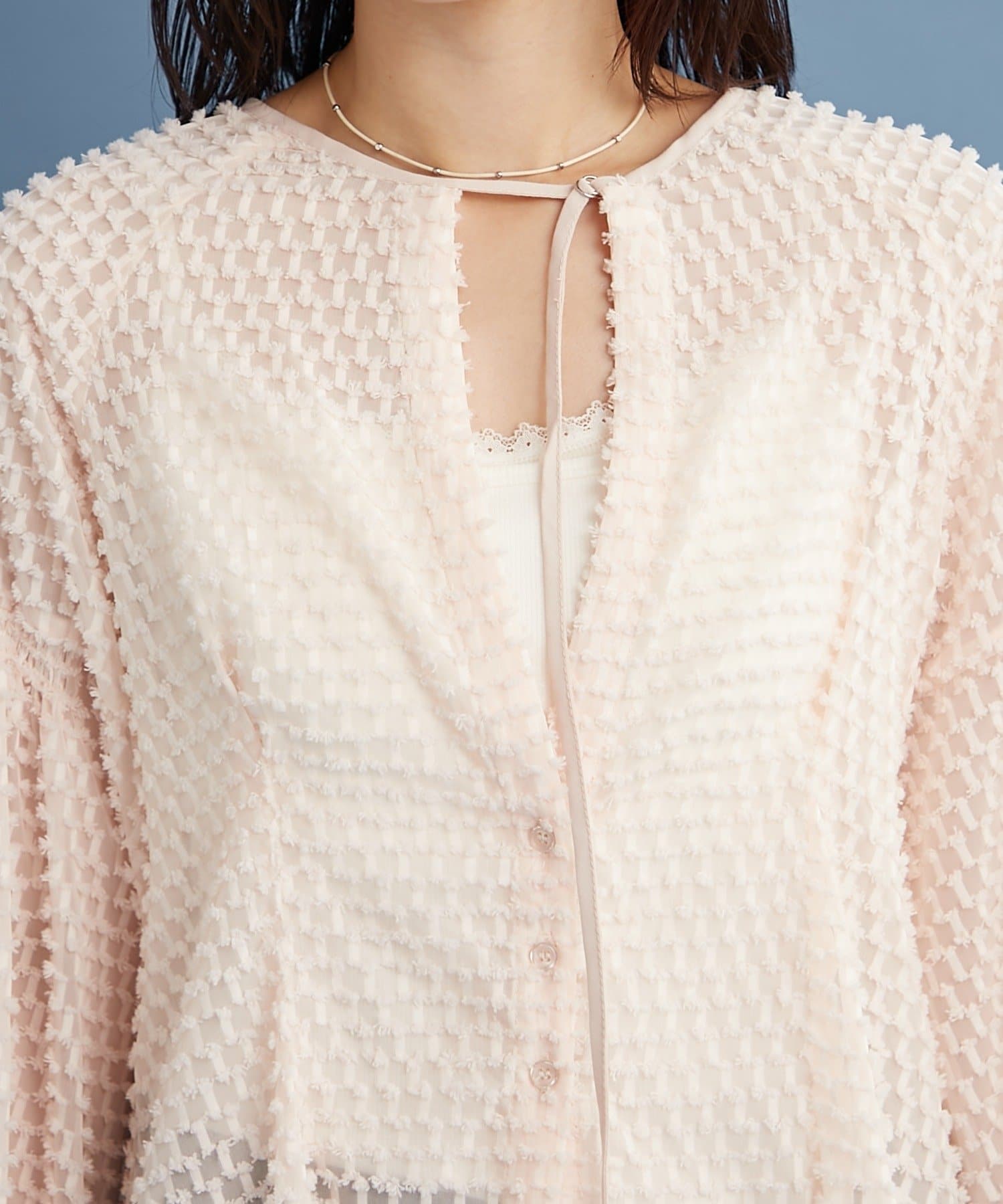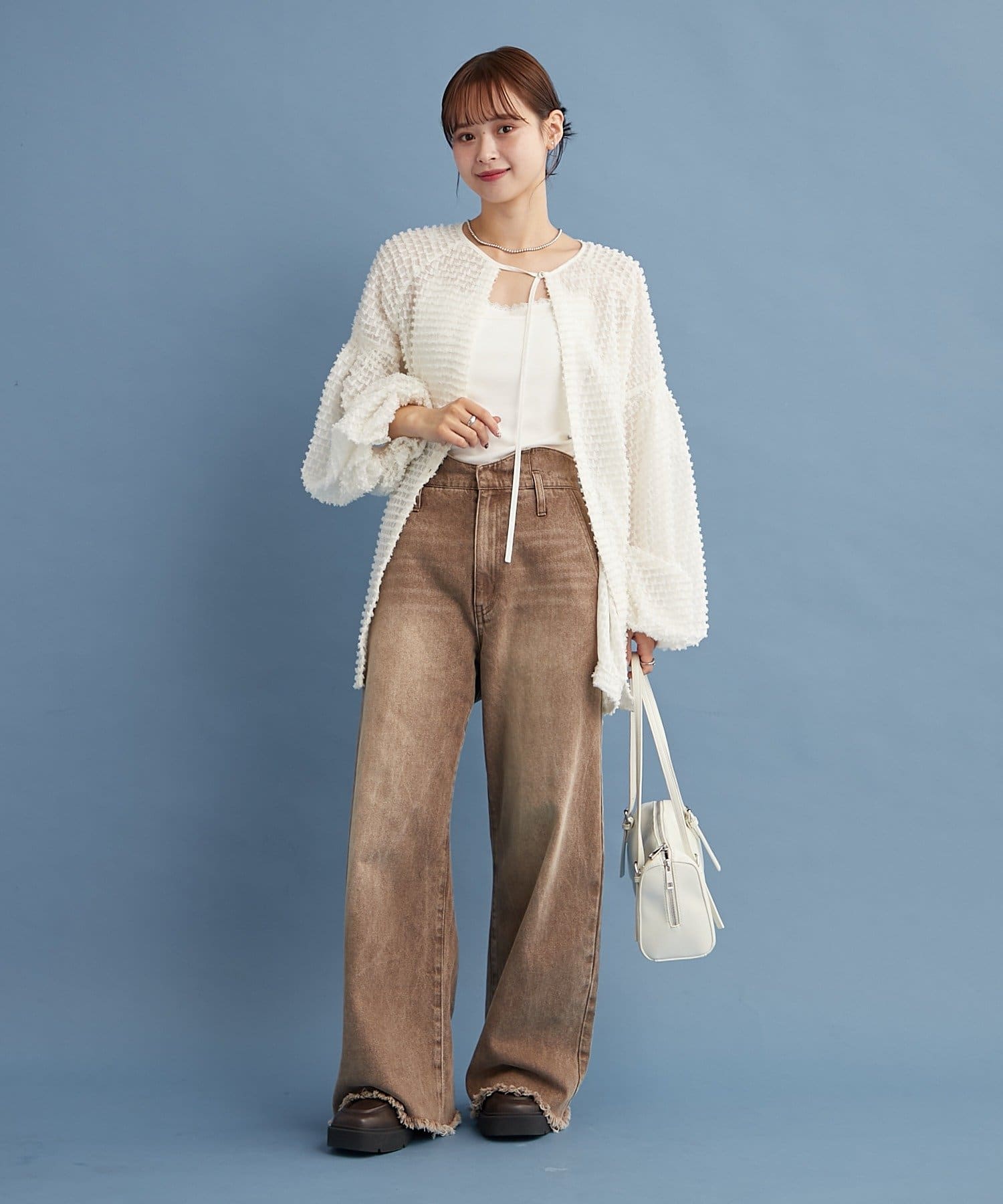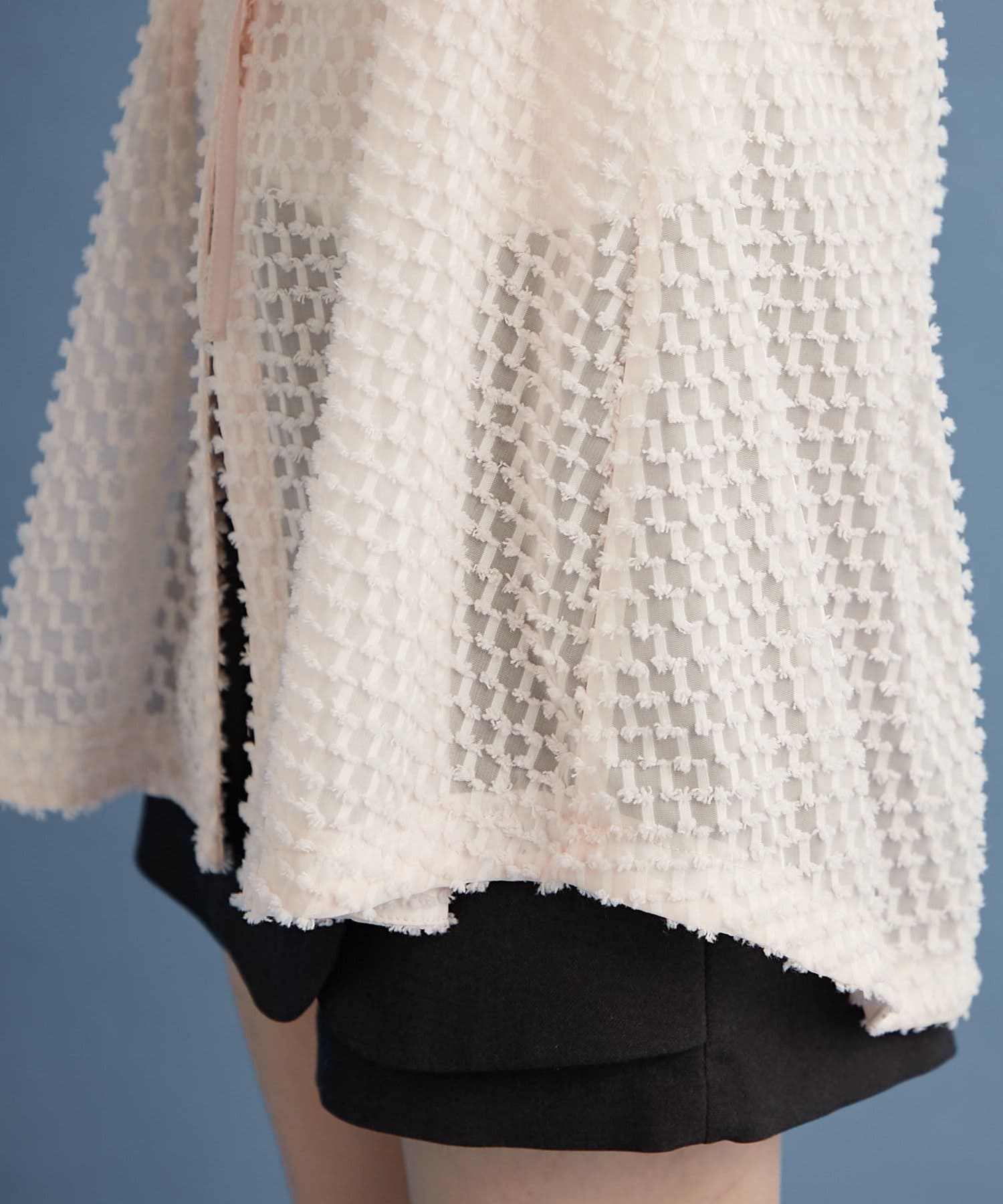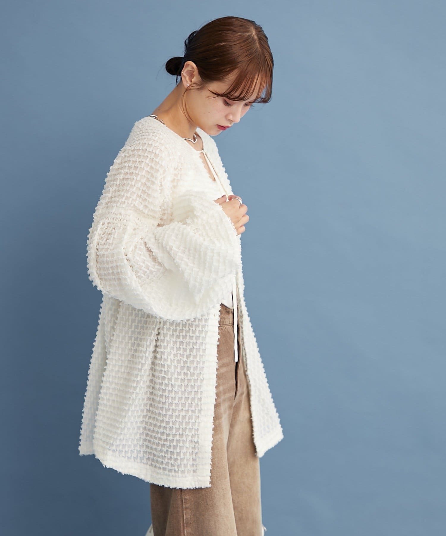 ・表面感のあるフリンジとたぽっと程よいボリューム感のあるお袖が女性らしい柔らかな印象に◎