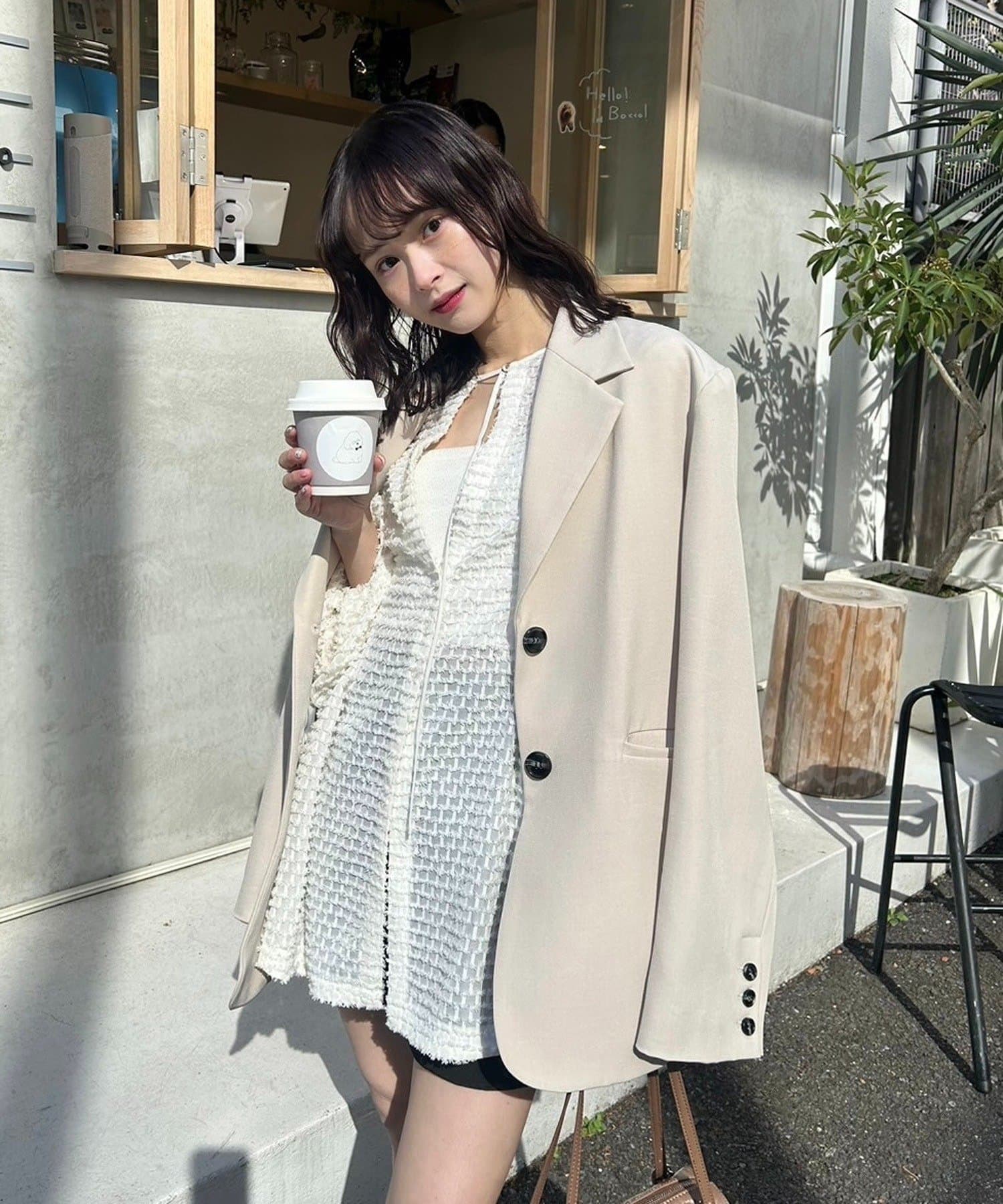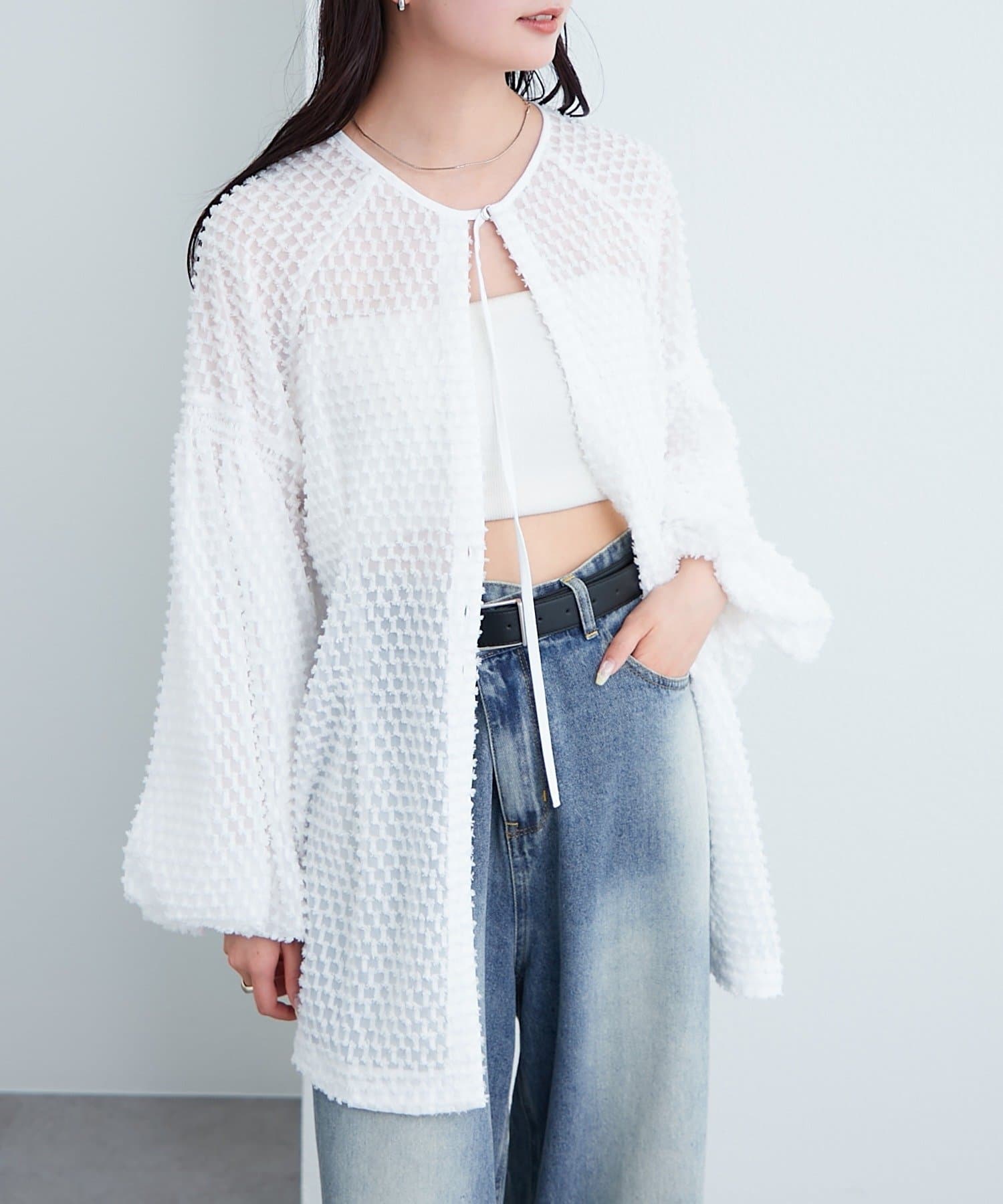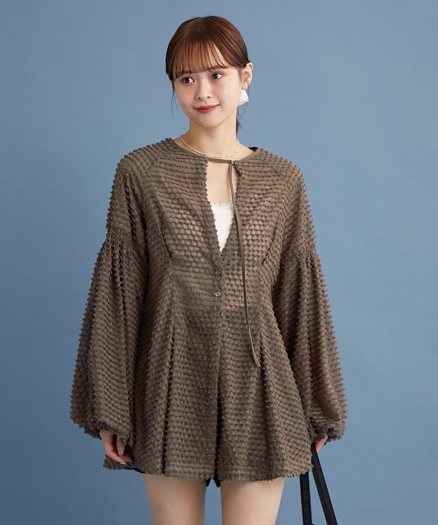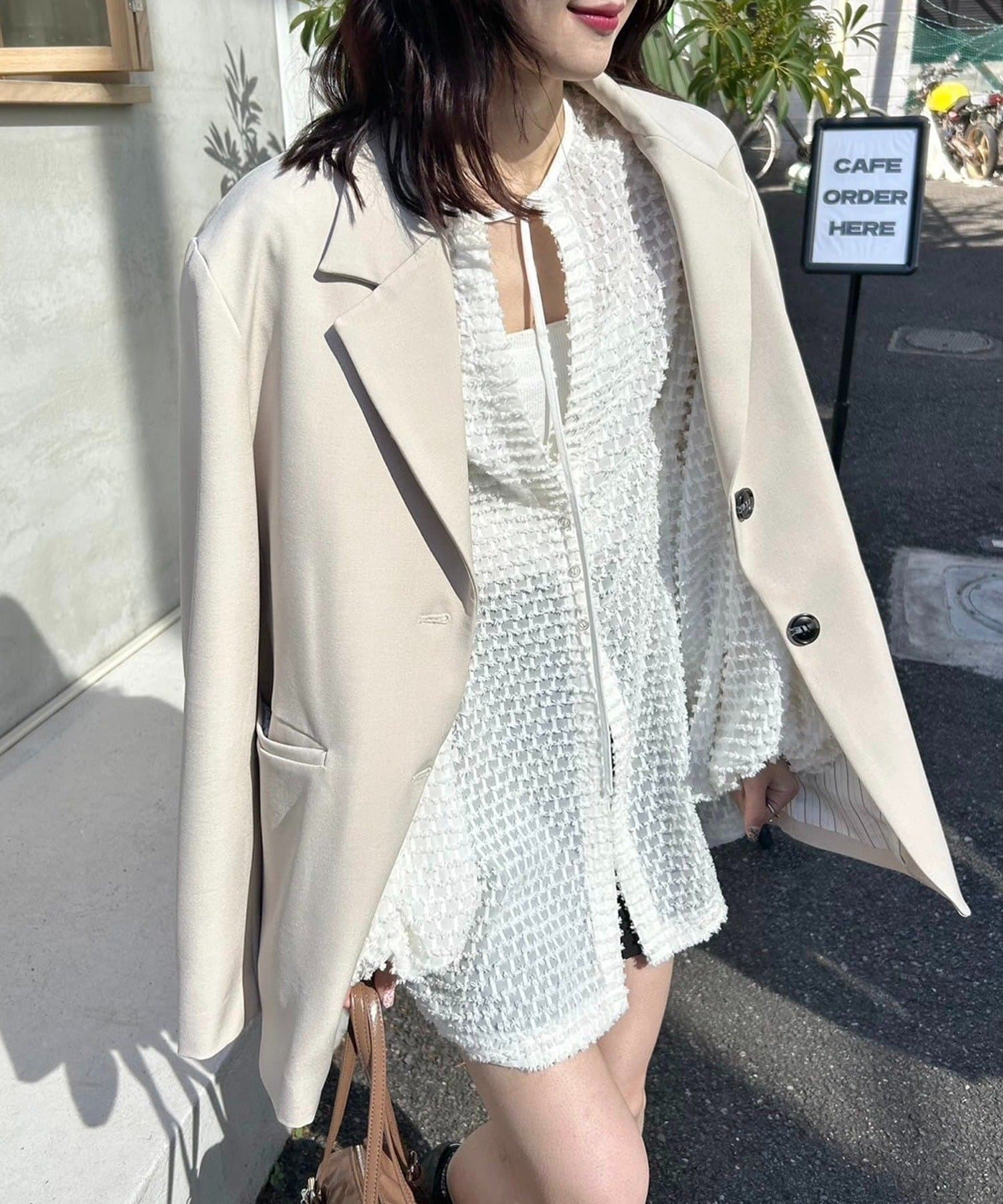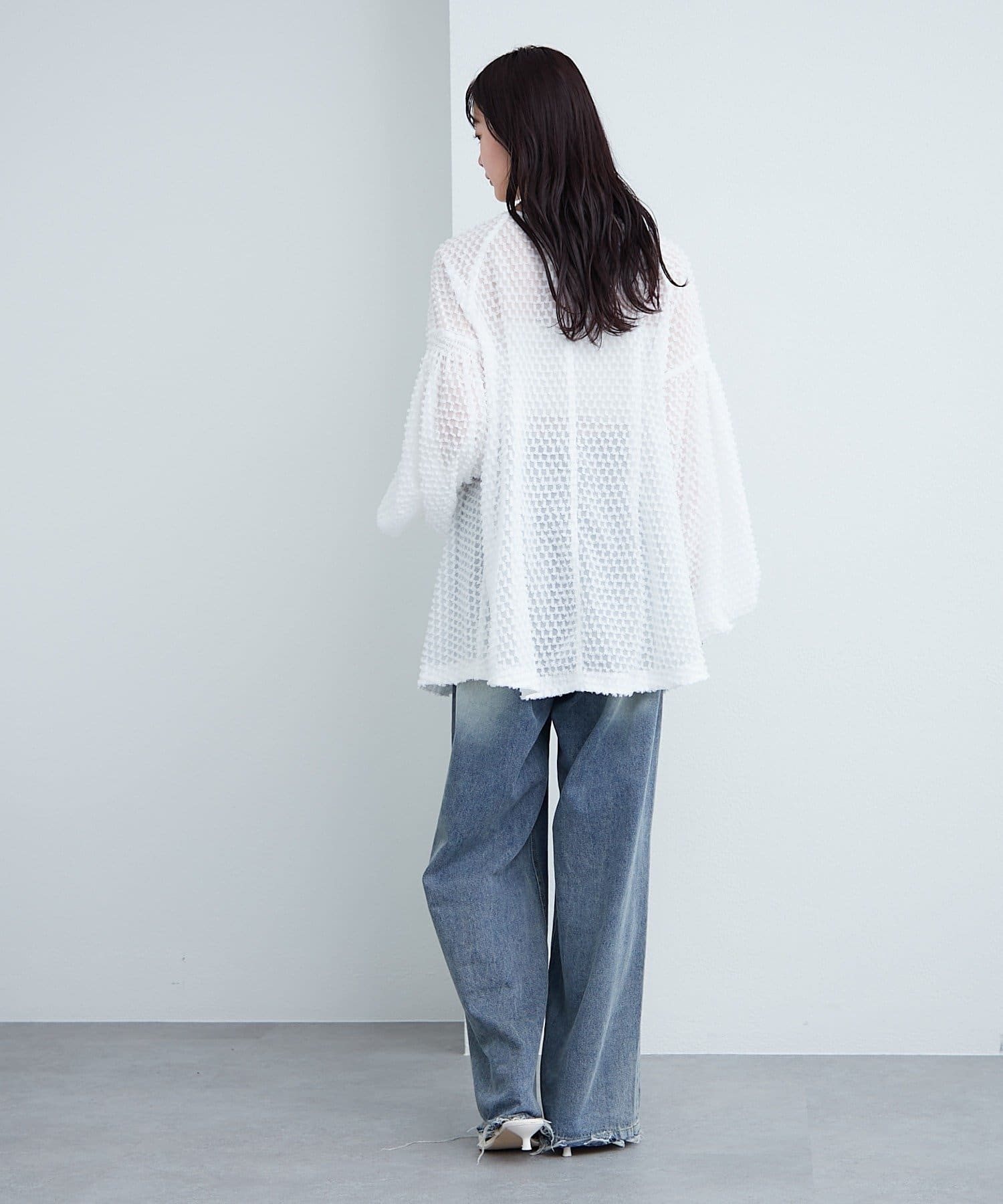 ・表面感のあるフリンジとたぽっと程よいボリューム感のあるお袖が女性らしい柔らかな印象に◎