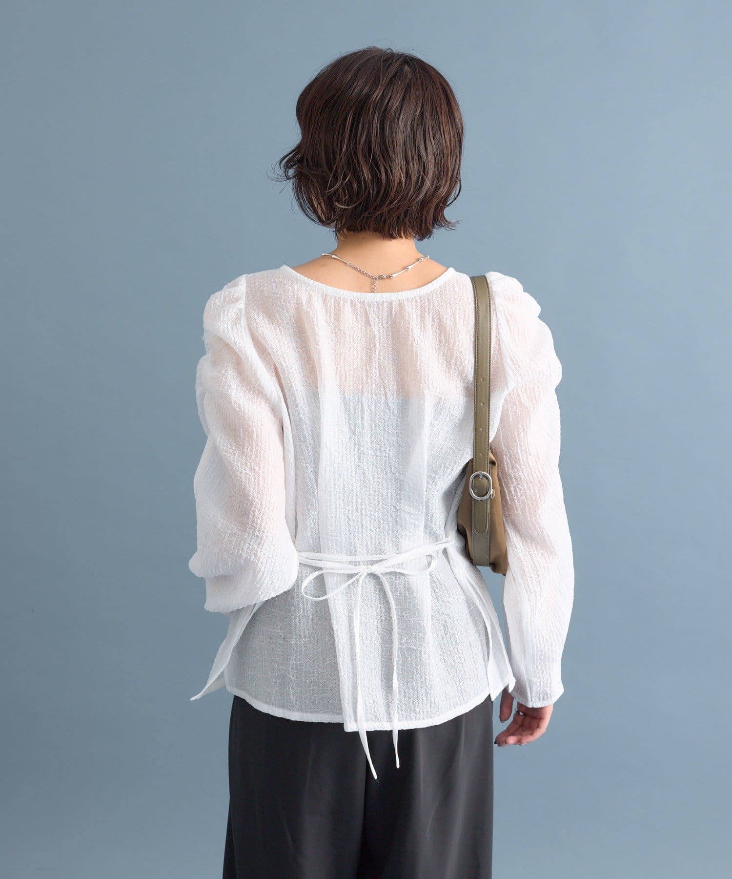・程よい透け感で、インナーとのレイヤードスタイルも楽しめます。