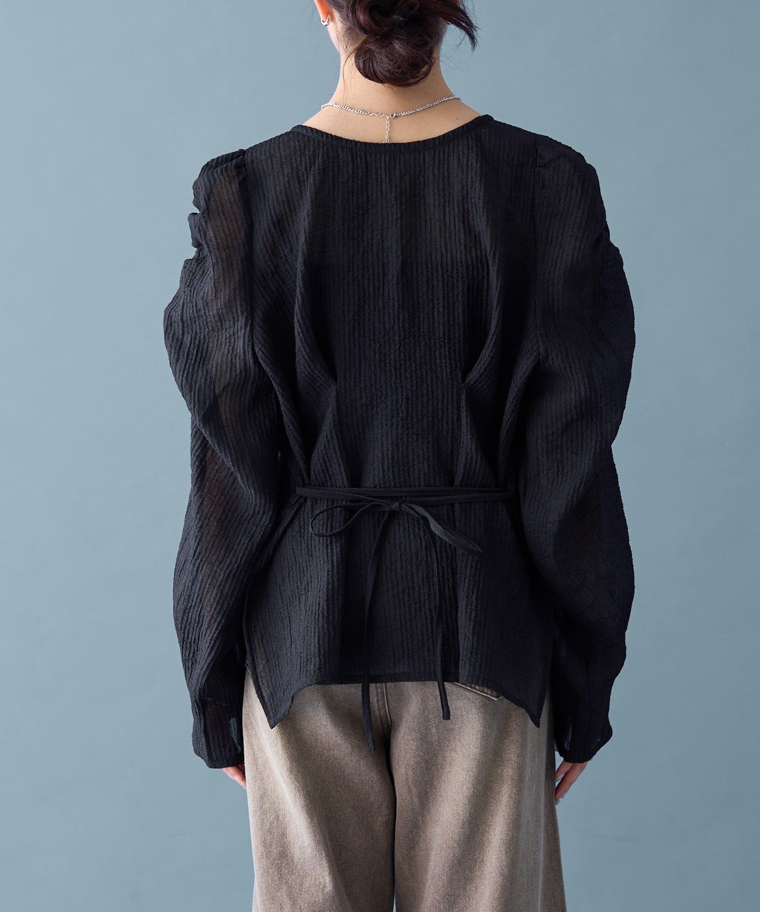 【2WAY/1枚で華やかに♡】Vシャーリングブラウス