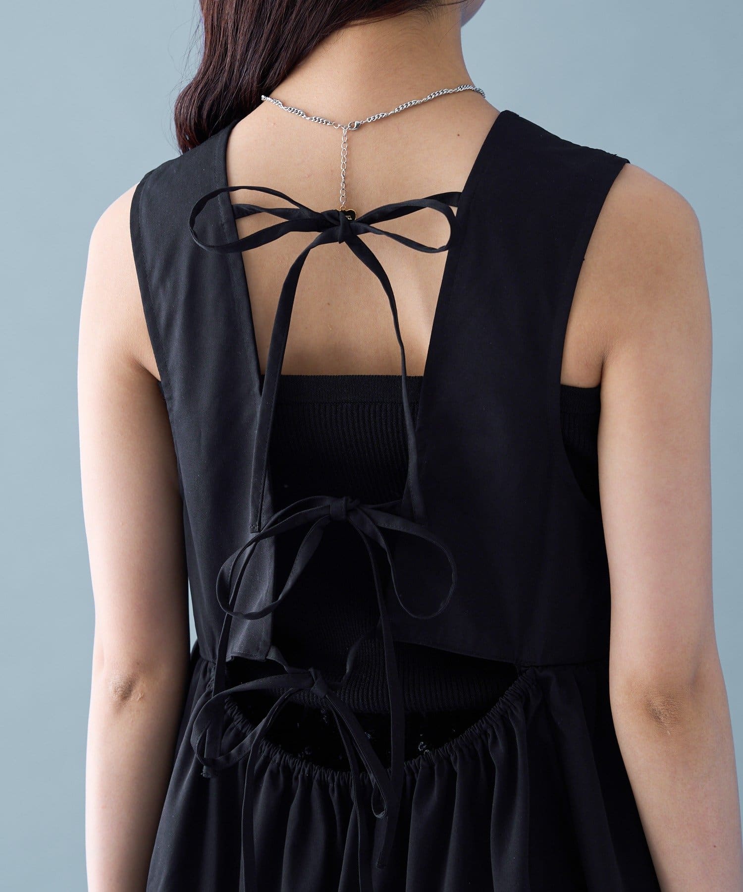 ・大胆なバックシャンデザインと可愛らしいリボンが目を惹く、デザイントップス◎