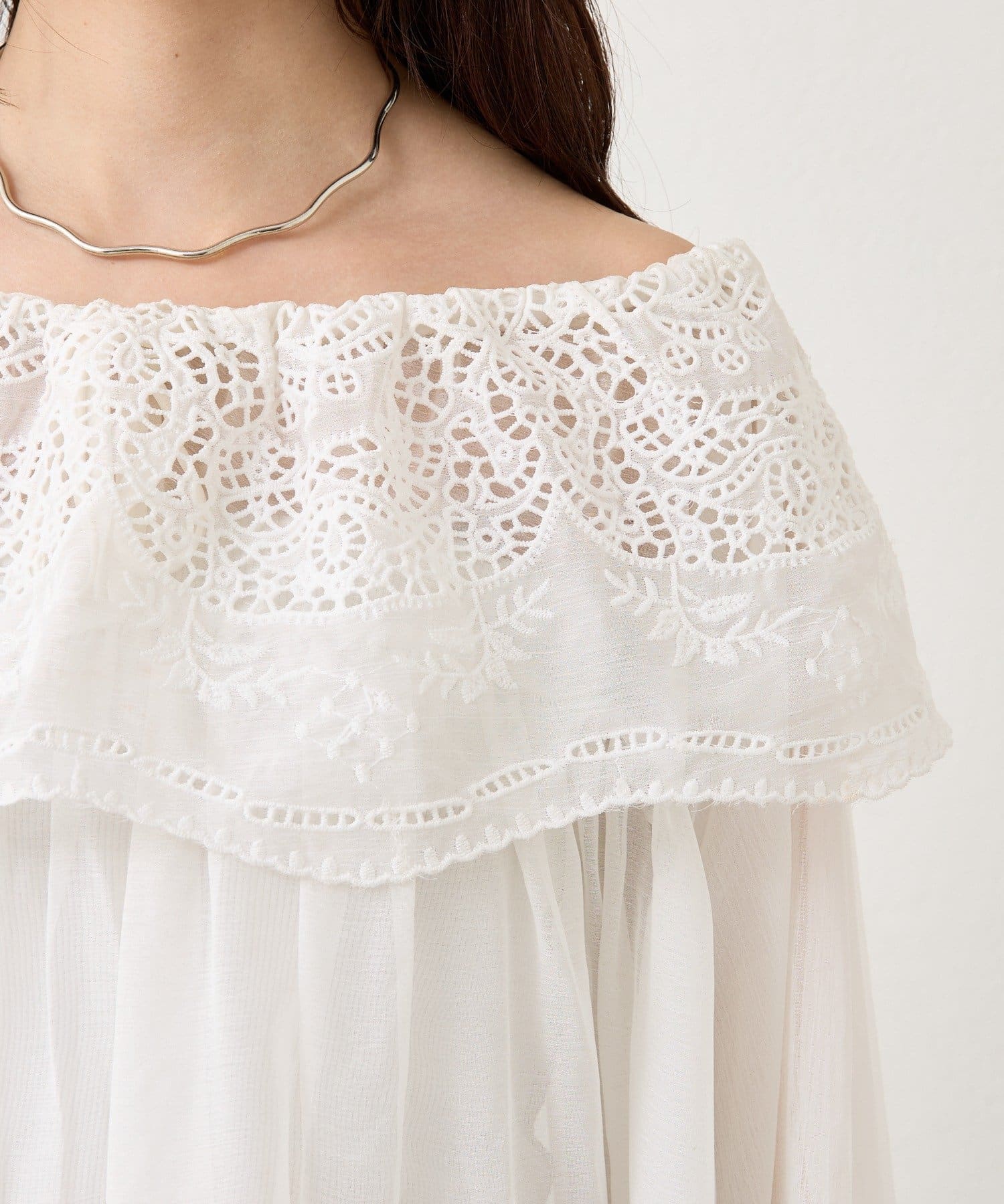 3)オフショルとして着て頂いて、お袖を胸元で結んで肌だしスタイルも♡