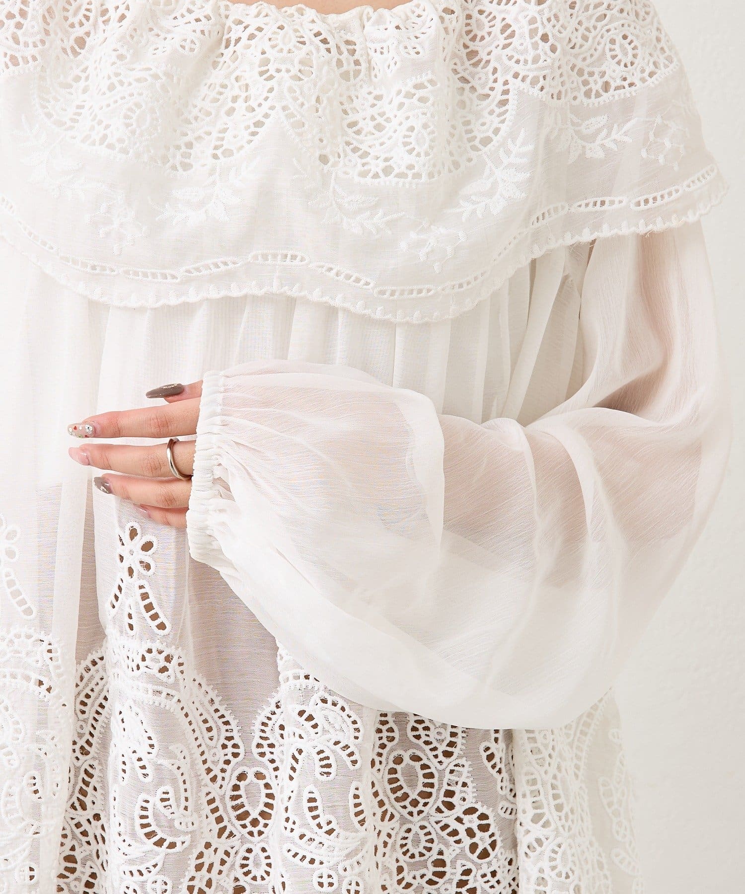 ・存在感のある首元のフリルが華やかで可愛いらしいブラウス。