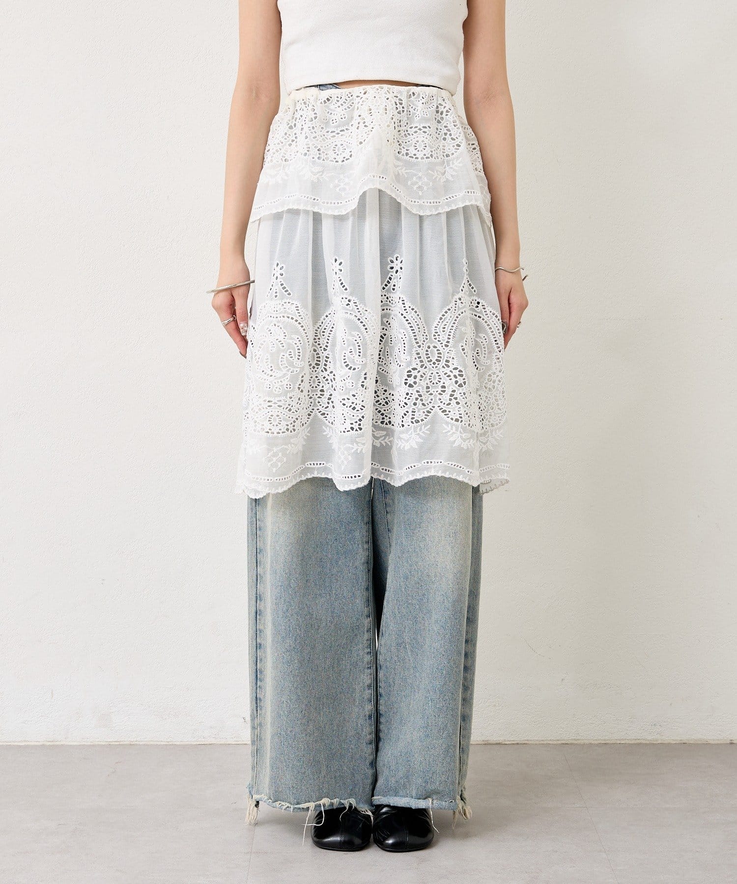 ・腰で履いてスカートにチェンジできます♩デニムなどのアイテムをレイヤードさせても◎