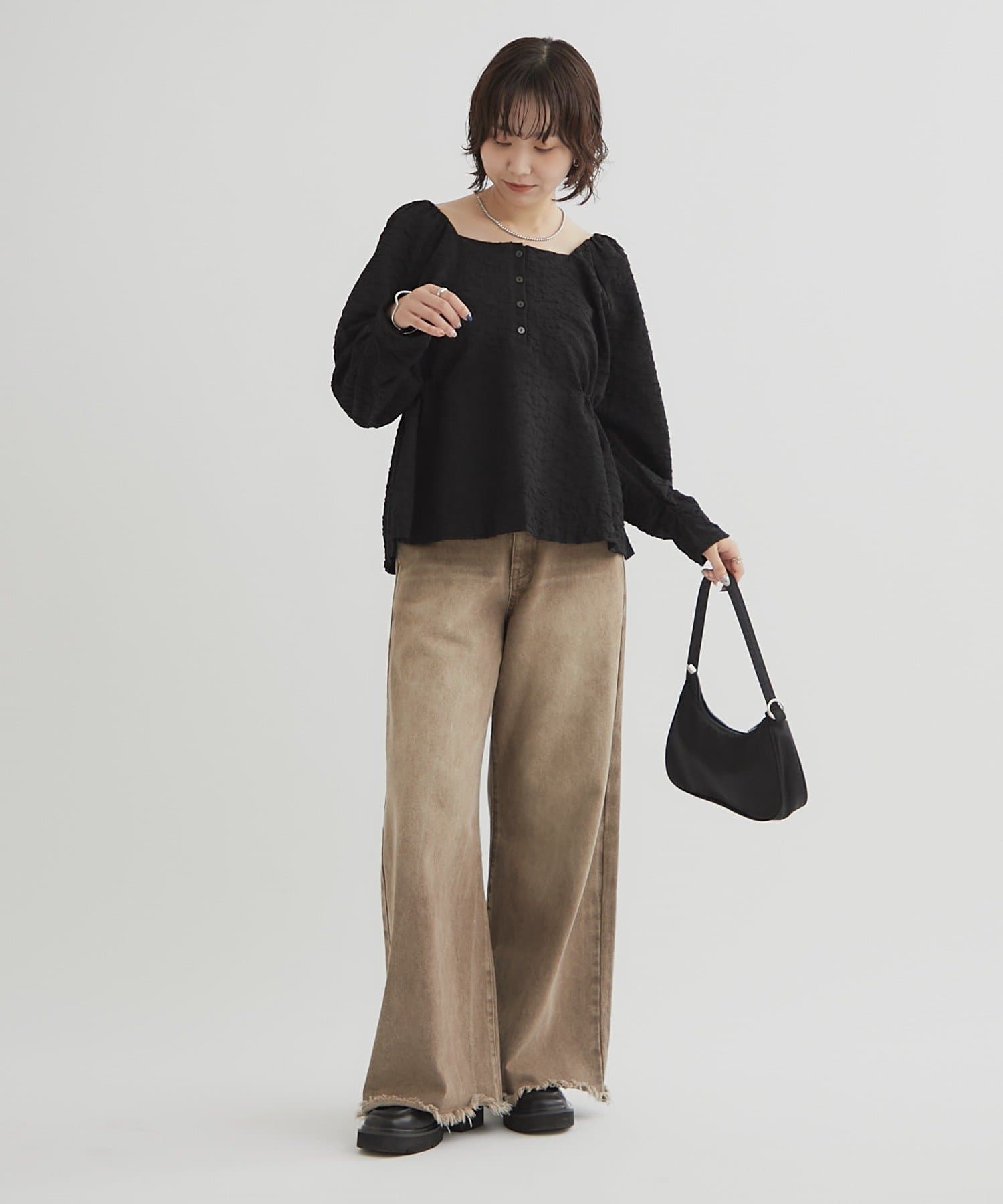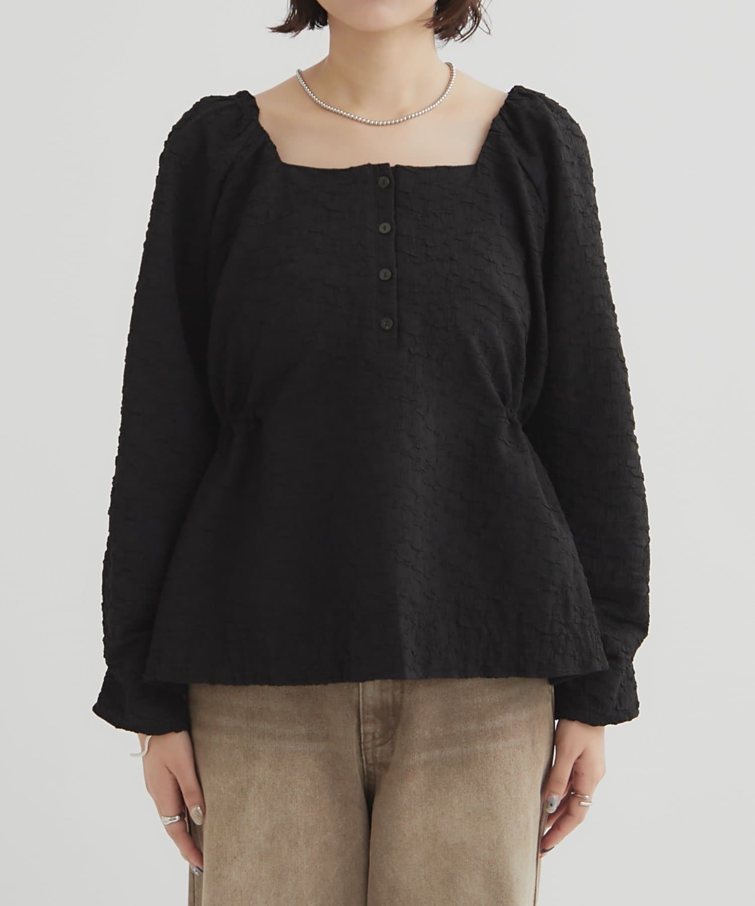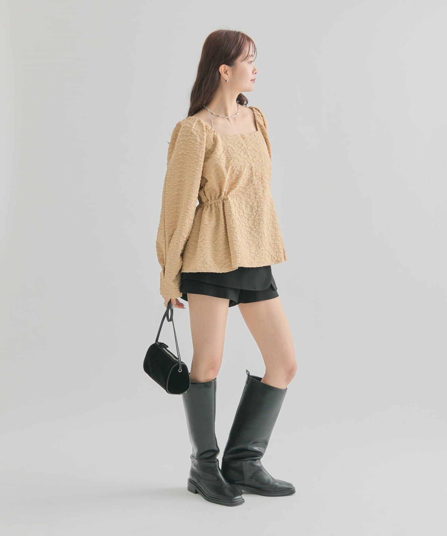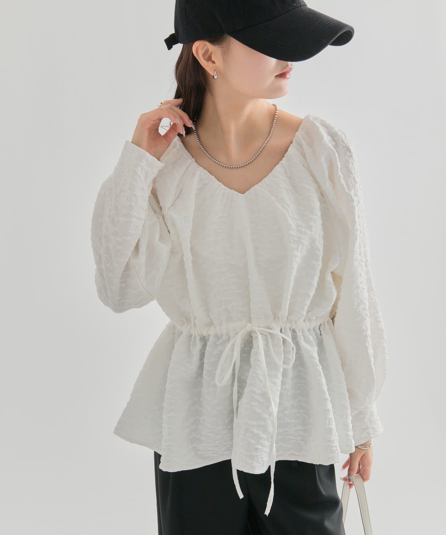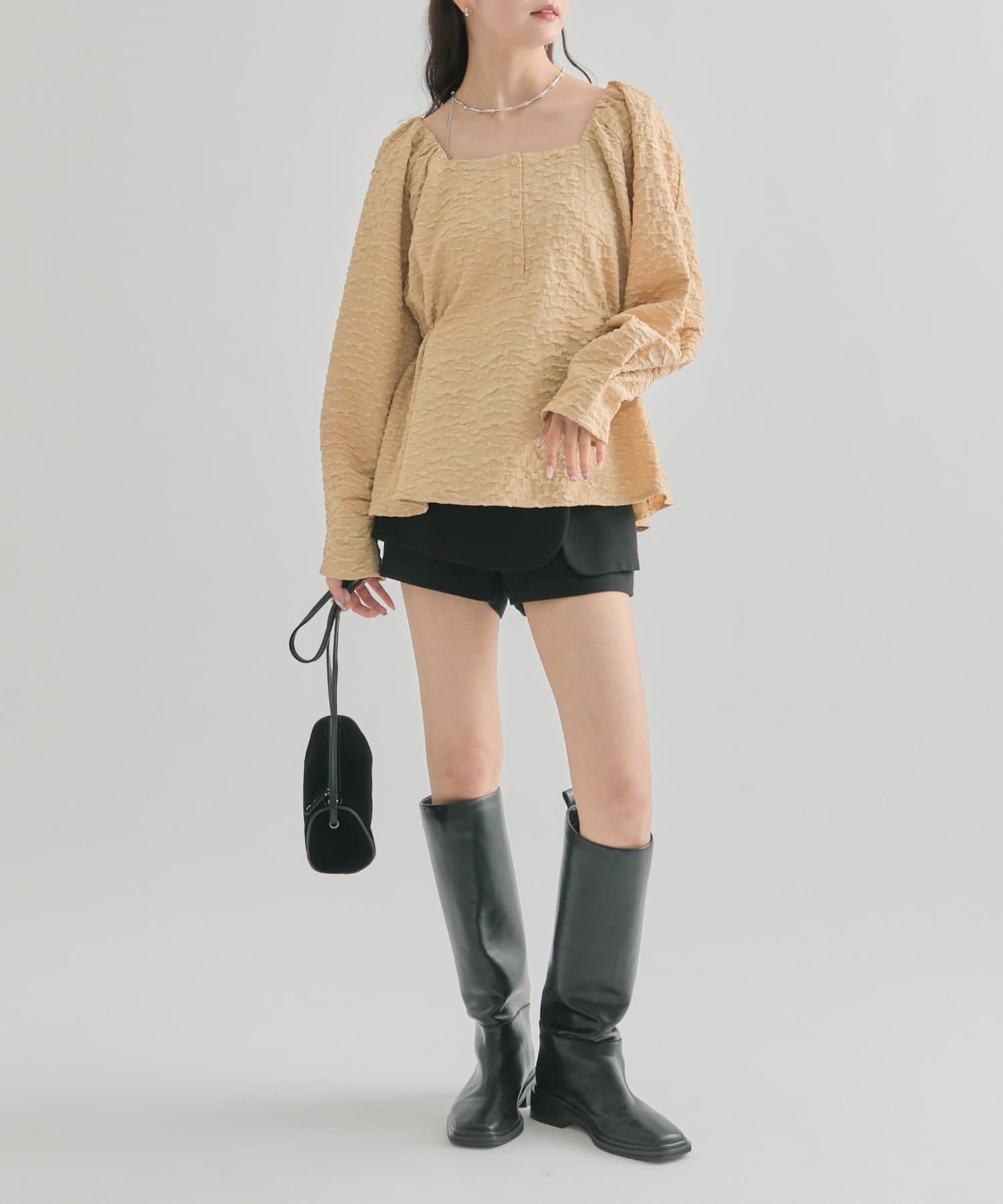 ・夏に人気だったエンボスパフブラウスが長袖になって再登場しました♩ふんわりとしたパフのデザインが可愛らしいのが特徴のブラウスです!