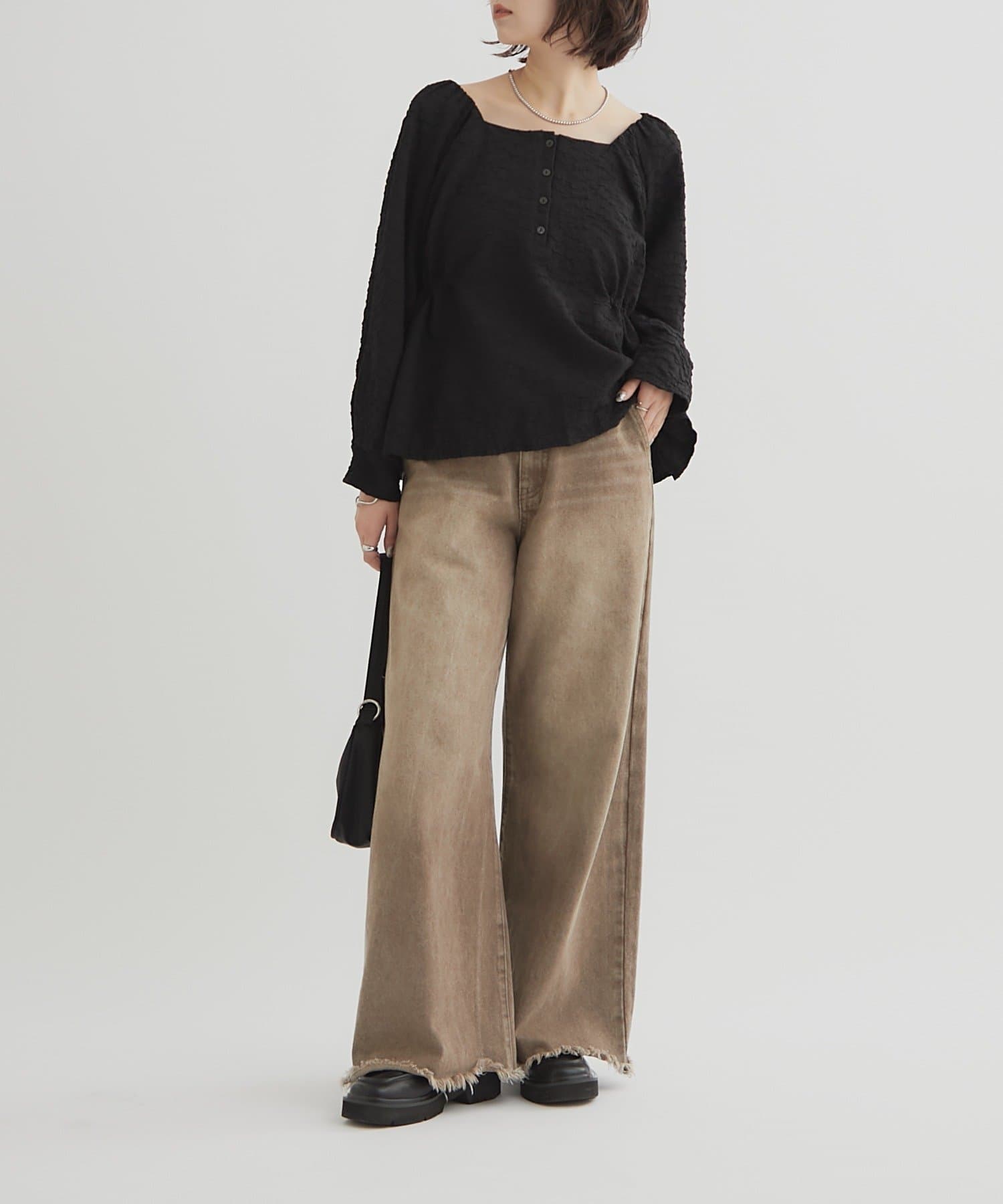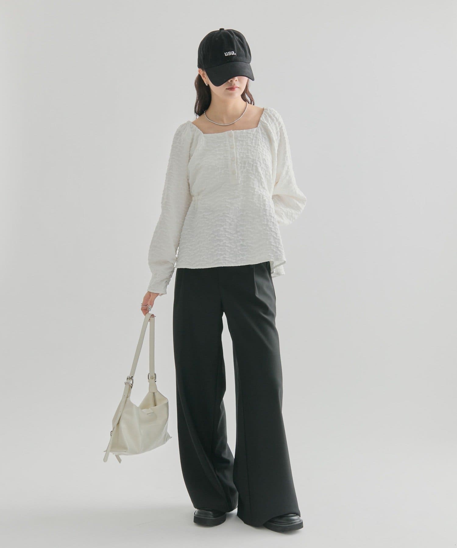 ・首回りのスクエアネックはデコルテラインを綺麗に魅せてくれ、すっきりとした印象を与えてくれます◎