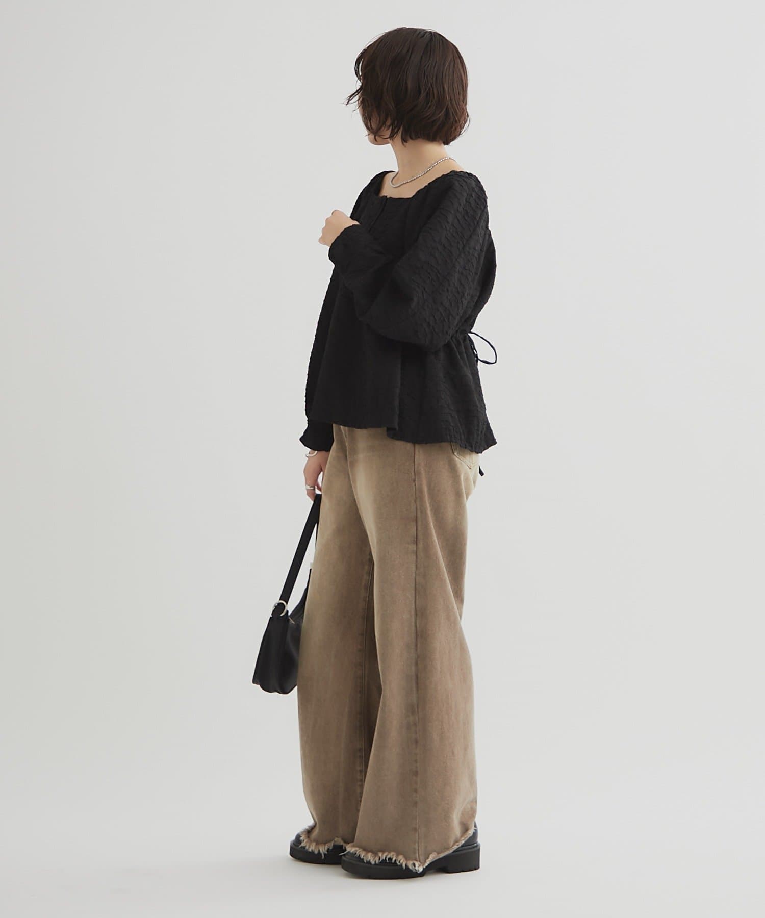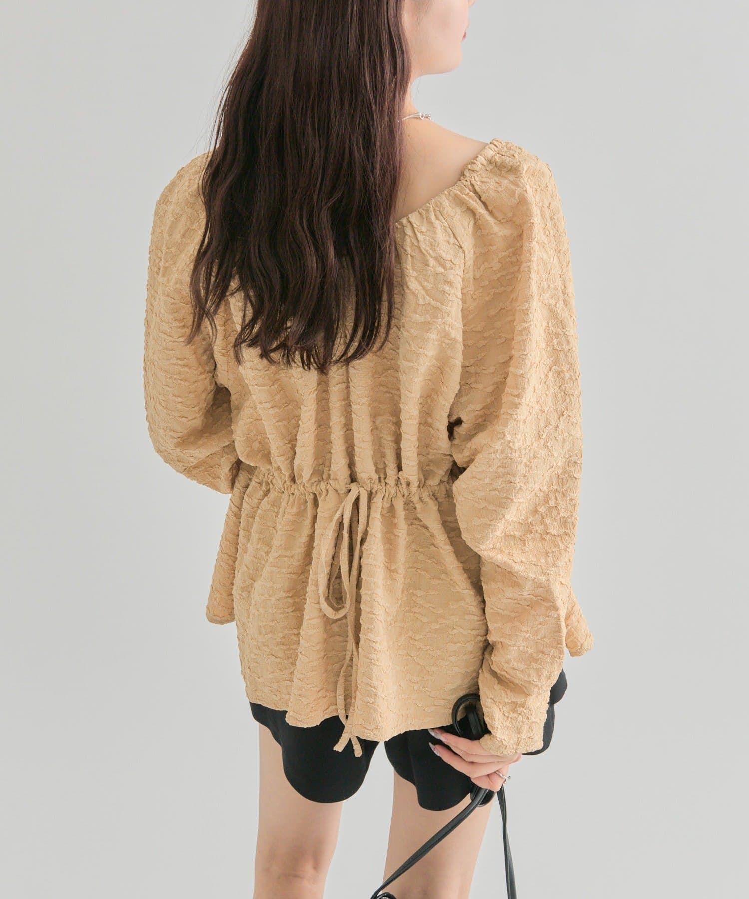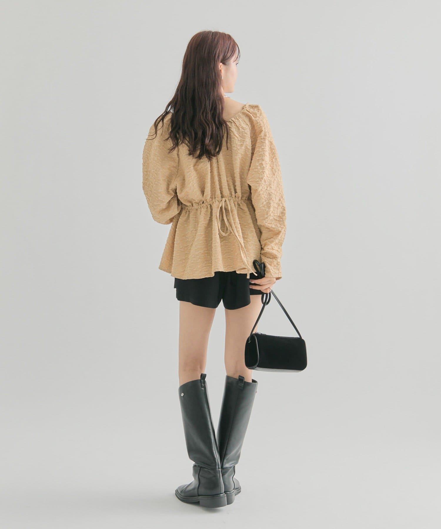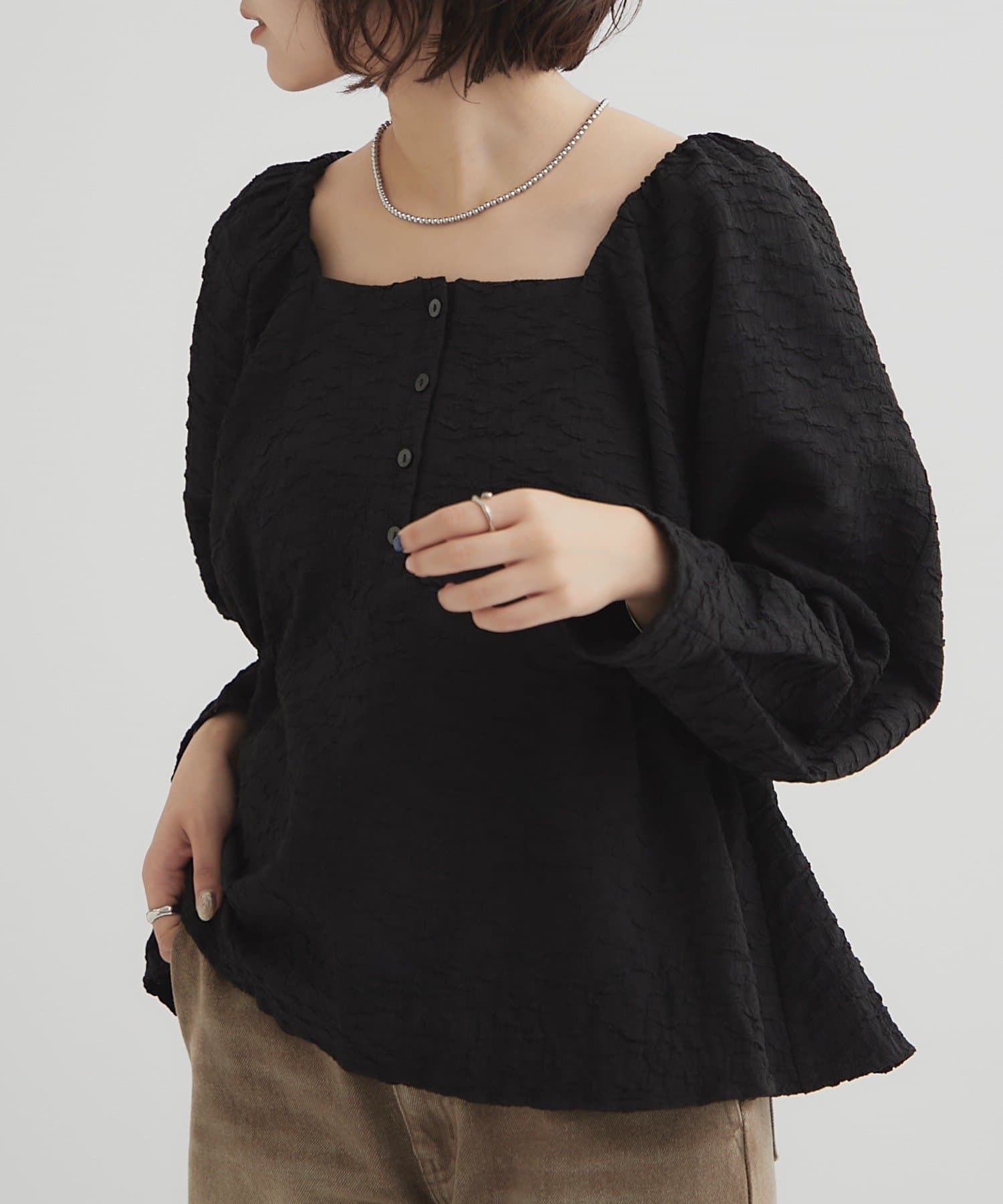 【今だけ75%オフ!!大人気だったアイテムが長袖になって再登場!】エンボスパフ 長袖ブラウス